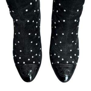 Chanel Logo Polka Dot Pearl Heeled Boots in Black UK 4.5