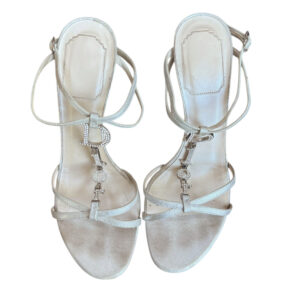 Dior Diamante Logo Spellout Strappy Heels in Metallic UK 3