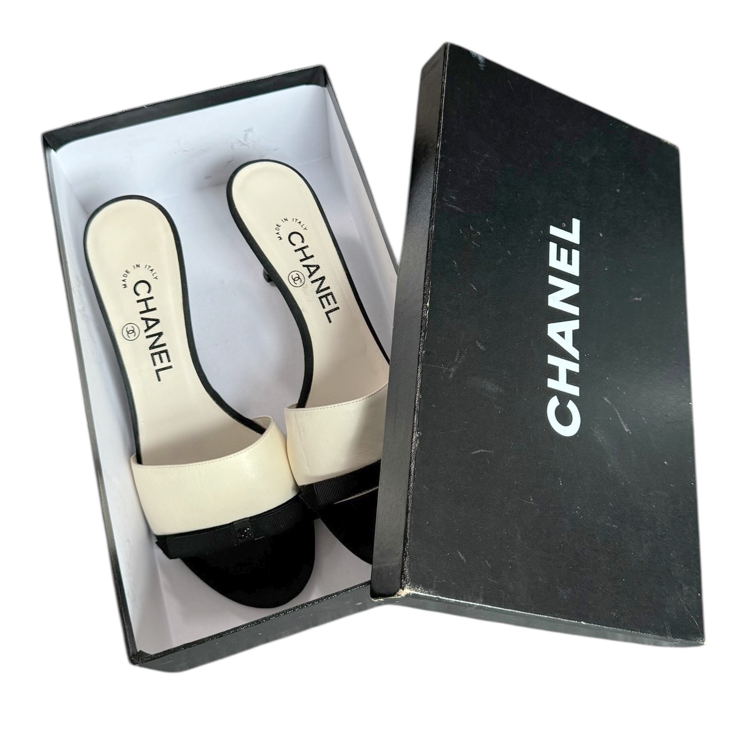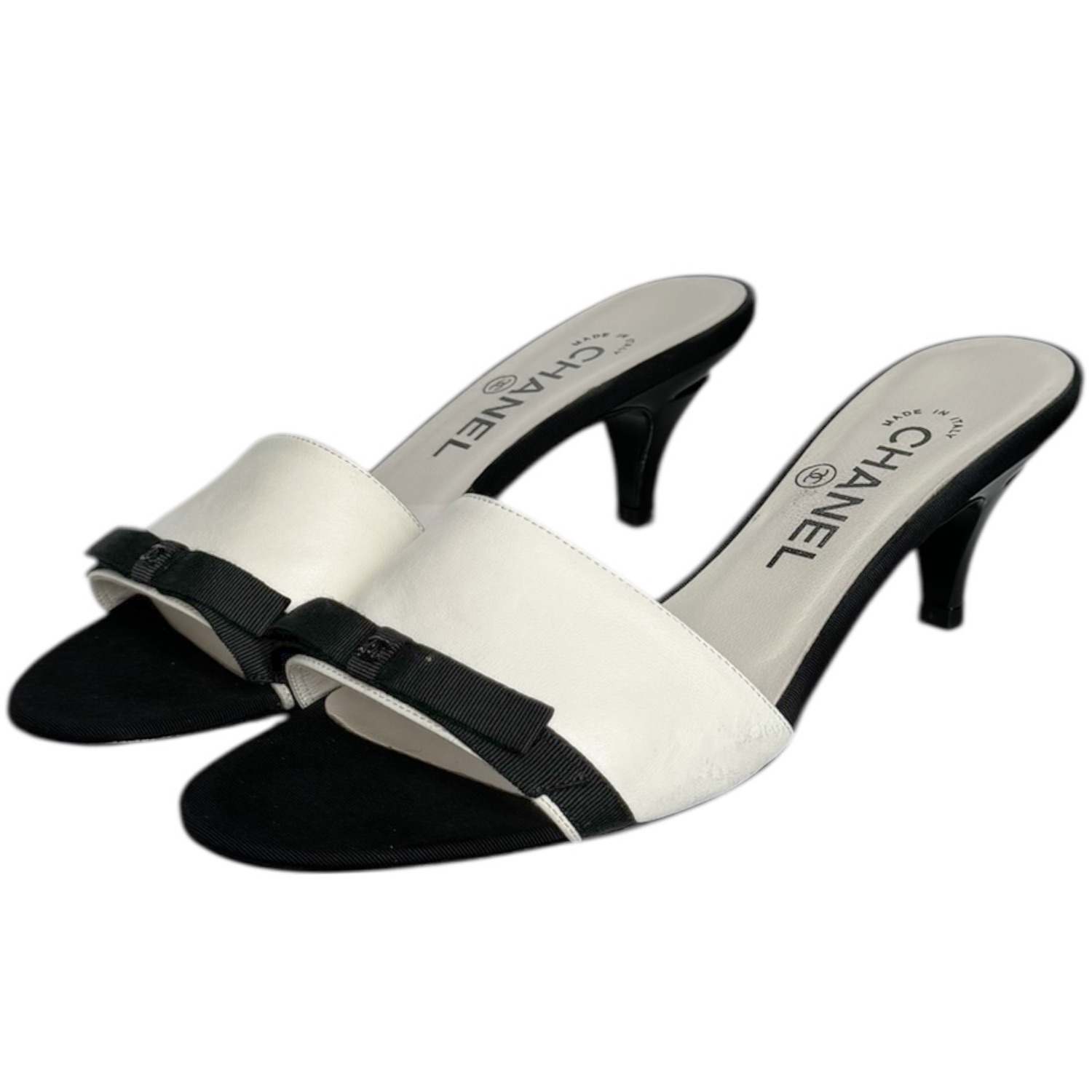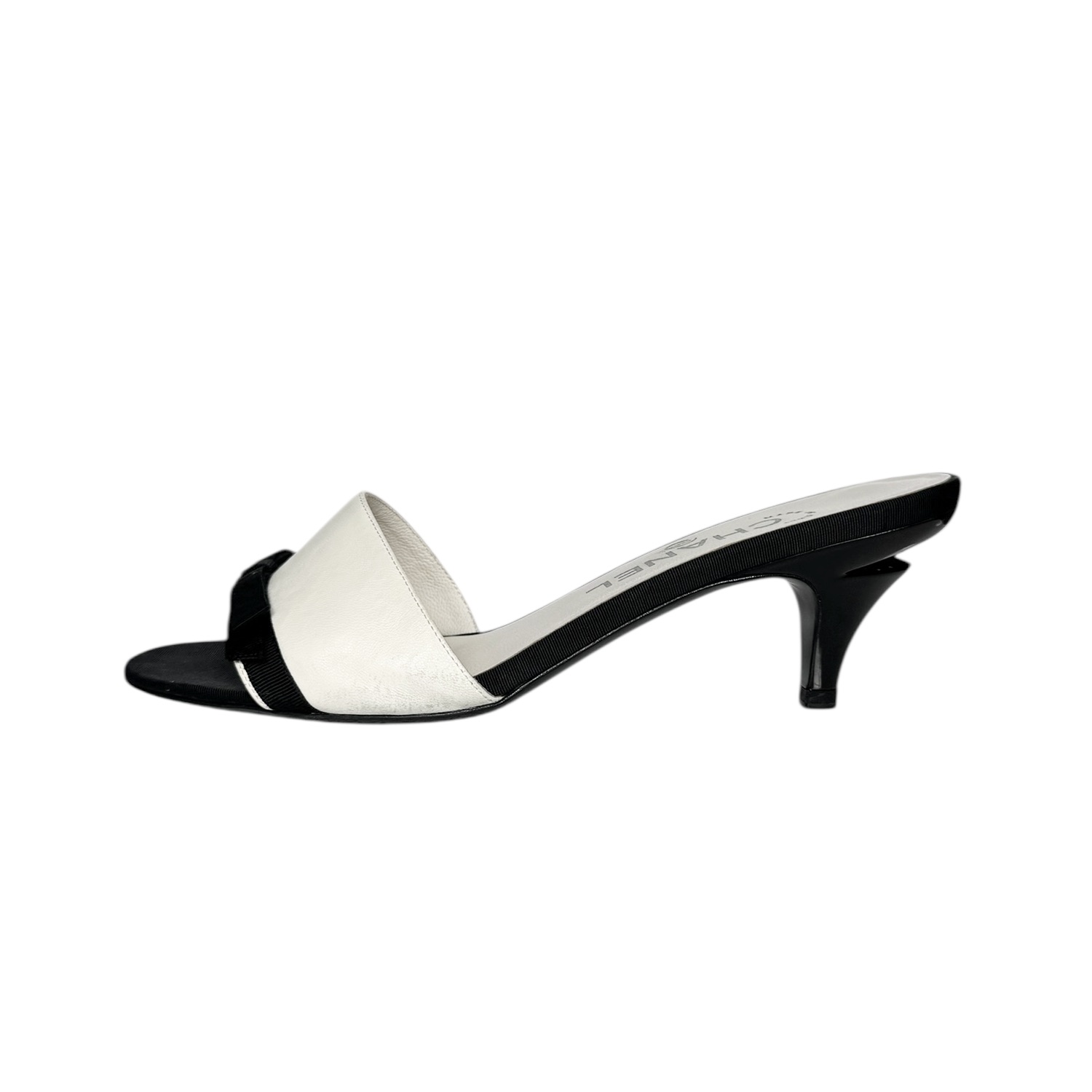 Chanel Bow Logo Heels in Black / Ivory UK 4.5
