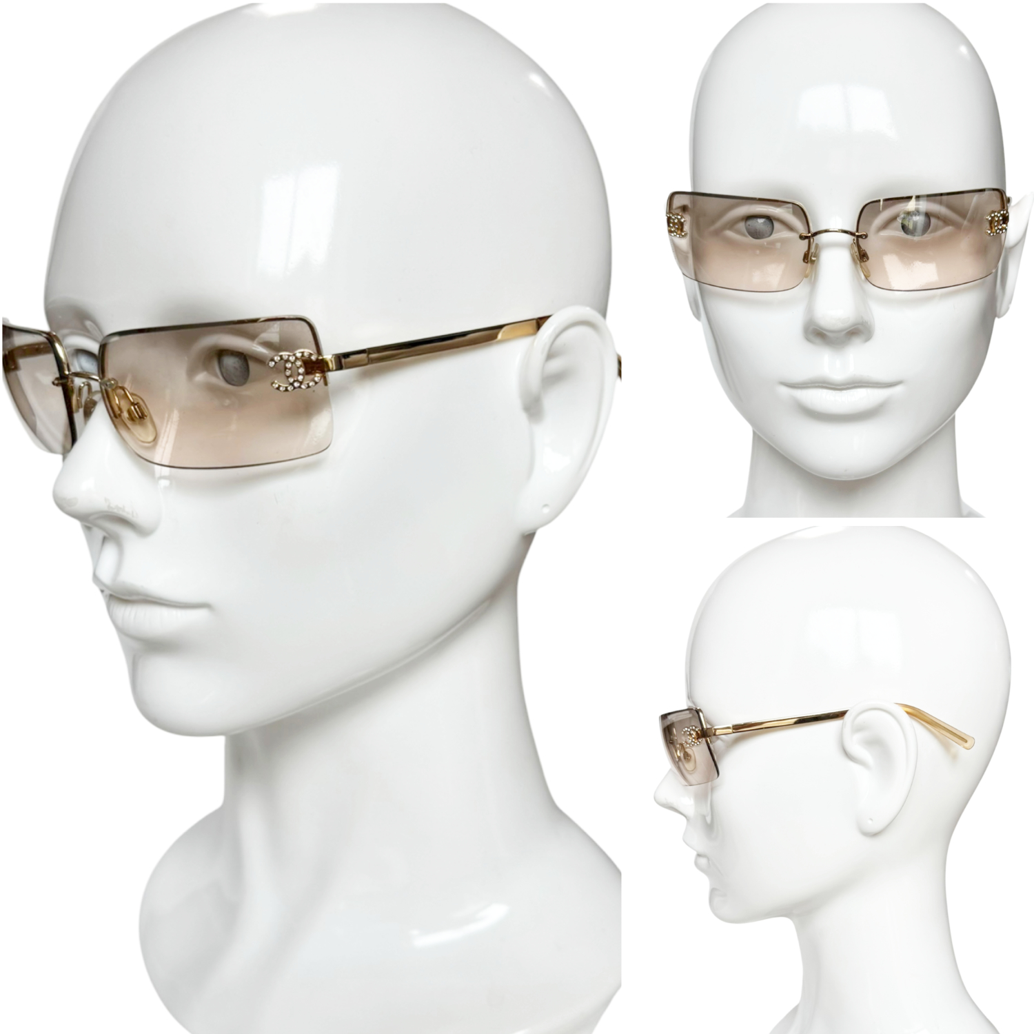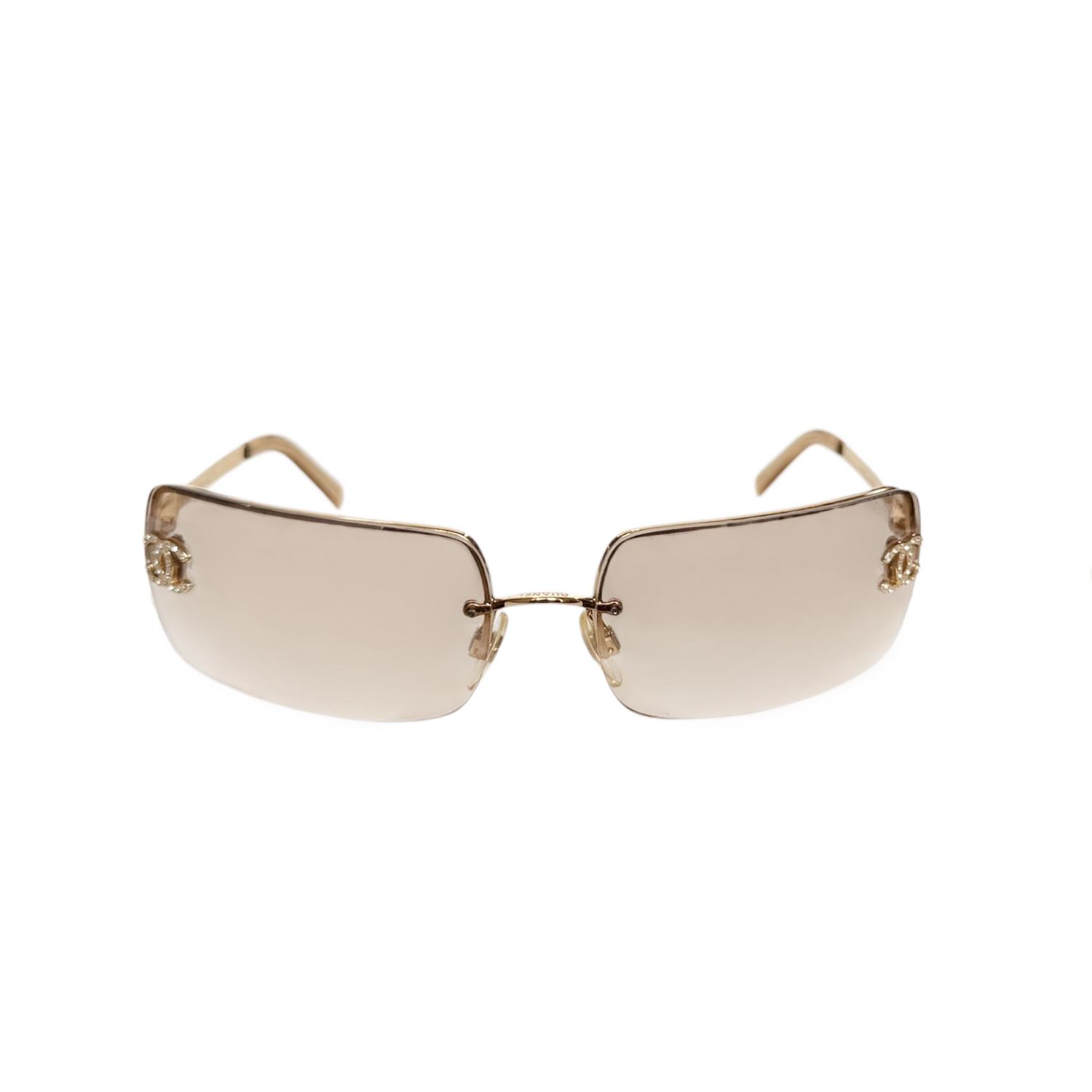 Chanel Diamante Logo Rimless Sunglasses in Gold