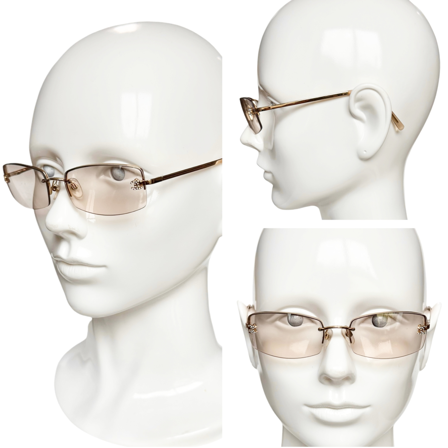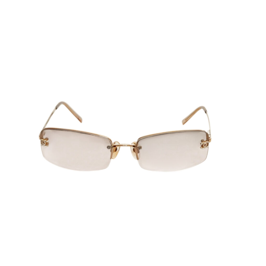 Chanel Diamante Logo Rimless Sunglasses in Gold