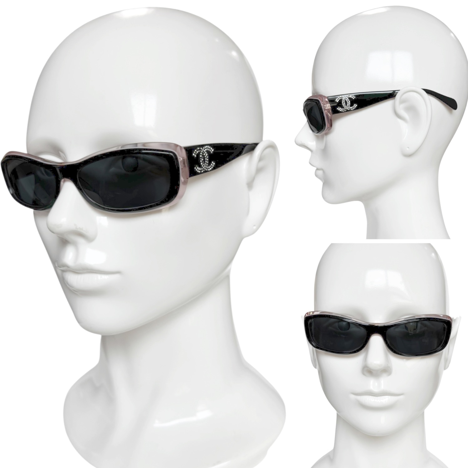 Chanel Diamante Logo Sunglasses in Black / Pink
