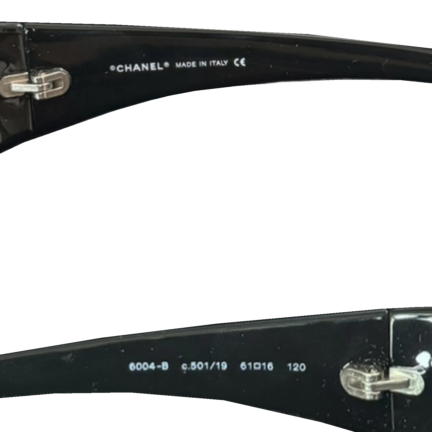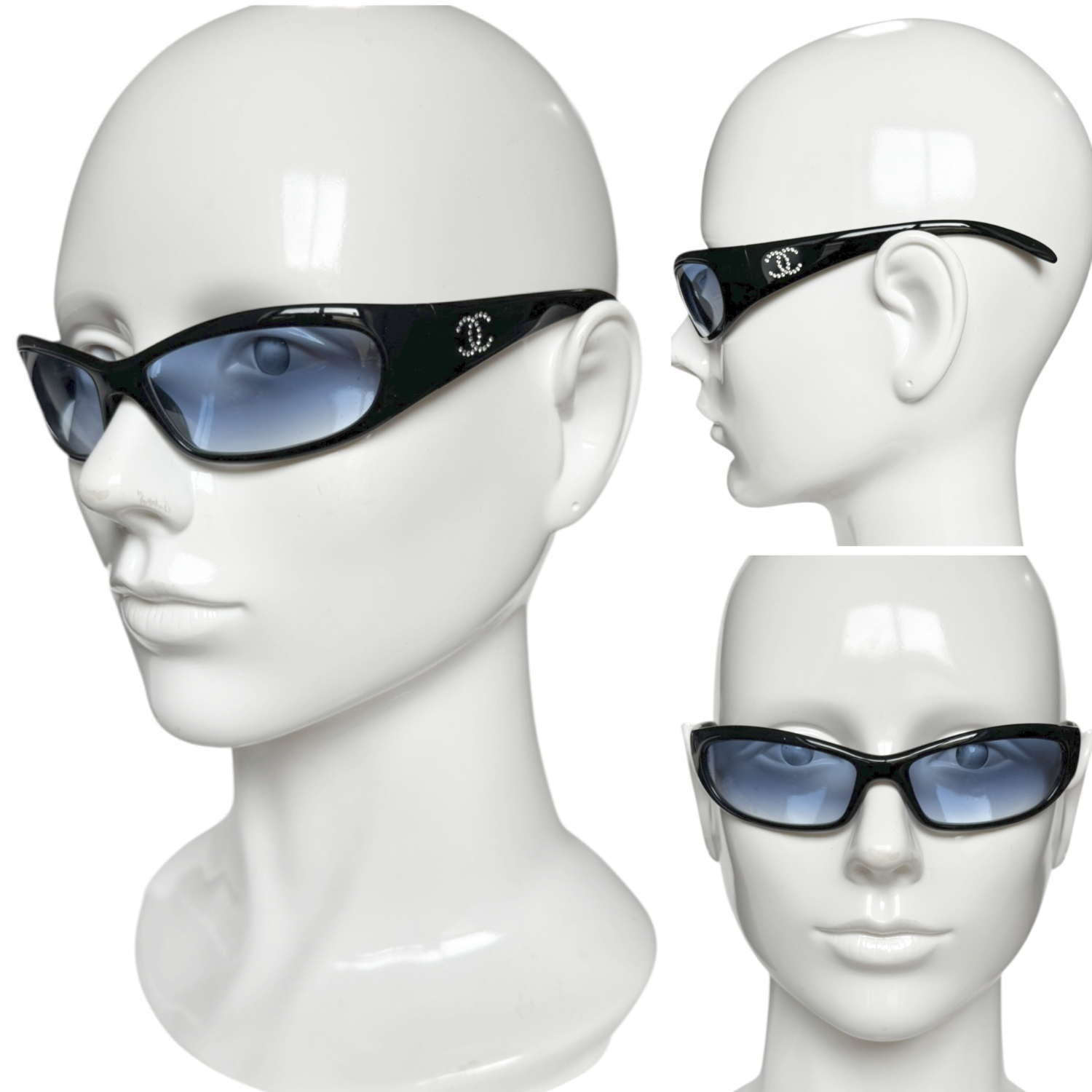Chanel Diamante Logo Wraparound Sunglasses in Black / Blue