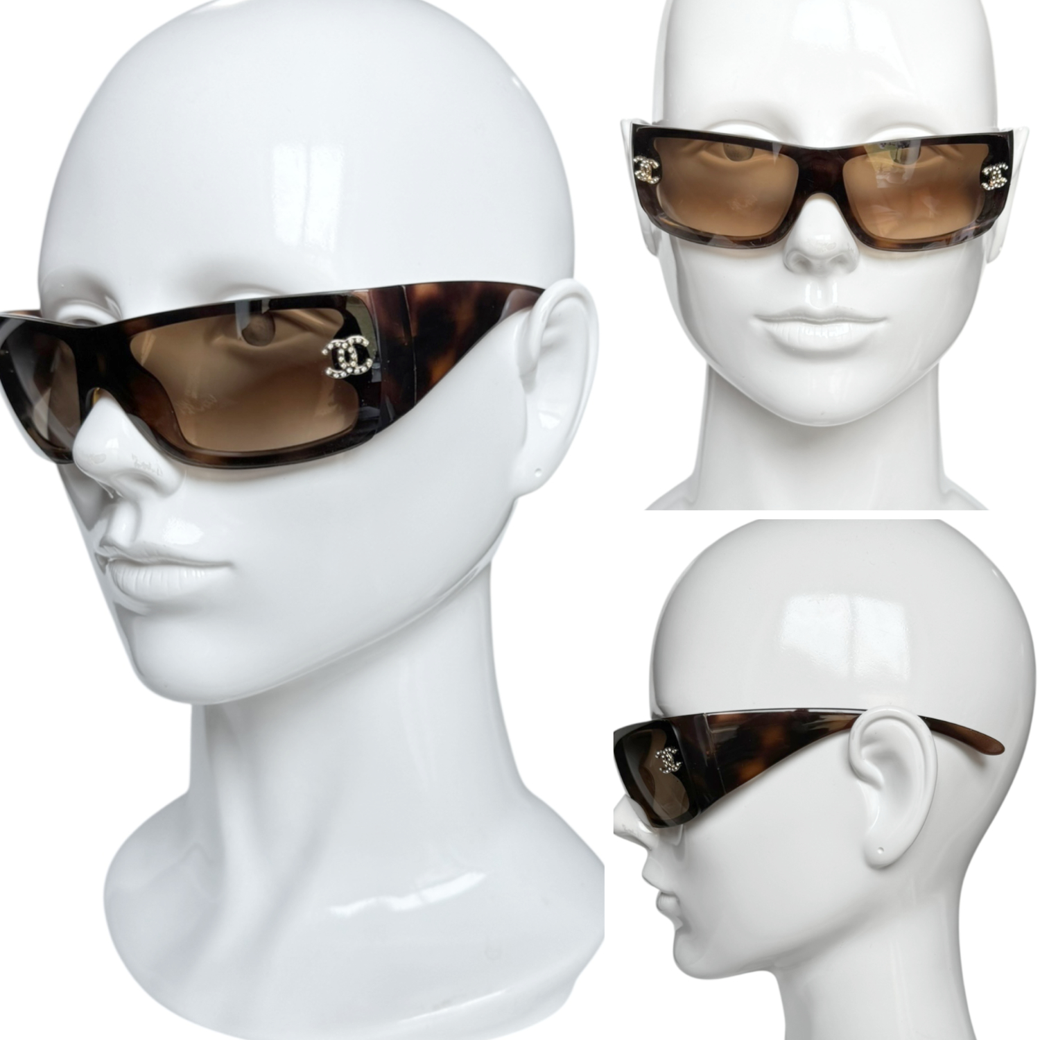 Chanel Diamante Logo Wraparound Tortoiseshell Sunglasses in Brown / Gold