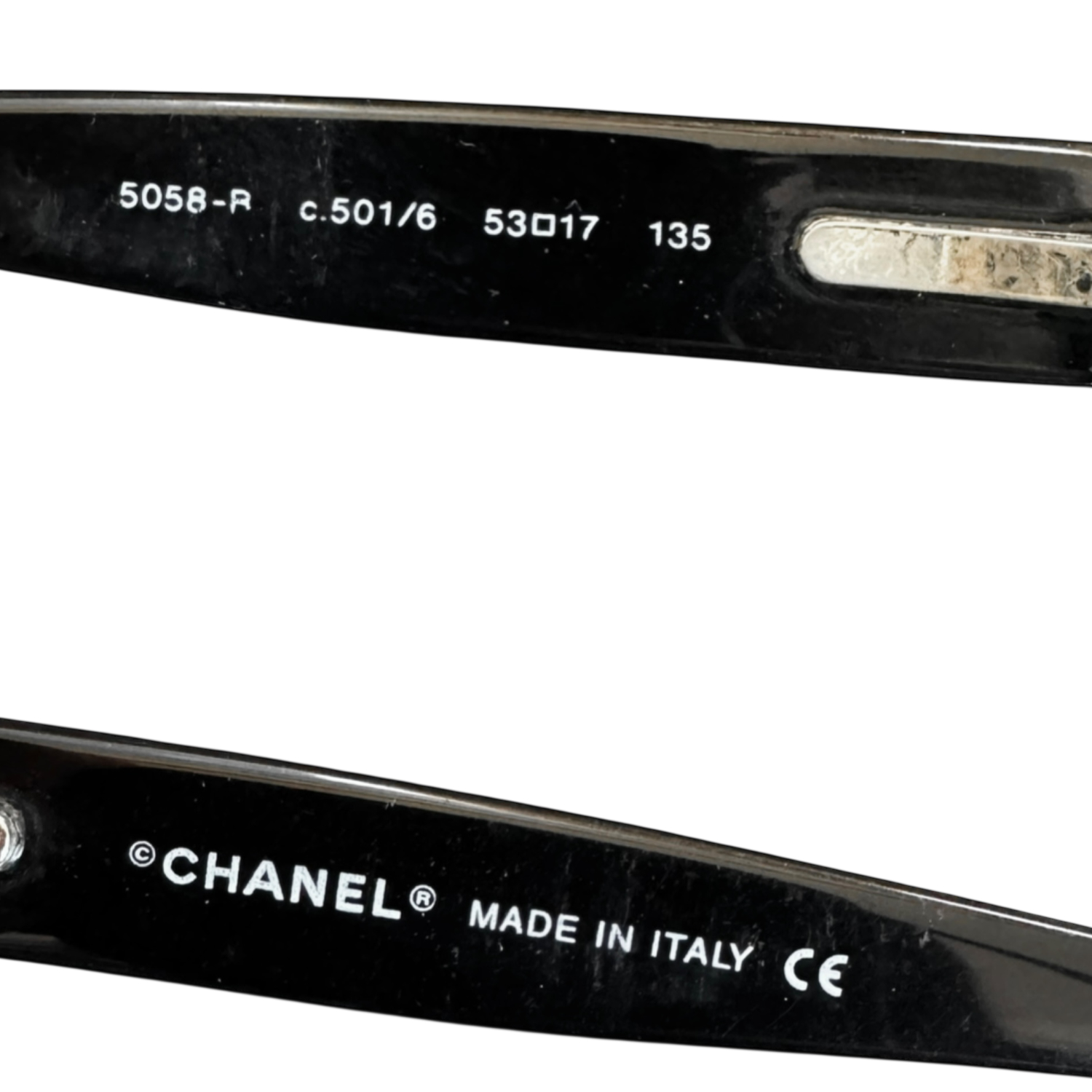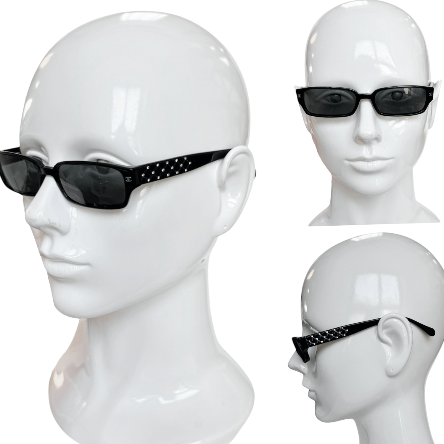 Chanel Logo Diamante Sunglasses in Black / Silver