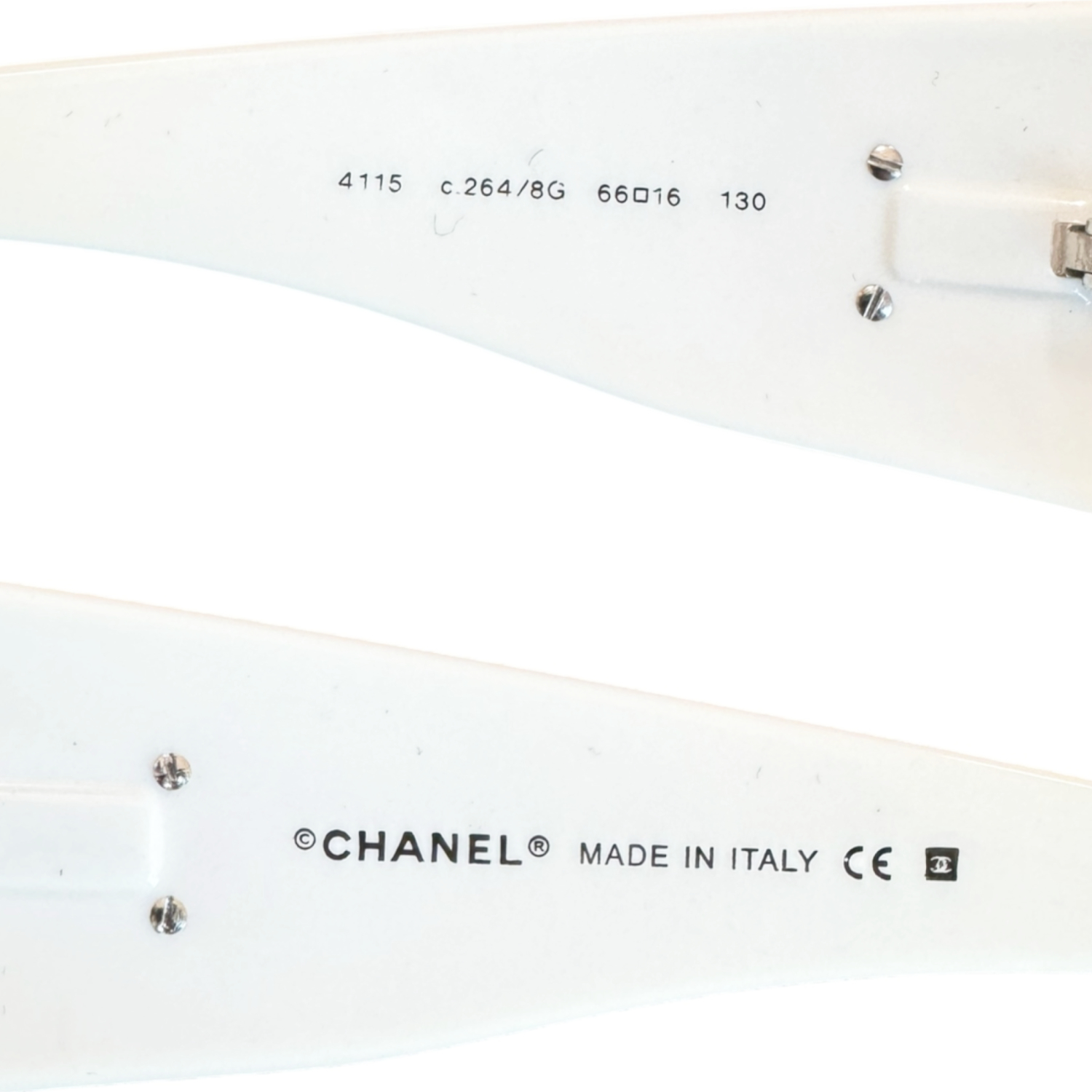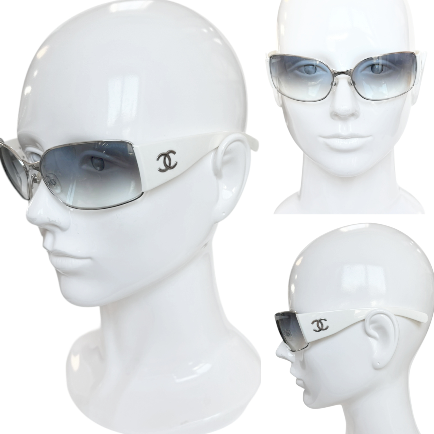 Chanel Logo Wraparound Sunglasses in White / Silver