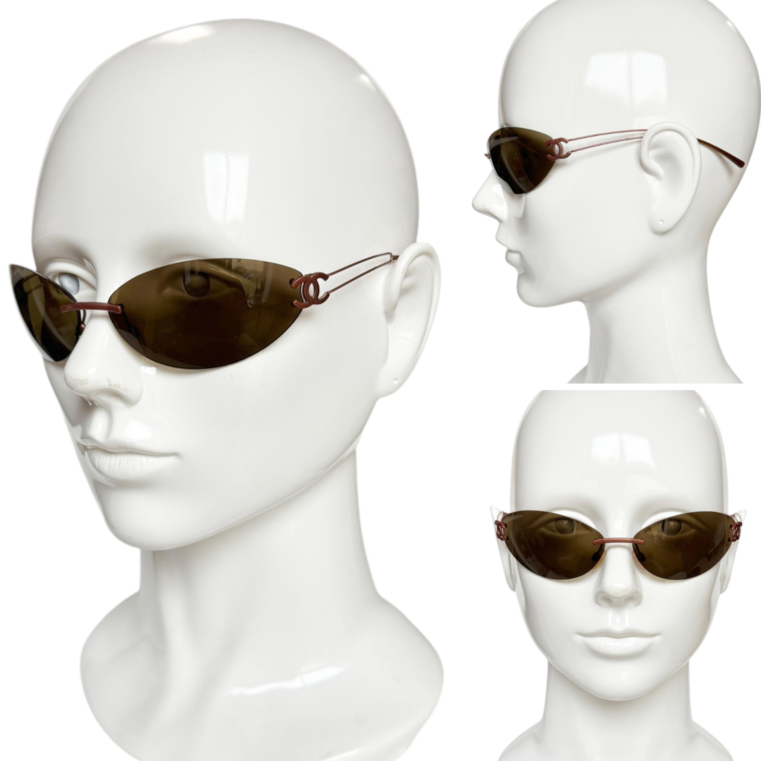 Chanel Rimless Logo Wraparound Sunglasses in Brown – Copper