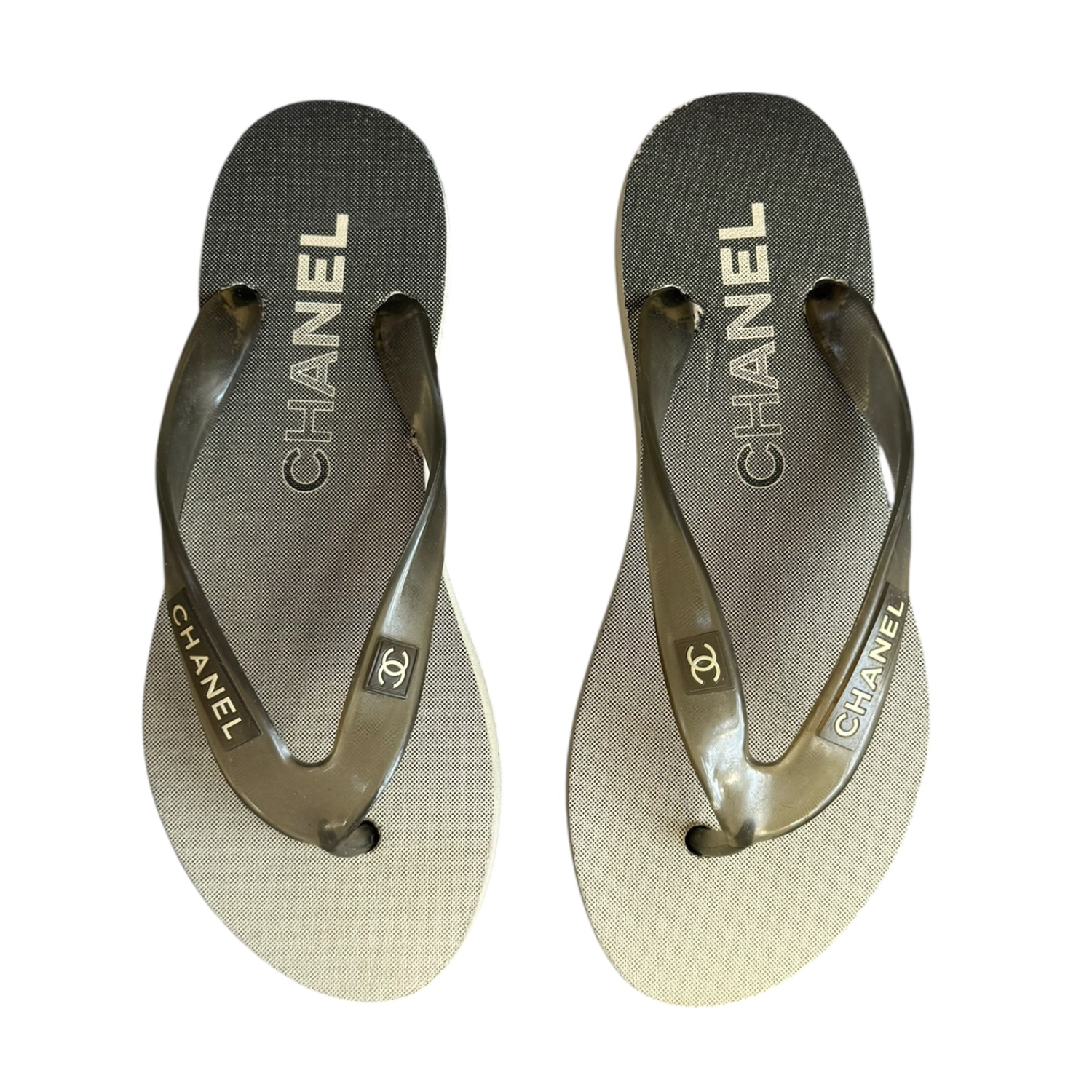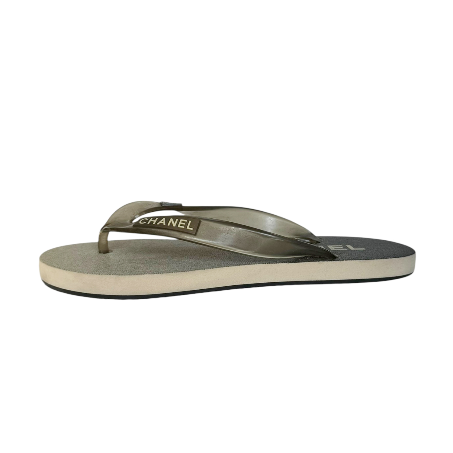 Chanel Rubber Logo Thong Sandal Flip Flops in Grey UK 5