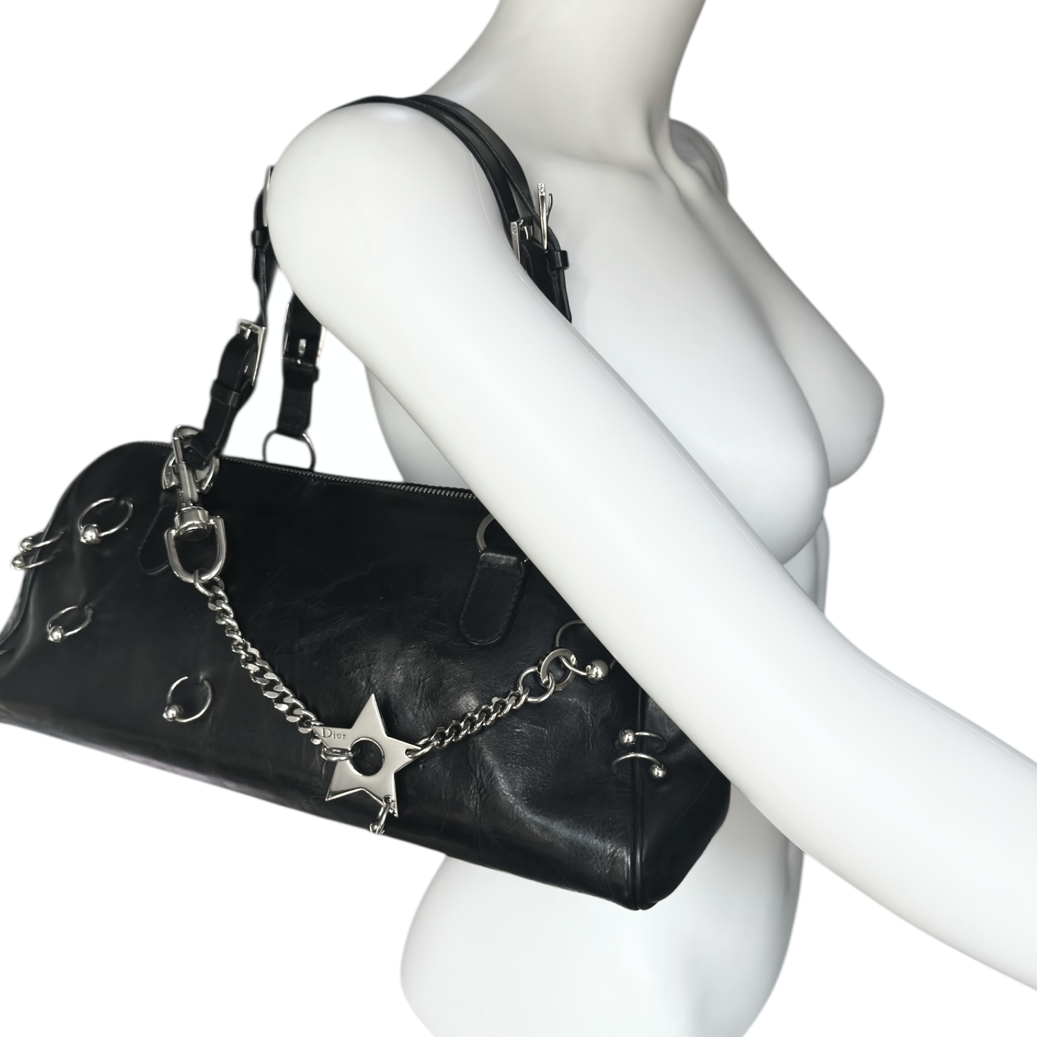 Dior Hardcore Star Leather Shoulder Bag in Black / Silver