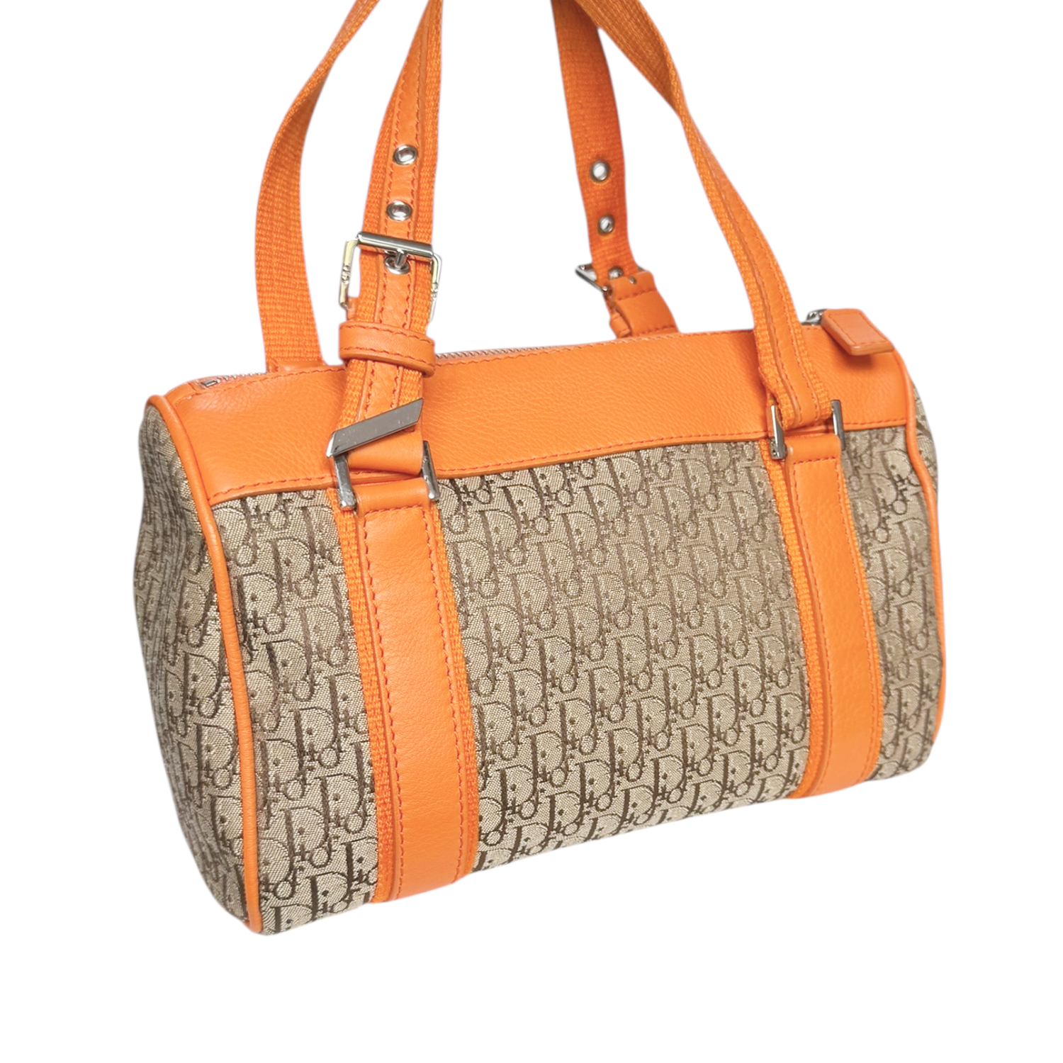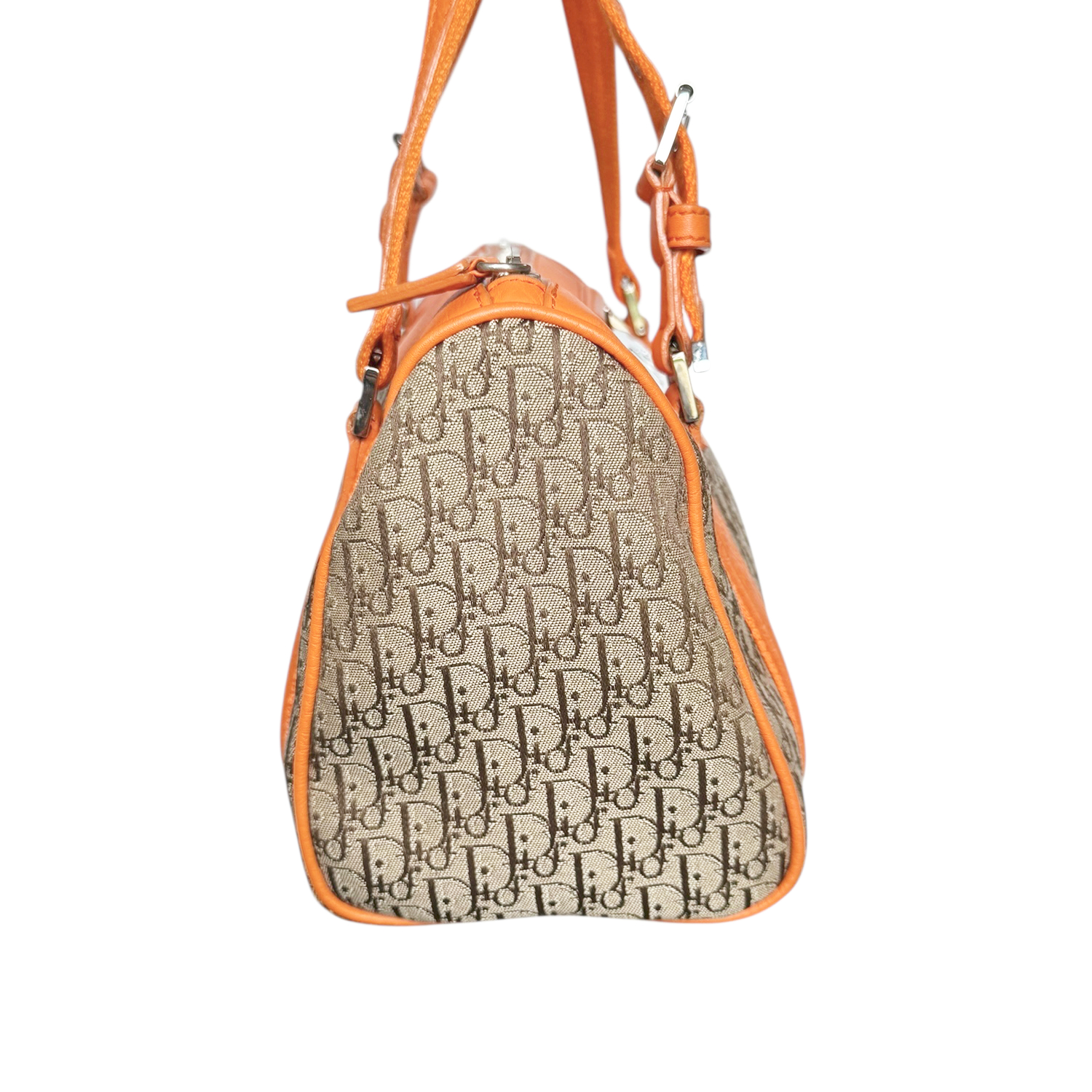 Dior Monogram Mini Boston Bag in Beige / Orange / Silver