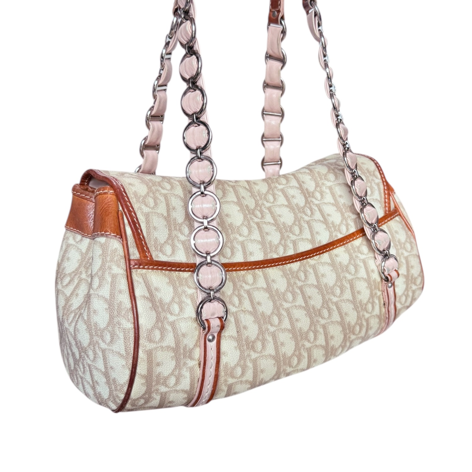 Dior Monogram Romantic Heart Shoulder Bag in Beige / Baby Pink / Tan