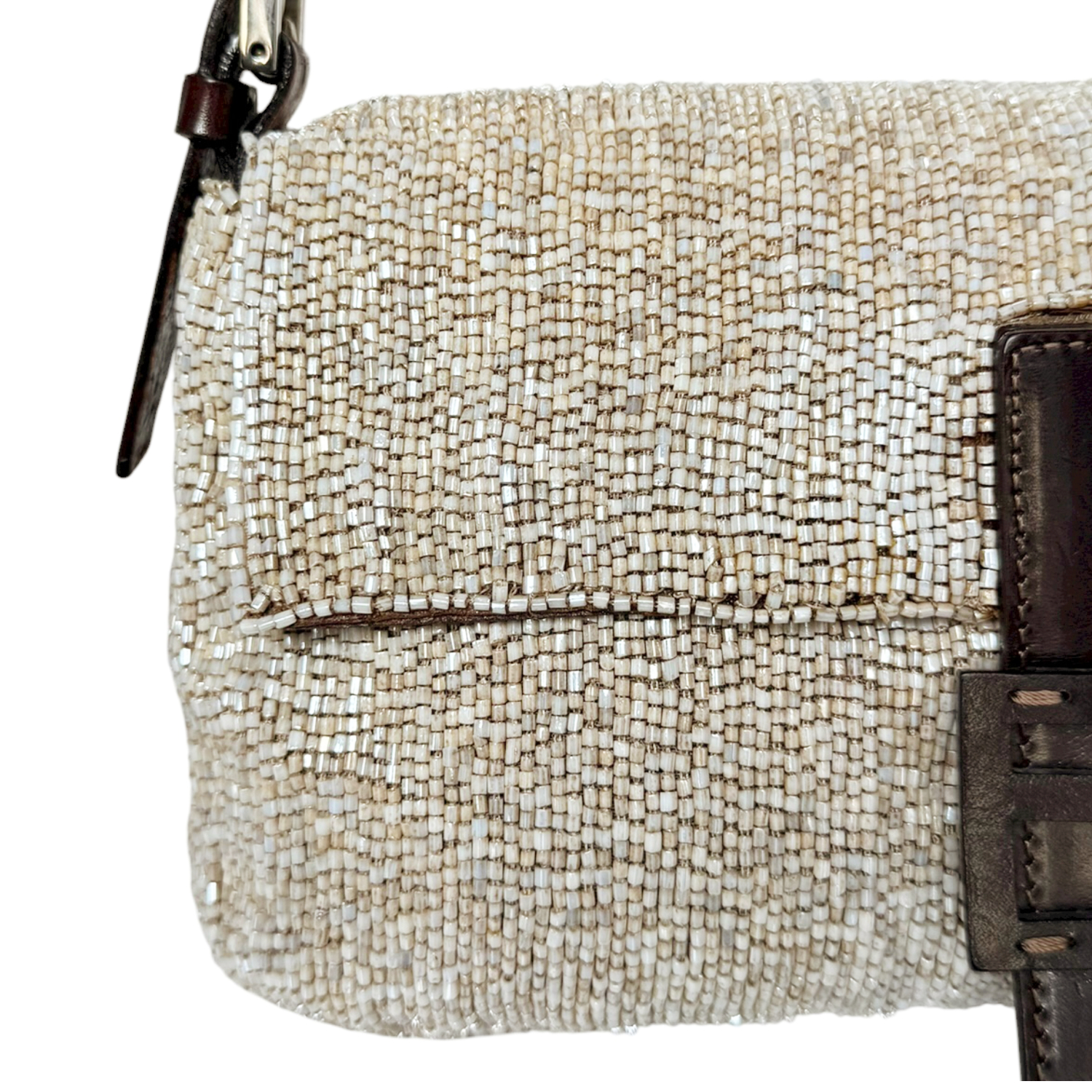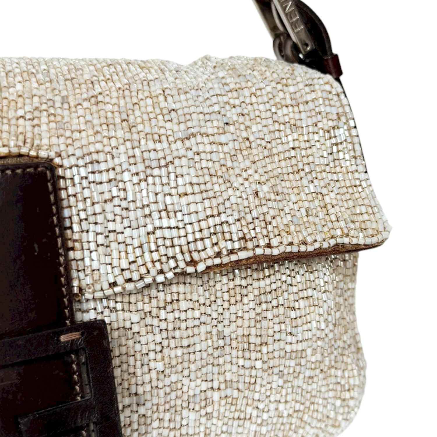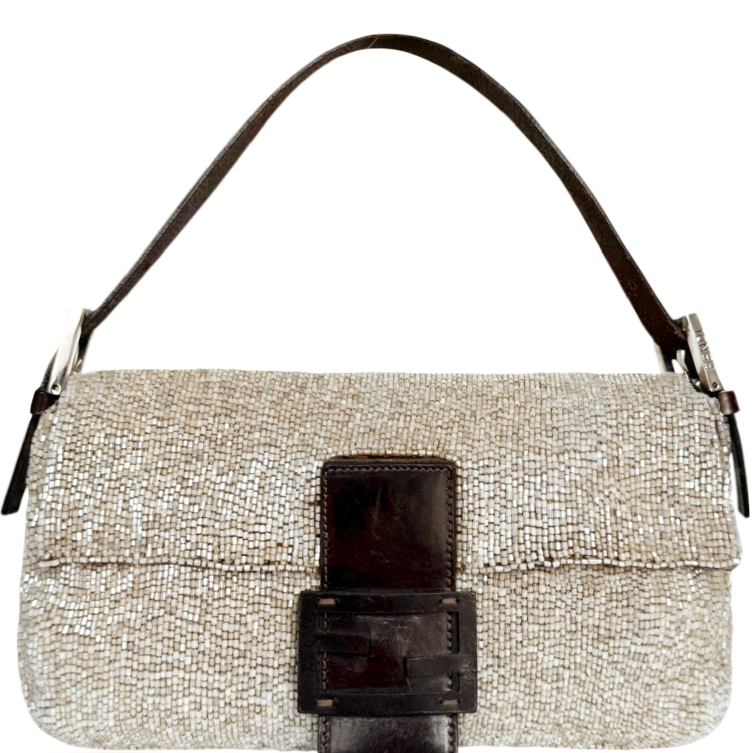 Fendi Beaded Embellished Shoulder Baguette Bag in Beige / Brown