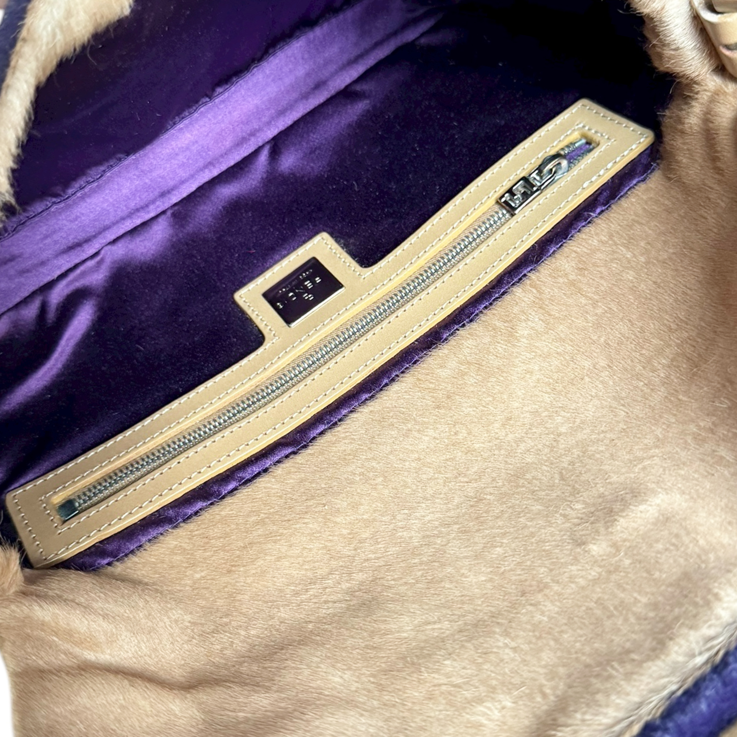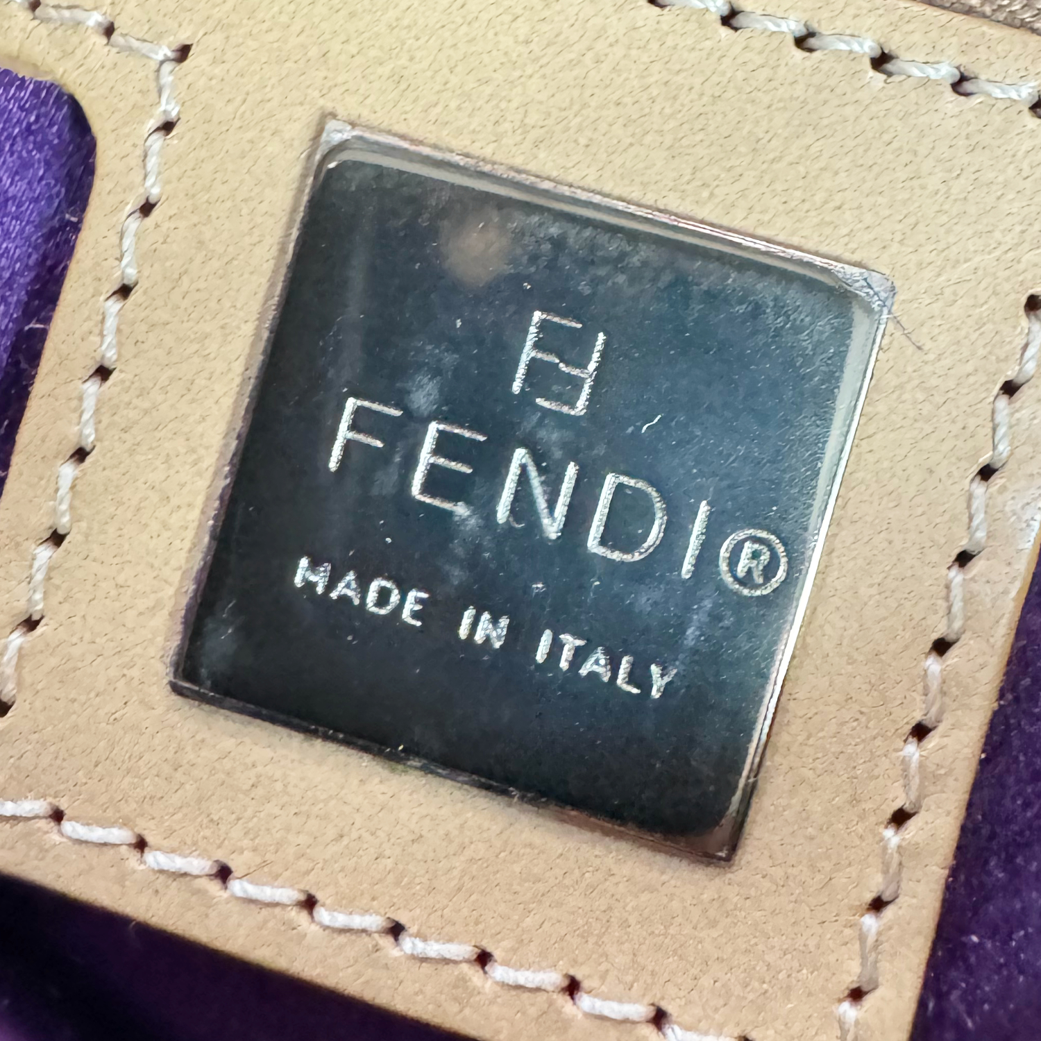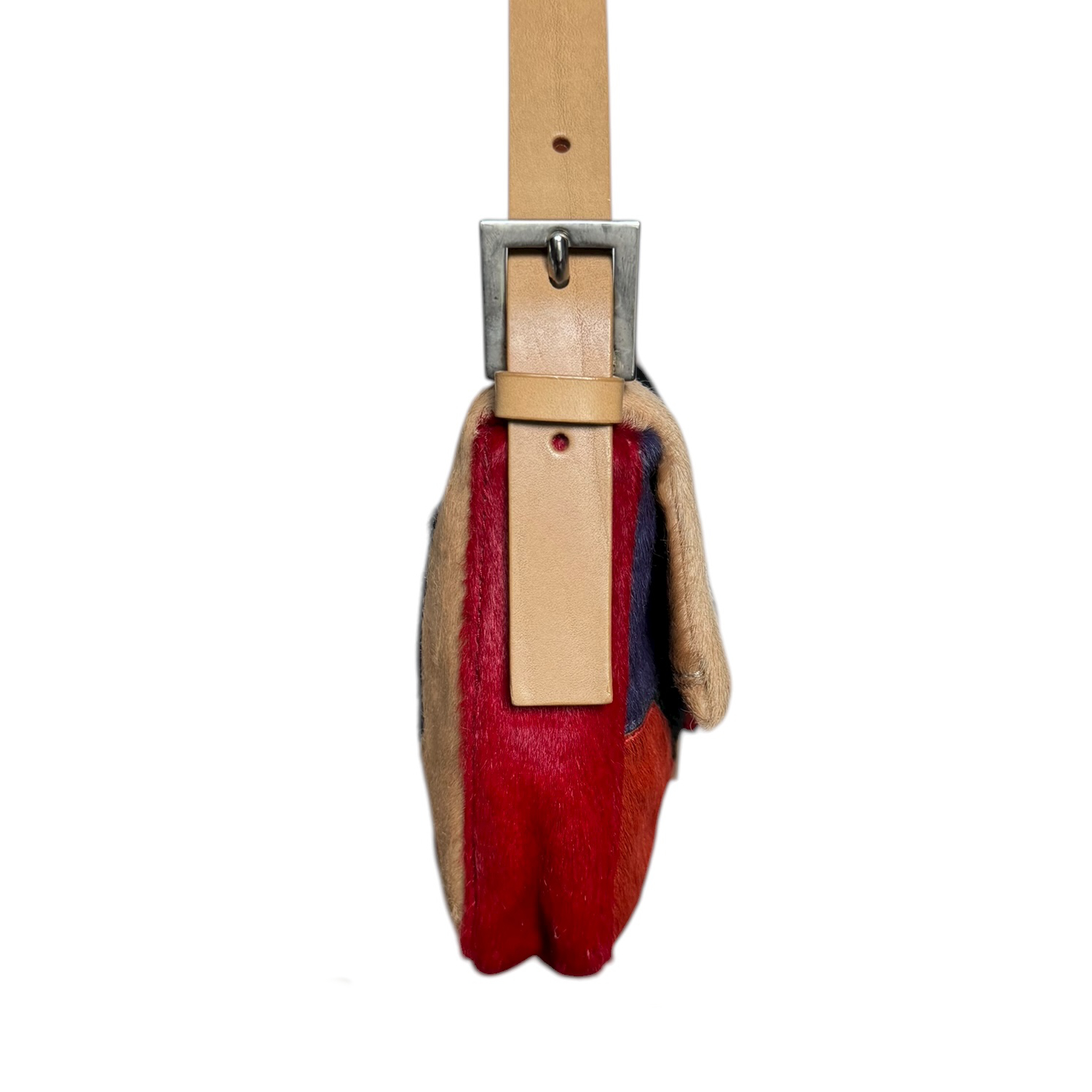 Fendi Calfskin Patchwork Shoulder Baguette Bag in Beige / Red / Multi