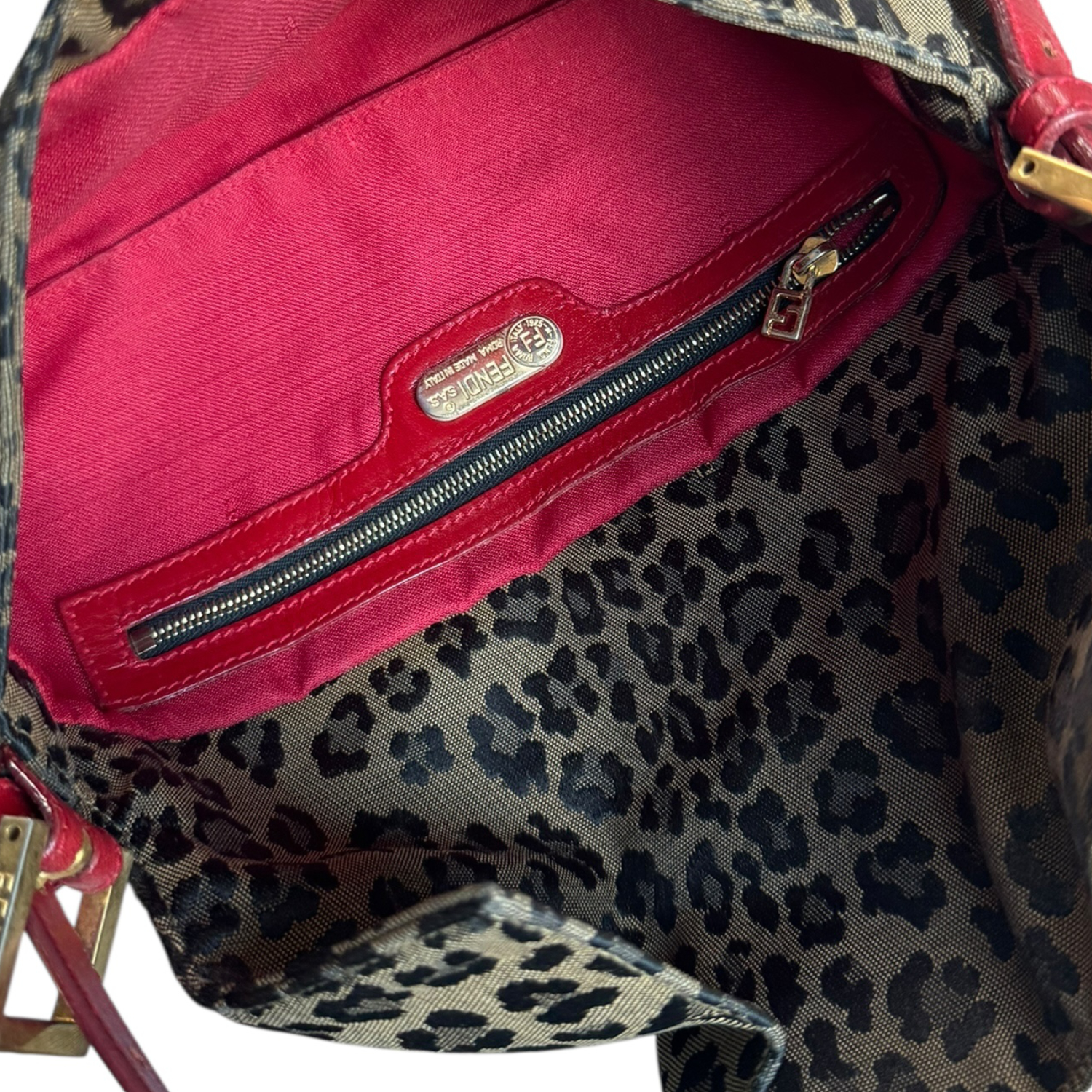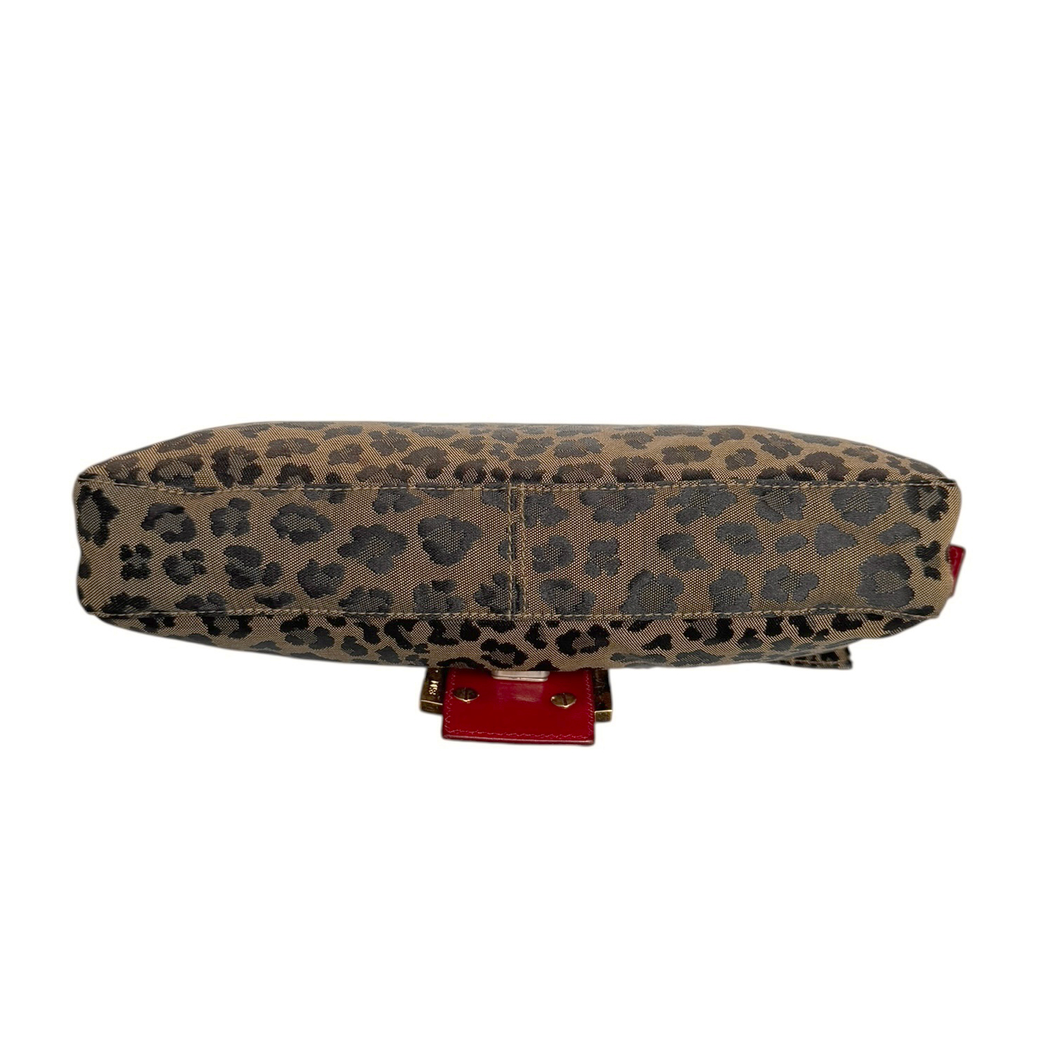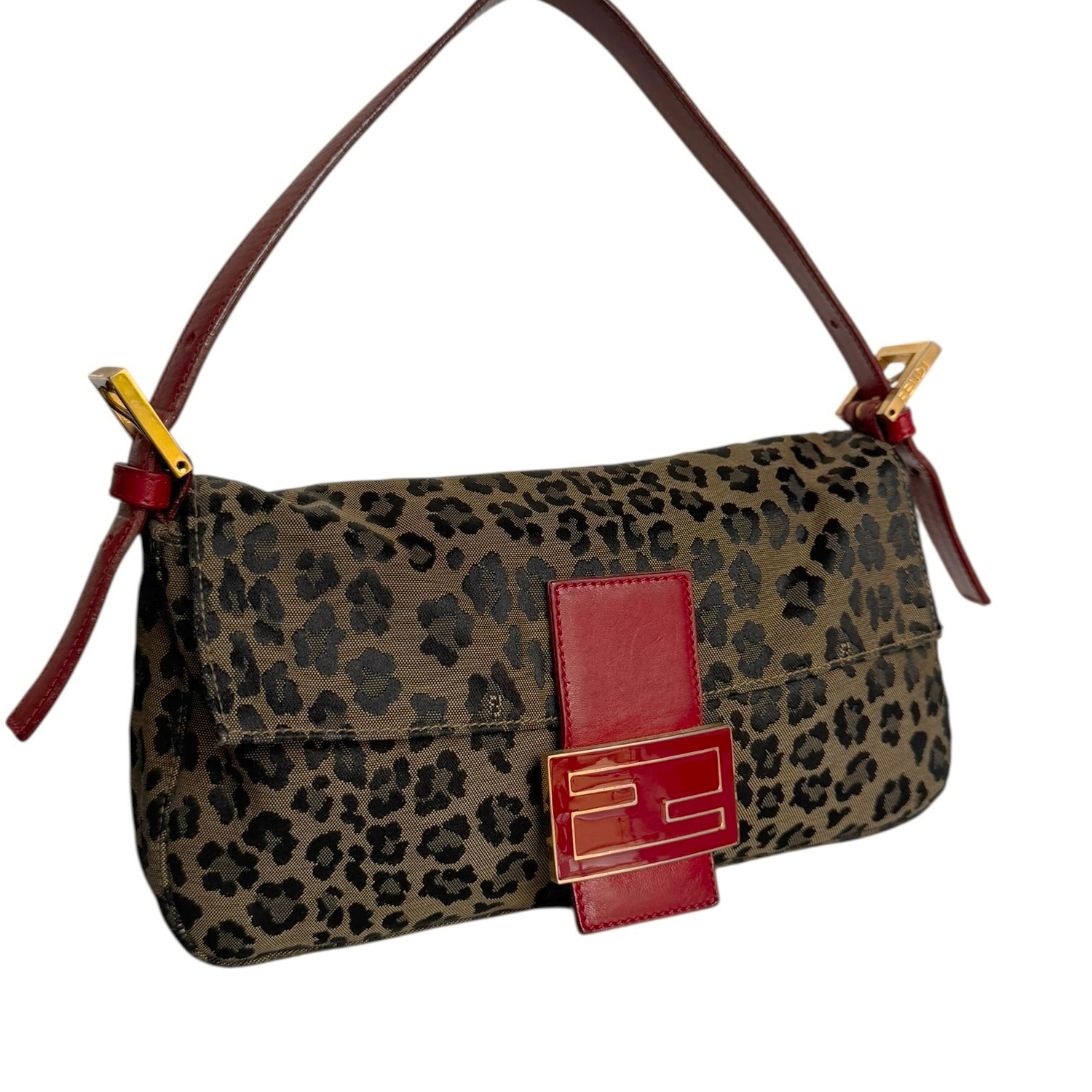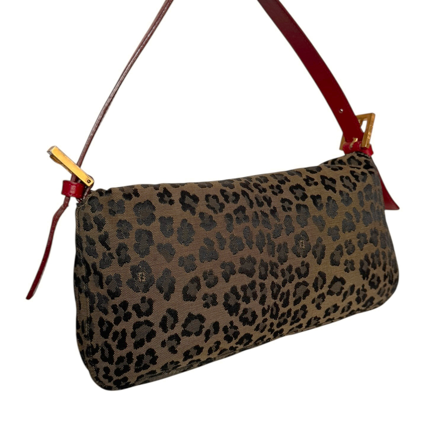 Fendi Leopard Print Shoulder Baguette Bag in Brown / Red