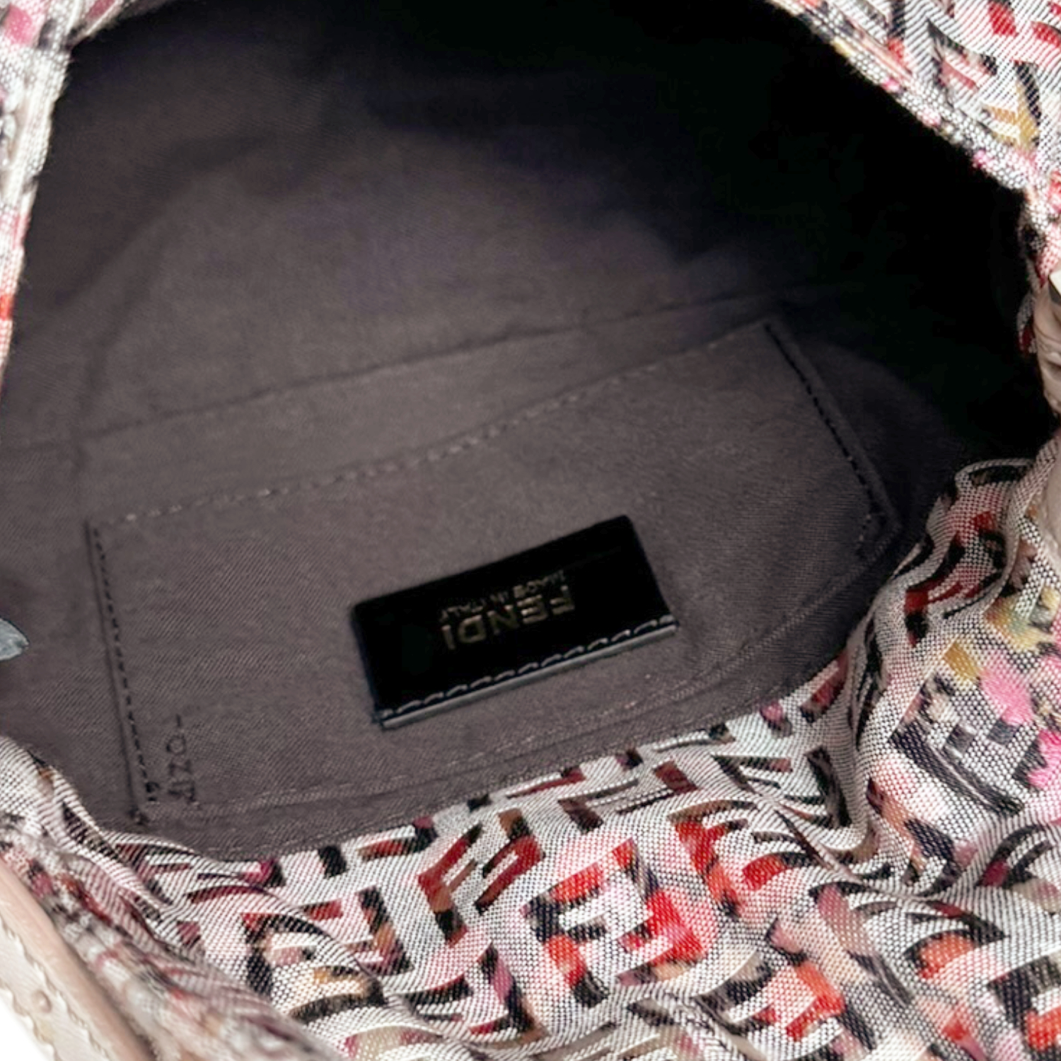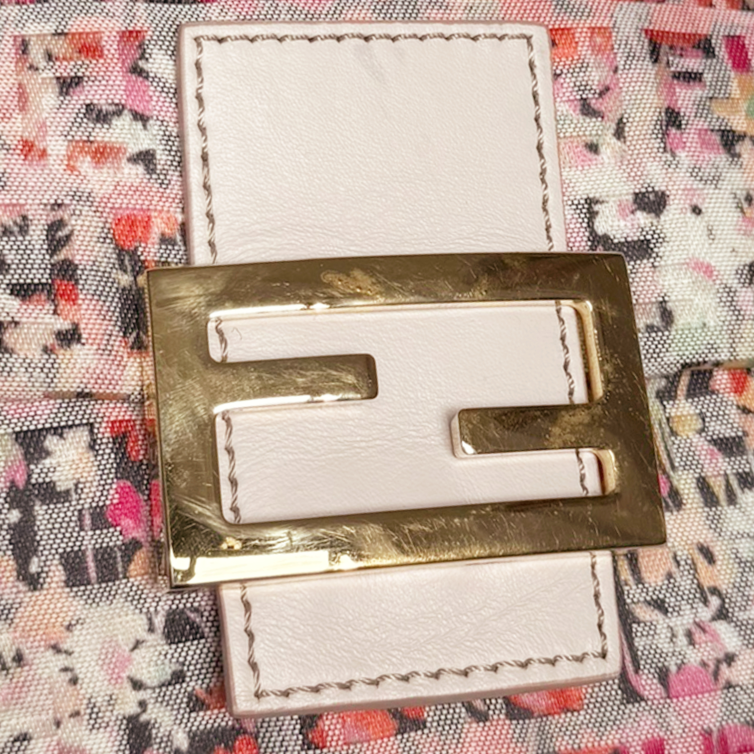 Fendi Monogram Floral Mini Mamma Shoulder Baguette Bag in Multicolour / Nude Pink / Gold