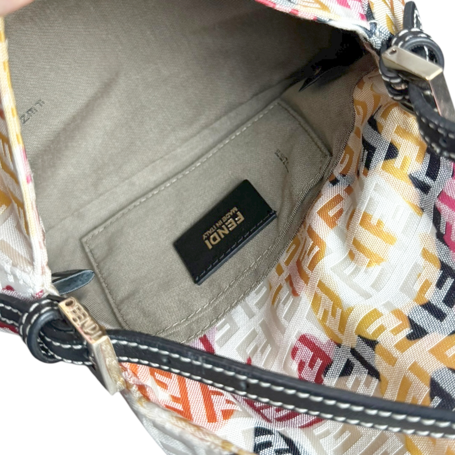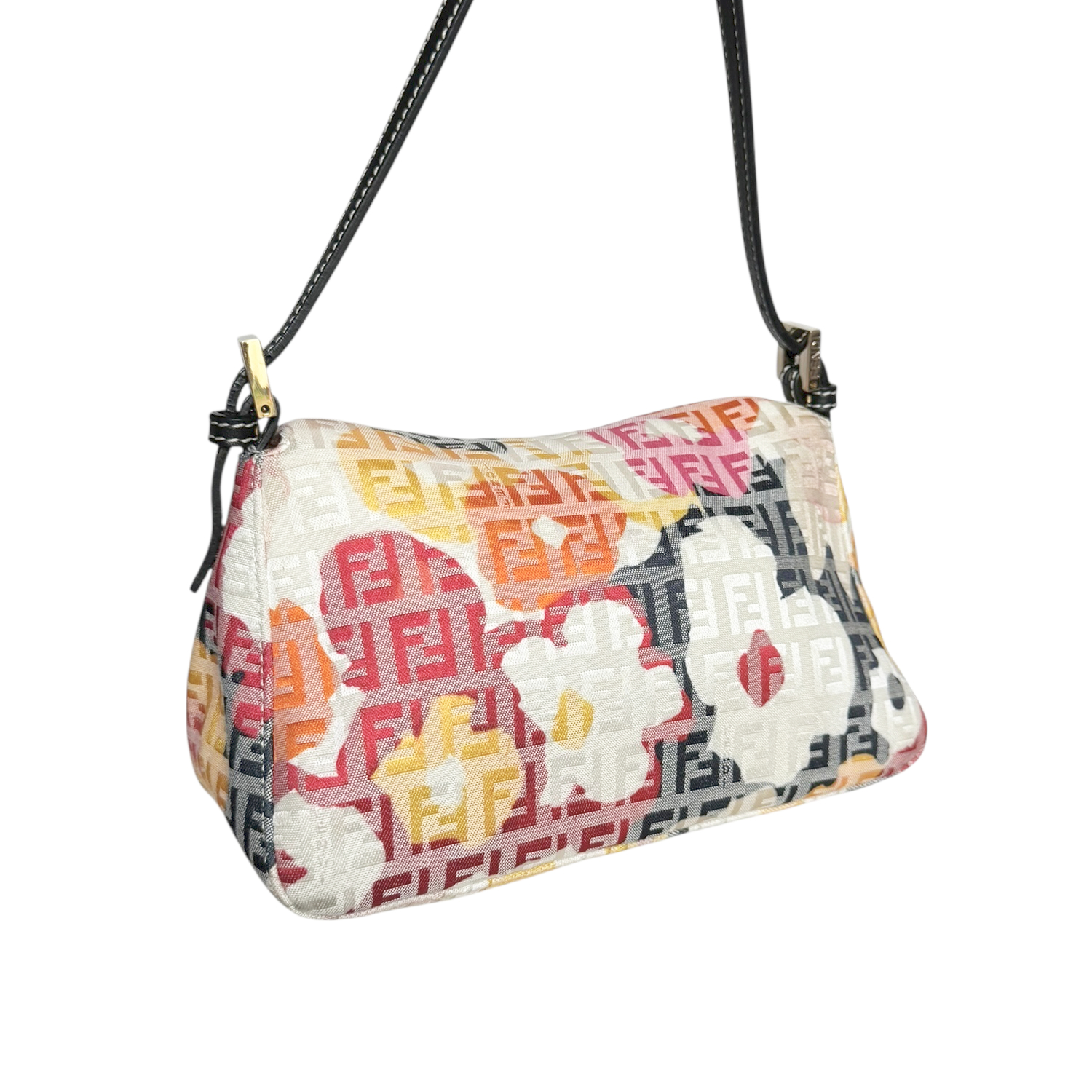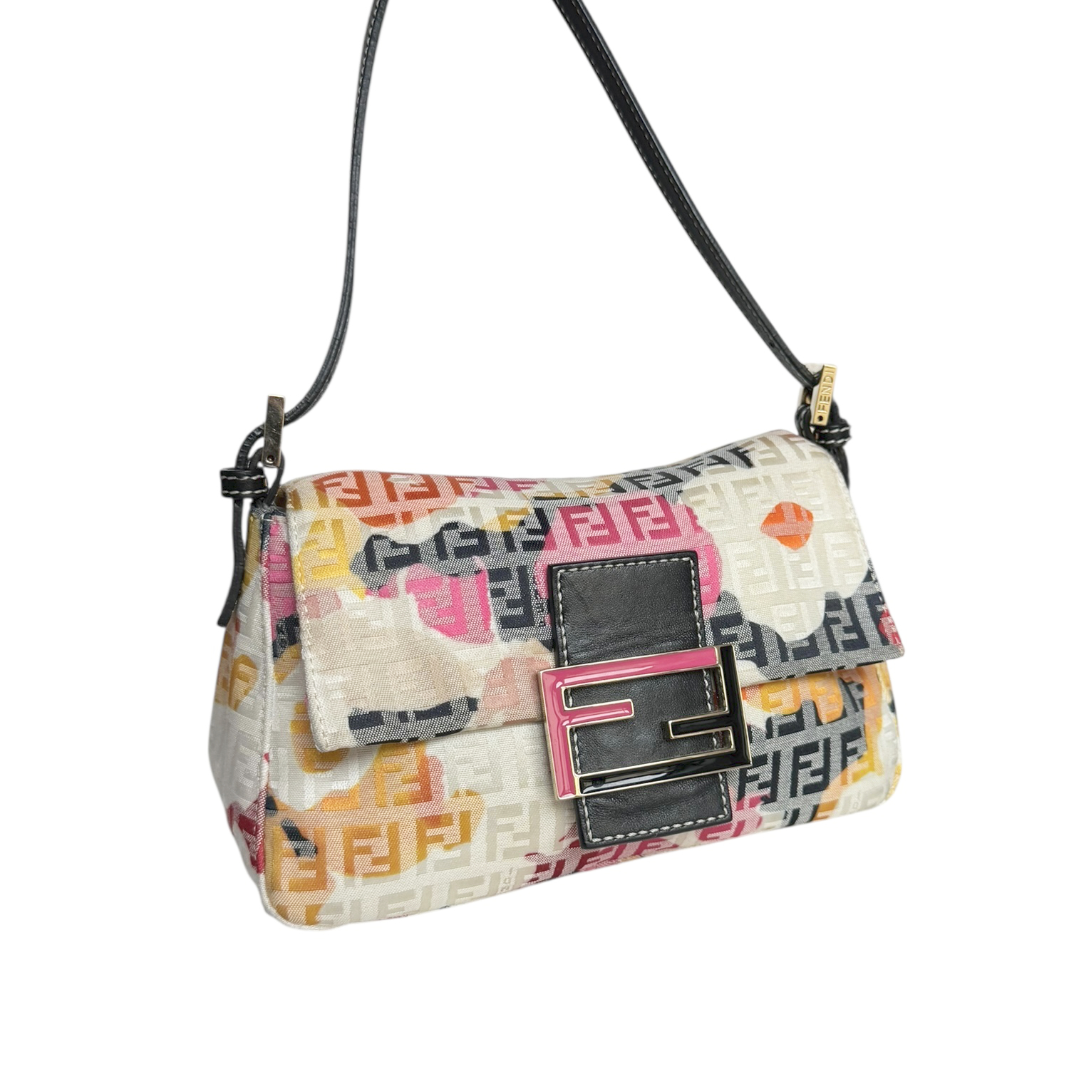 Fendi Monogram Floral Mini Mamma Shoulder Baguette Bag in Pink / Black / Yellow