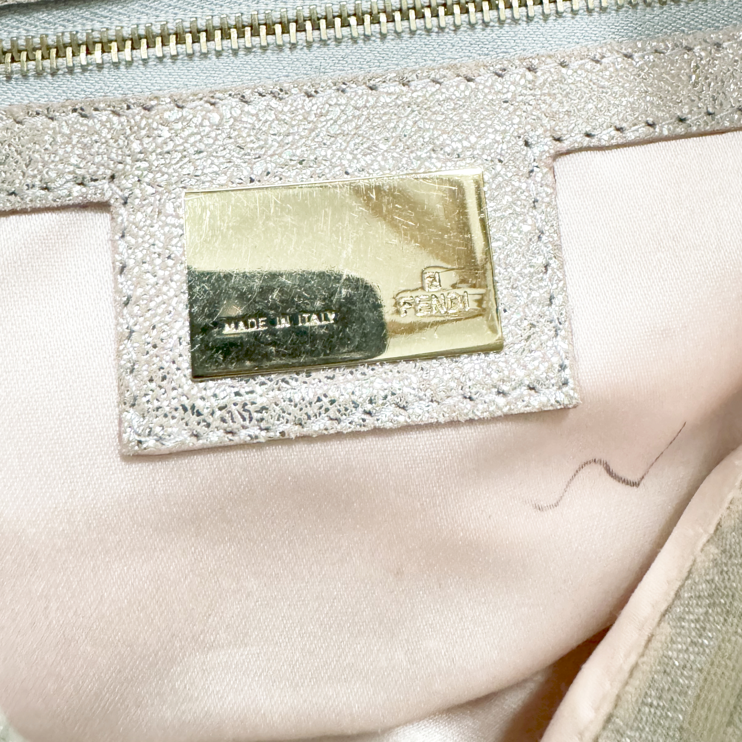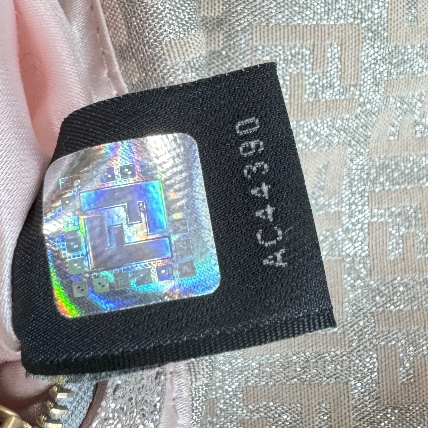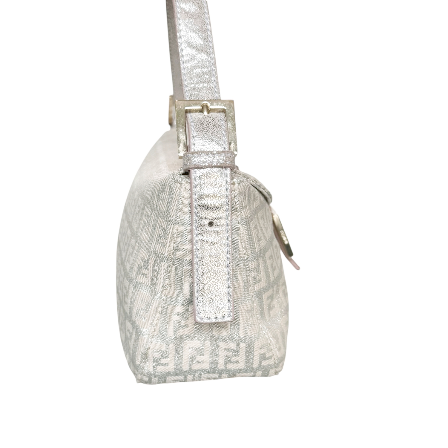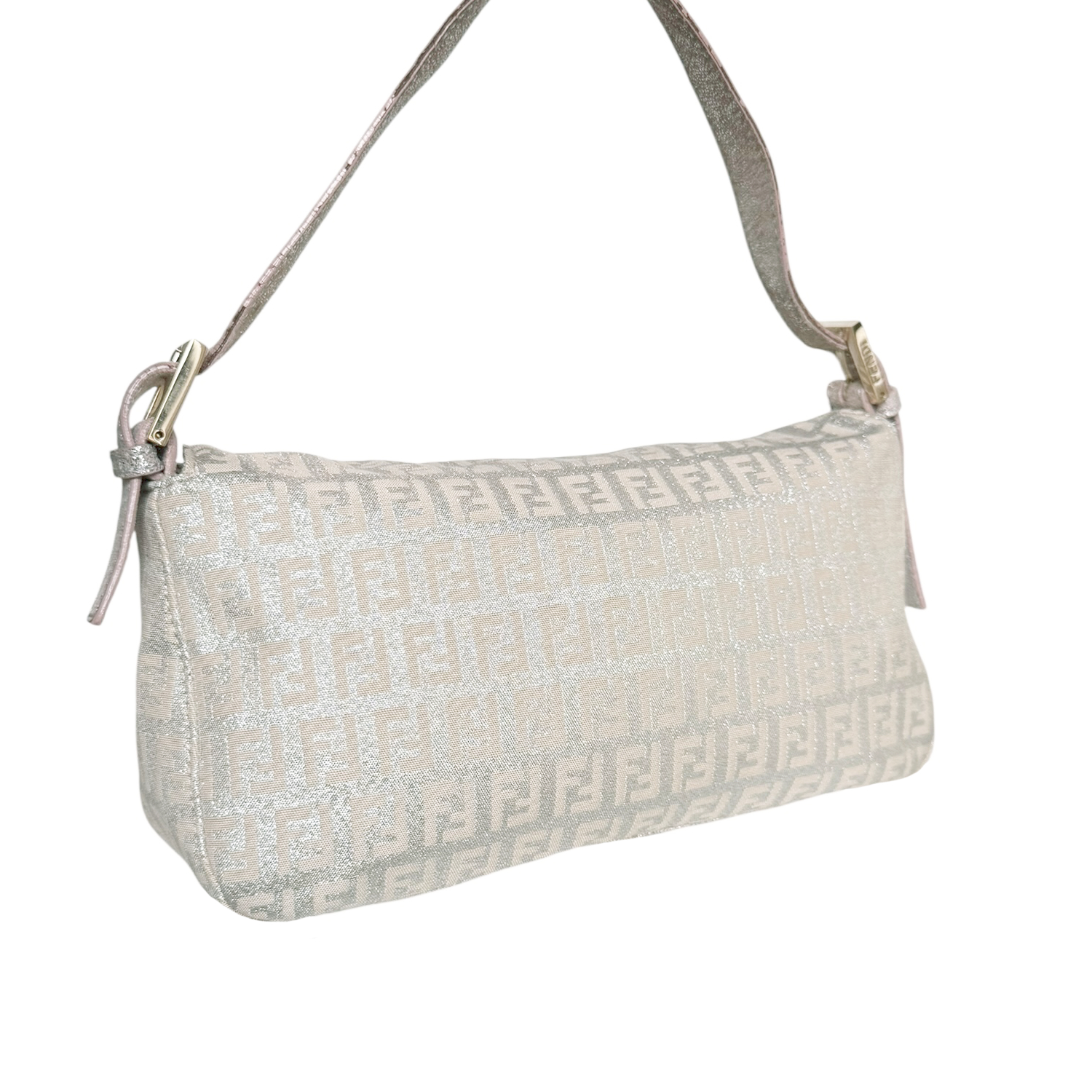 Fendi Monogram Metallic Shoulder Baguette Bag in Pink / Silver / Gold