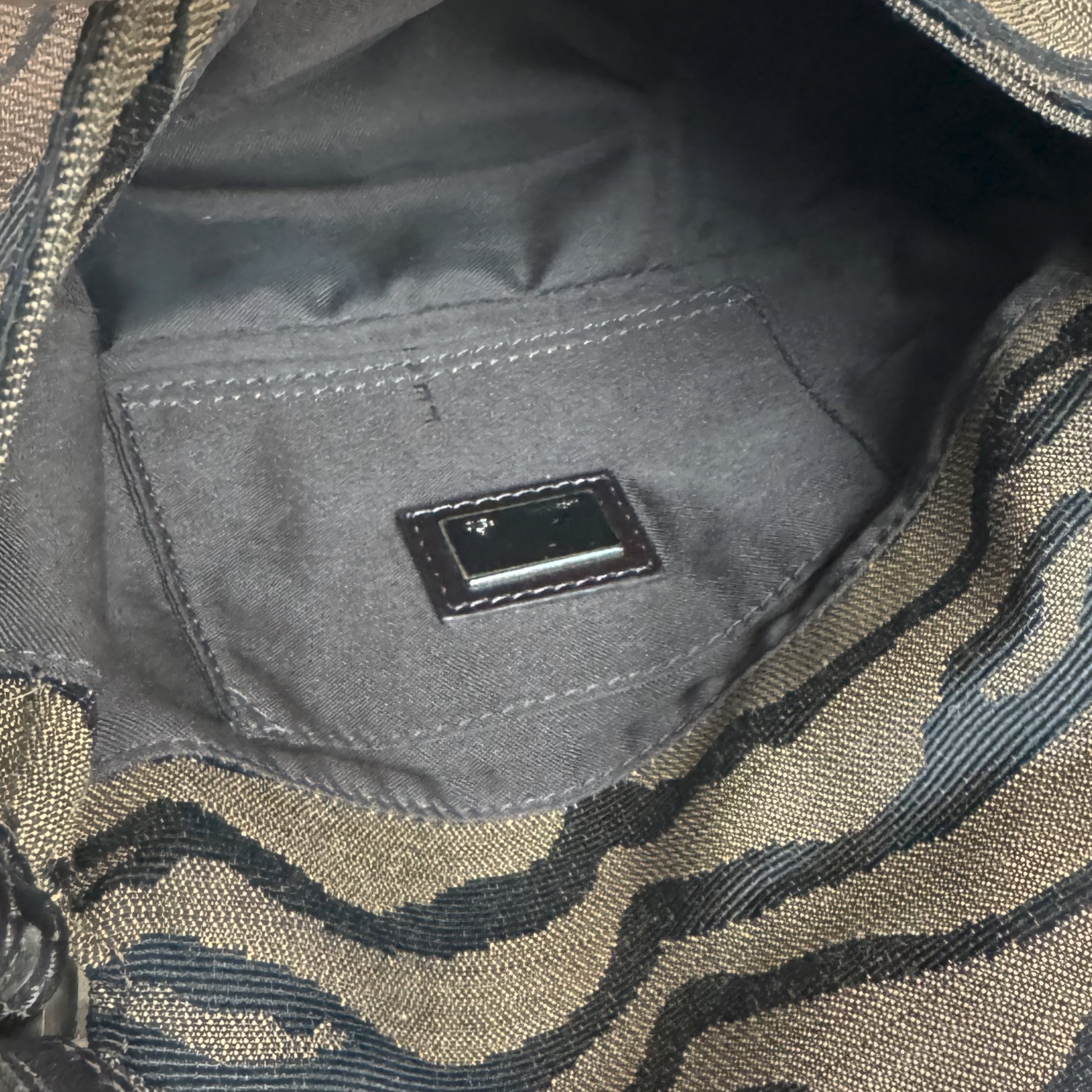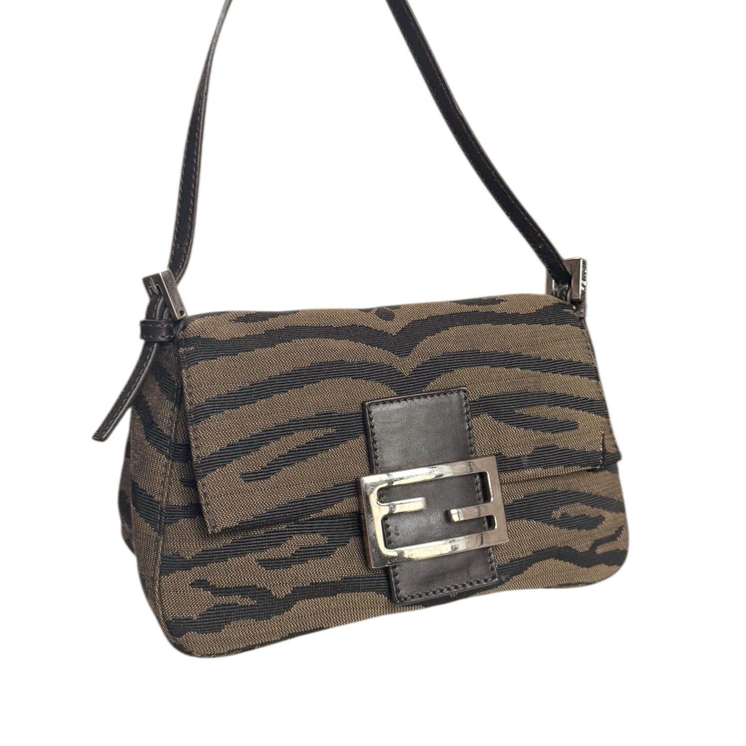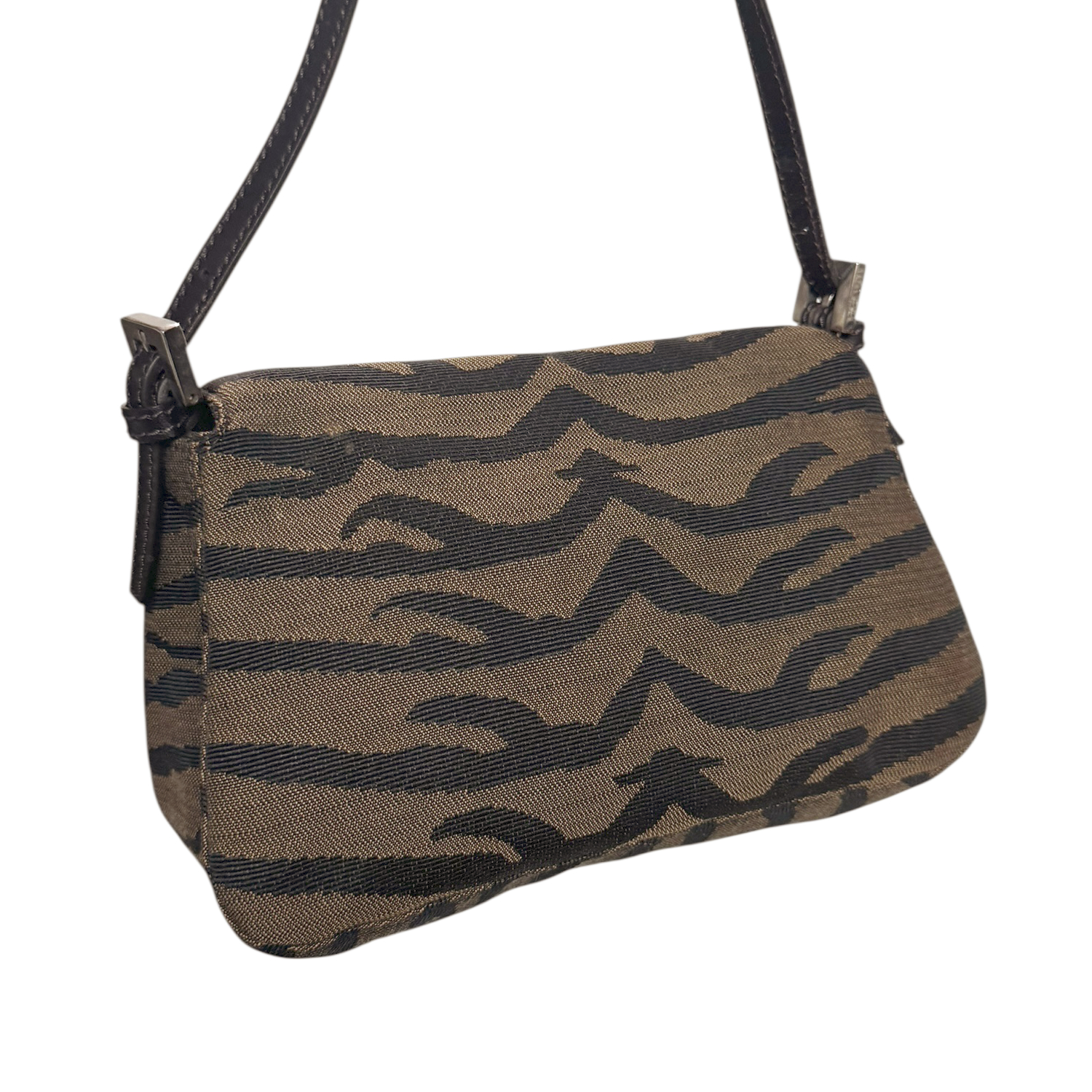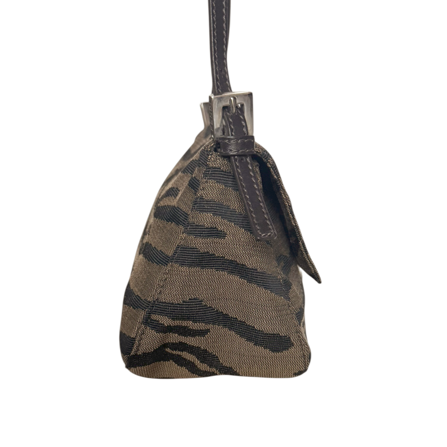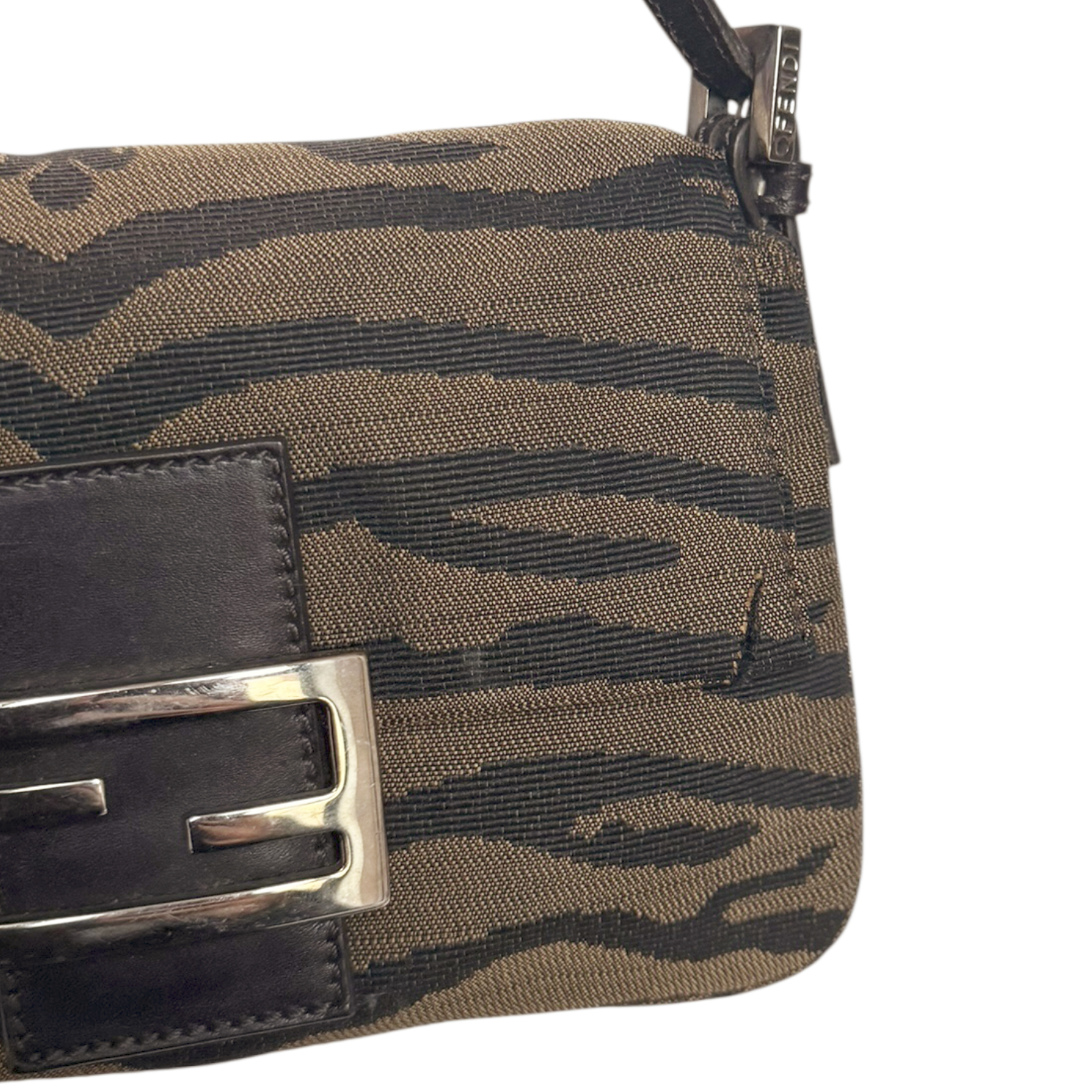 Fendi Zebra Print Canvas Mini Mamma Shoulder Baguette Bag in Brown / Silver