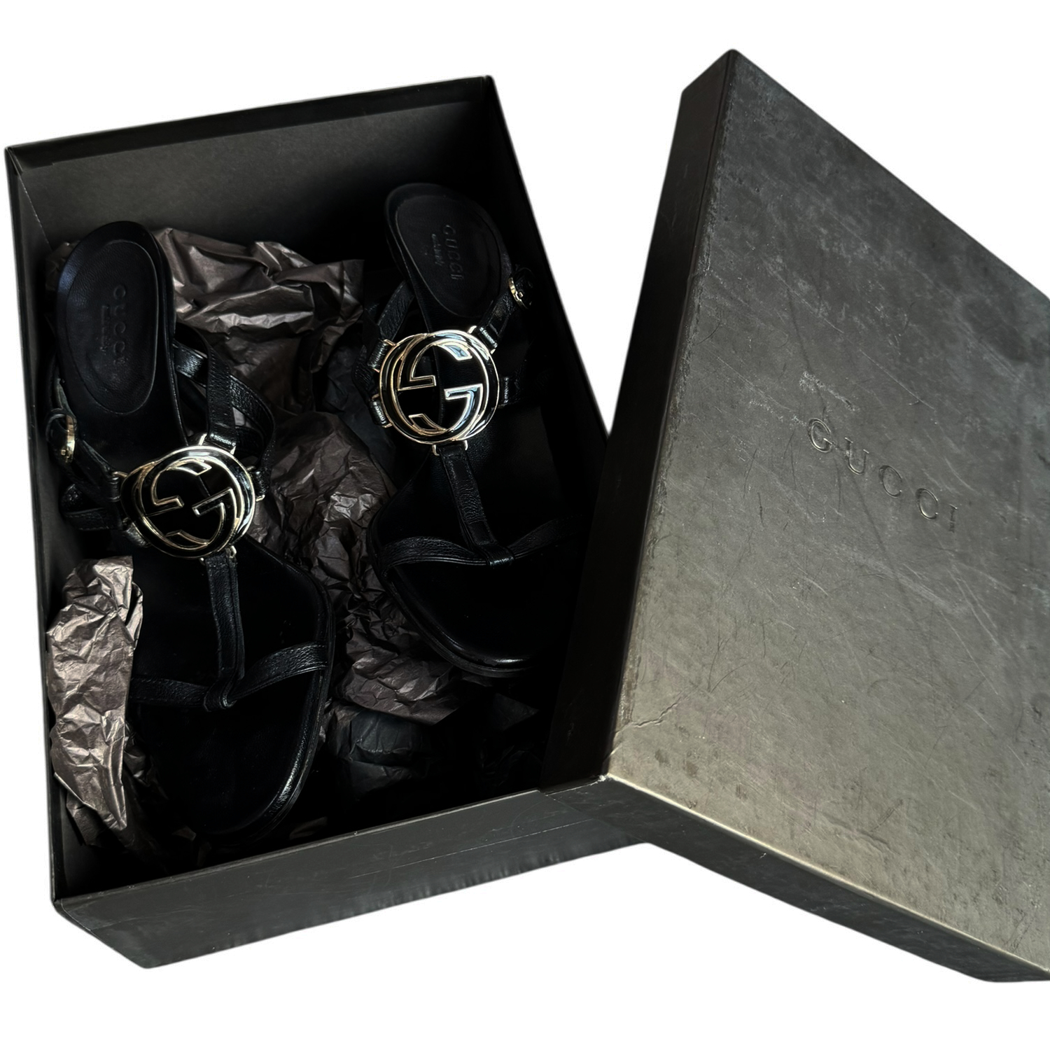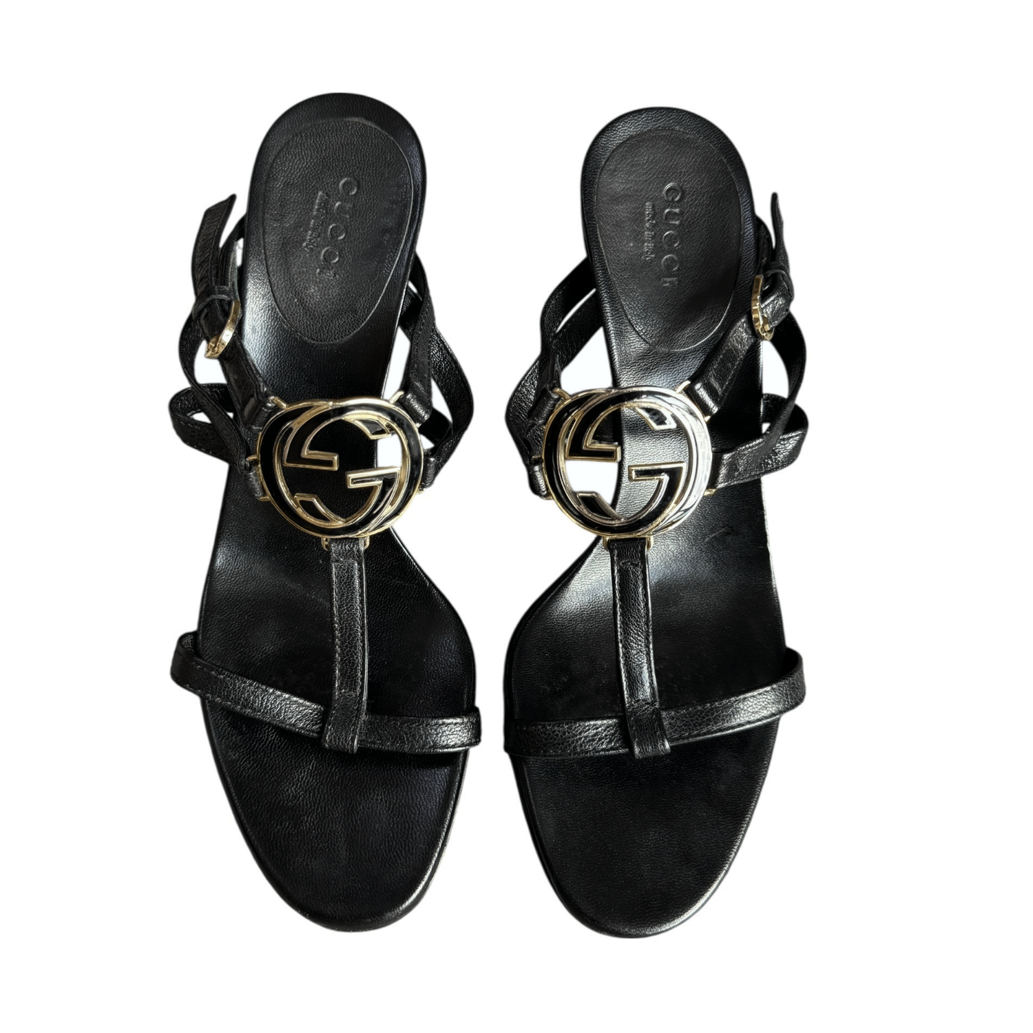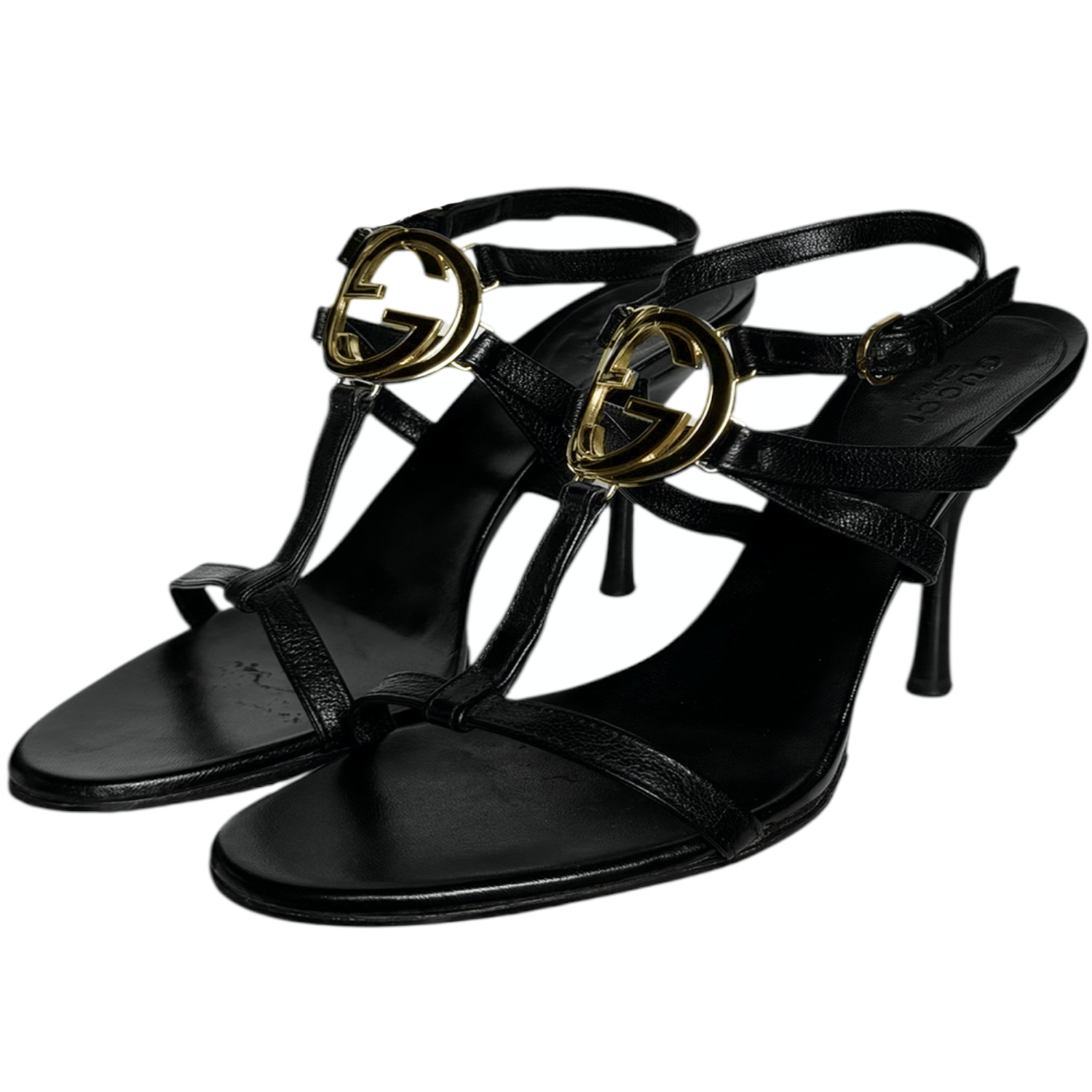 Gucci GG Logo Strappy Heels in Black / Gold UK 4