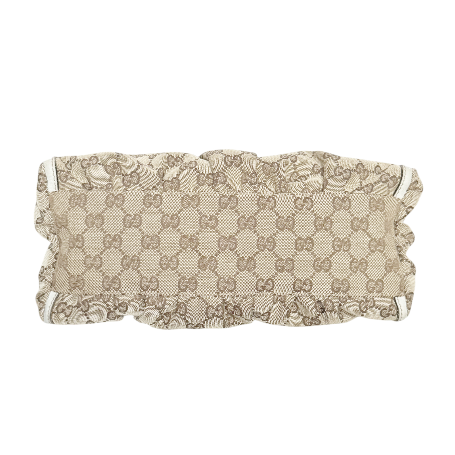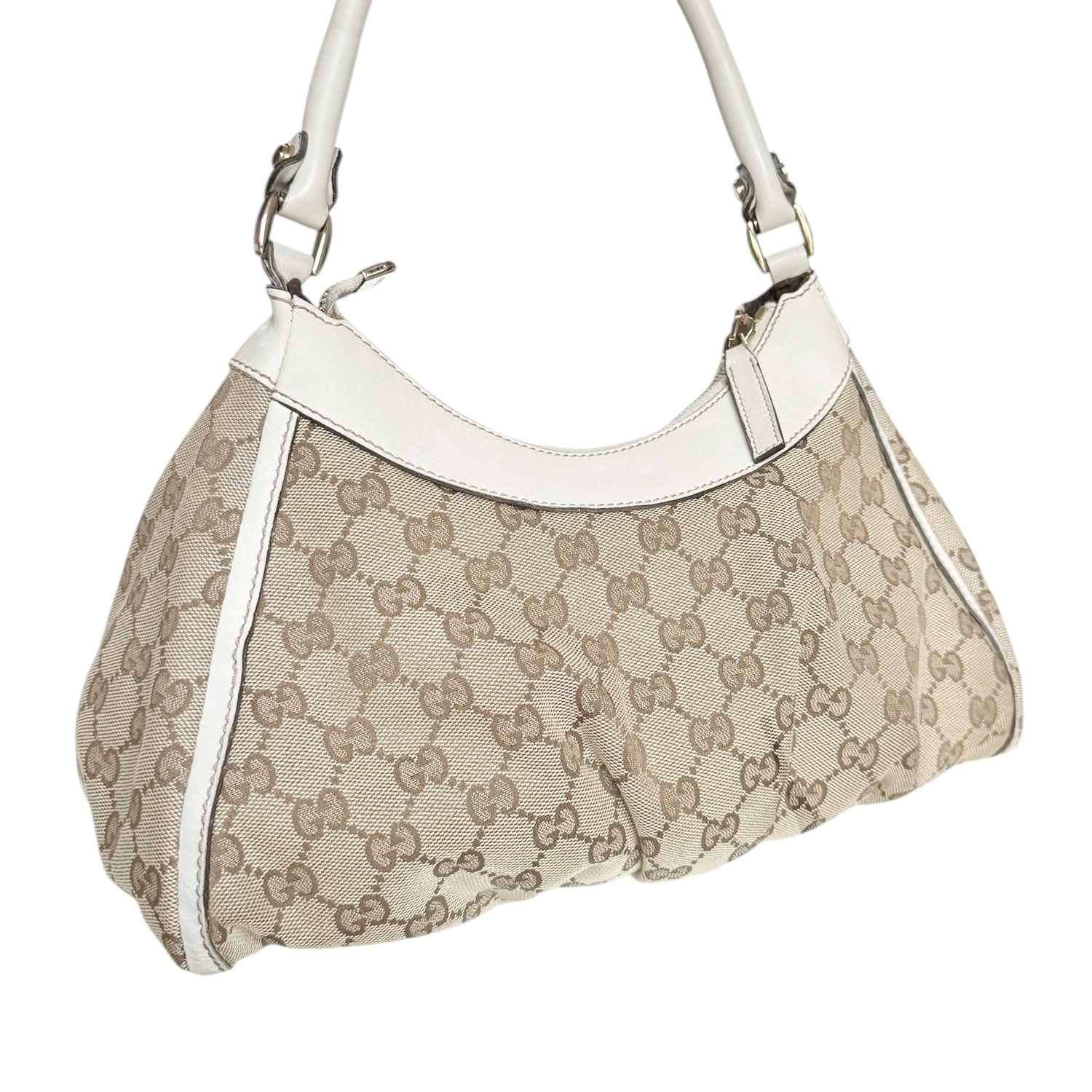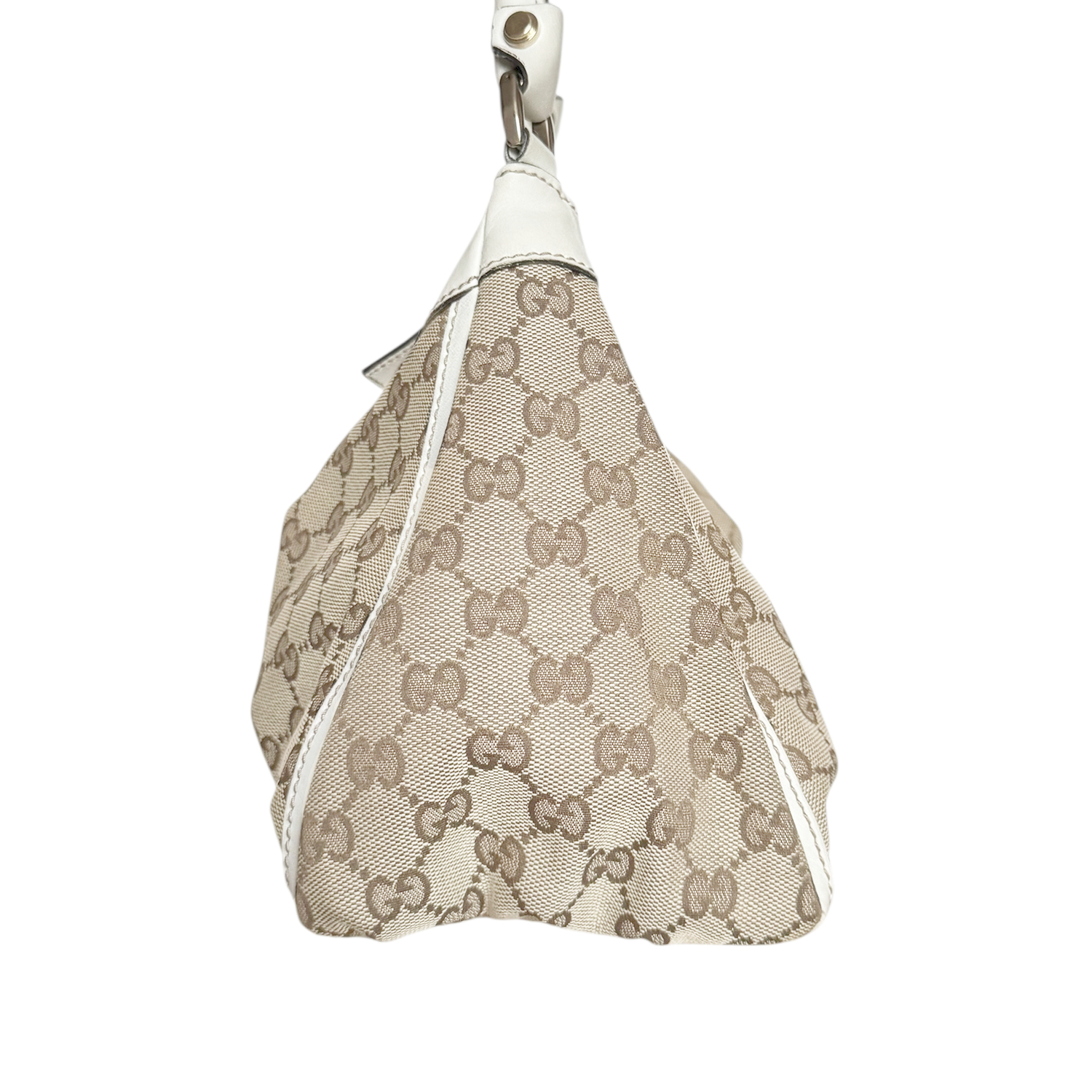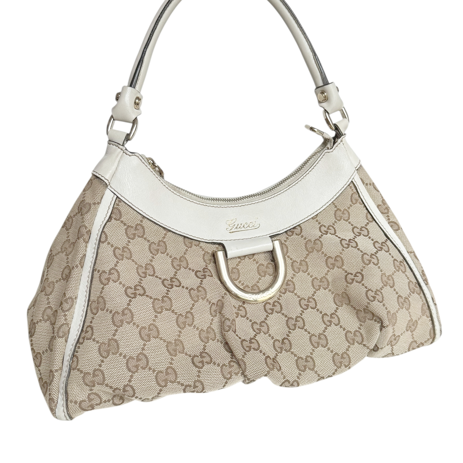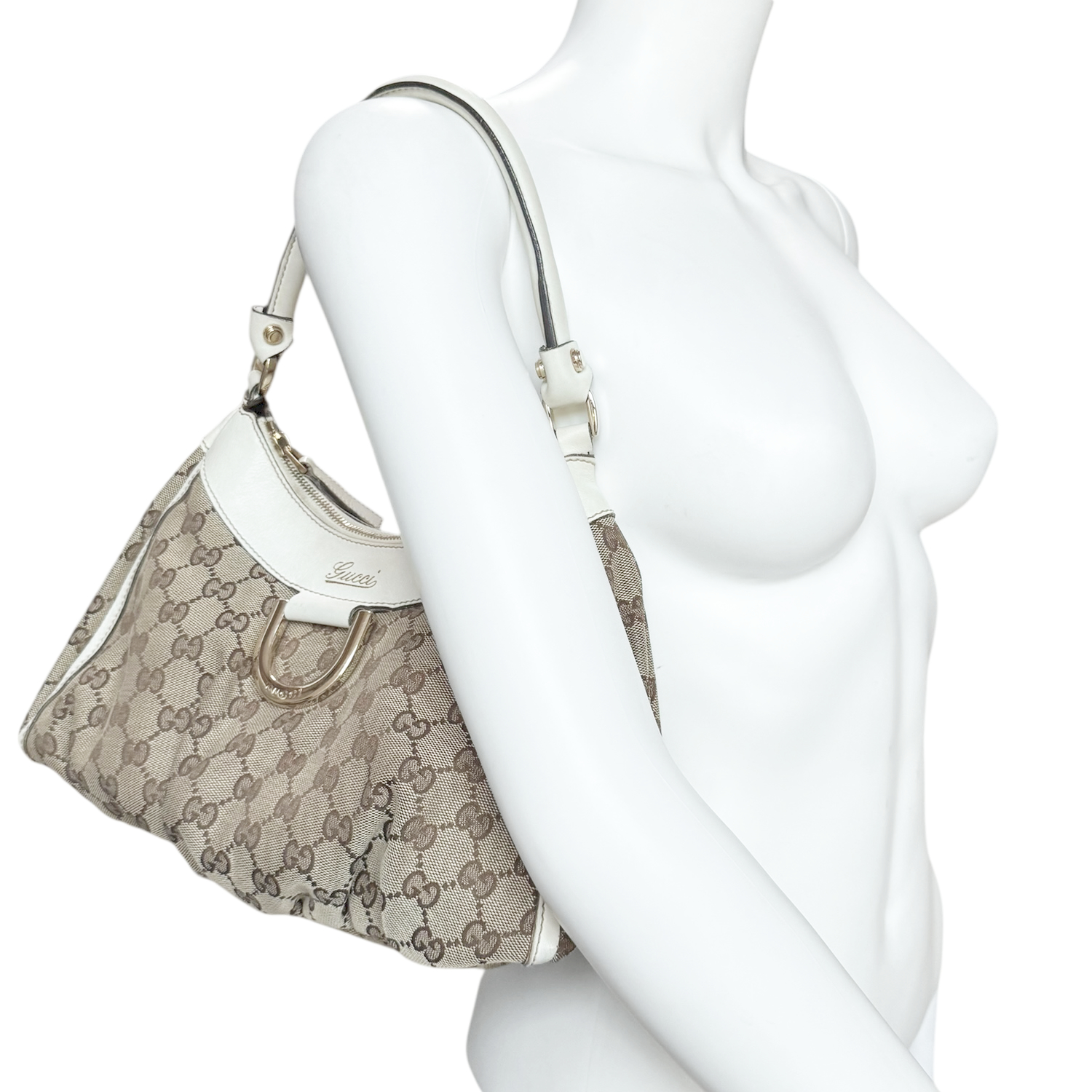 Gucci Monogram Canvas D Ring Hobo Shoulder Bag in Beige / White / Gold