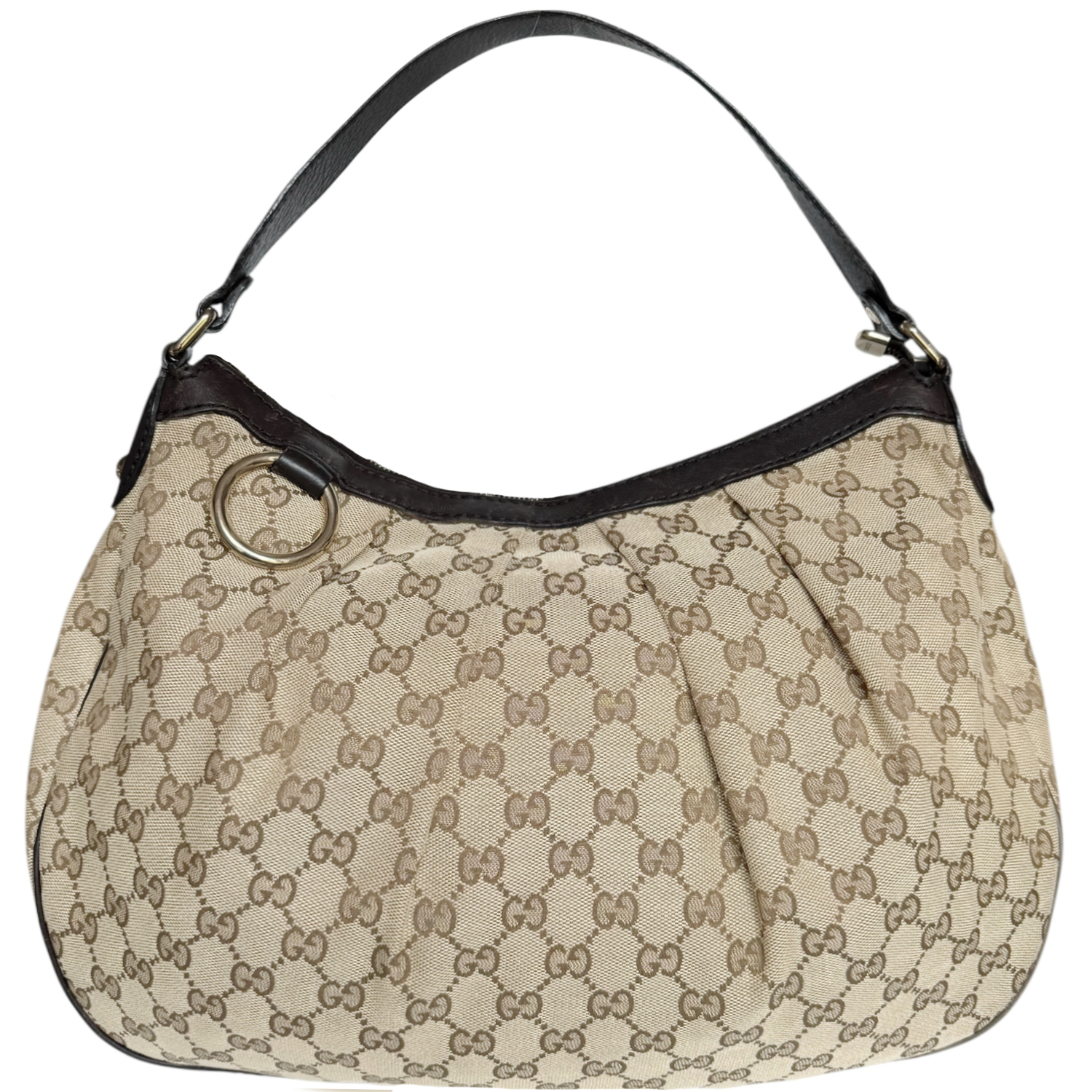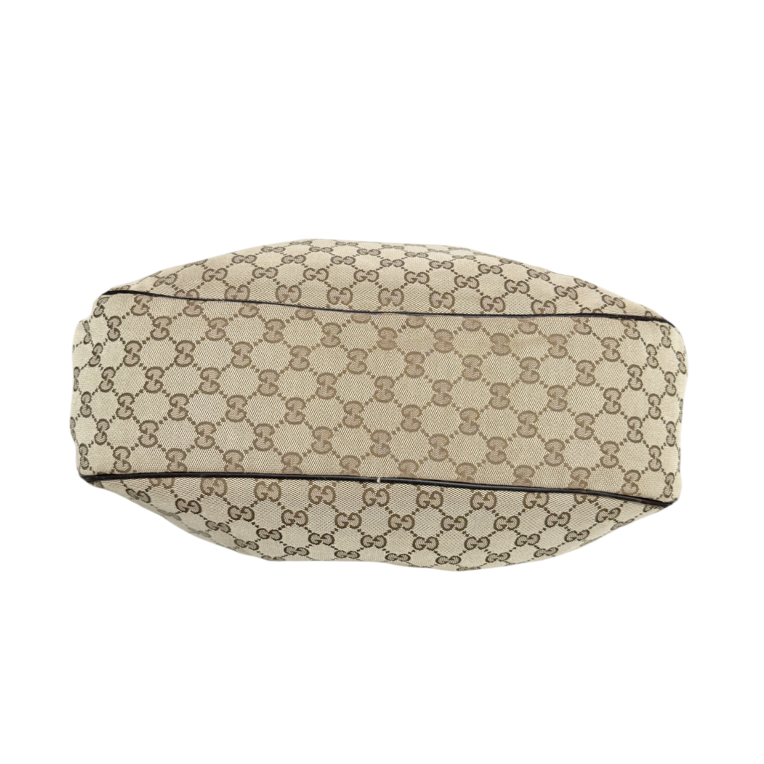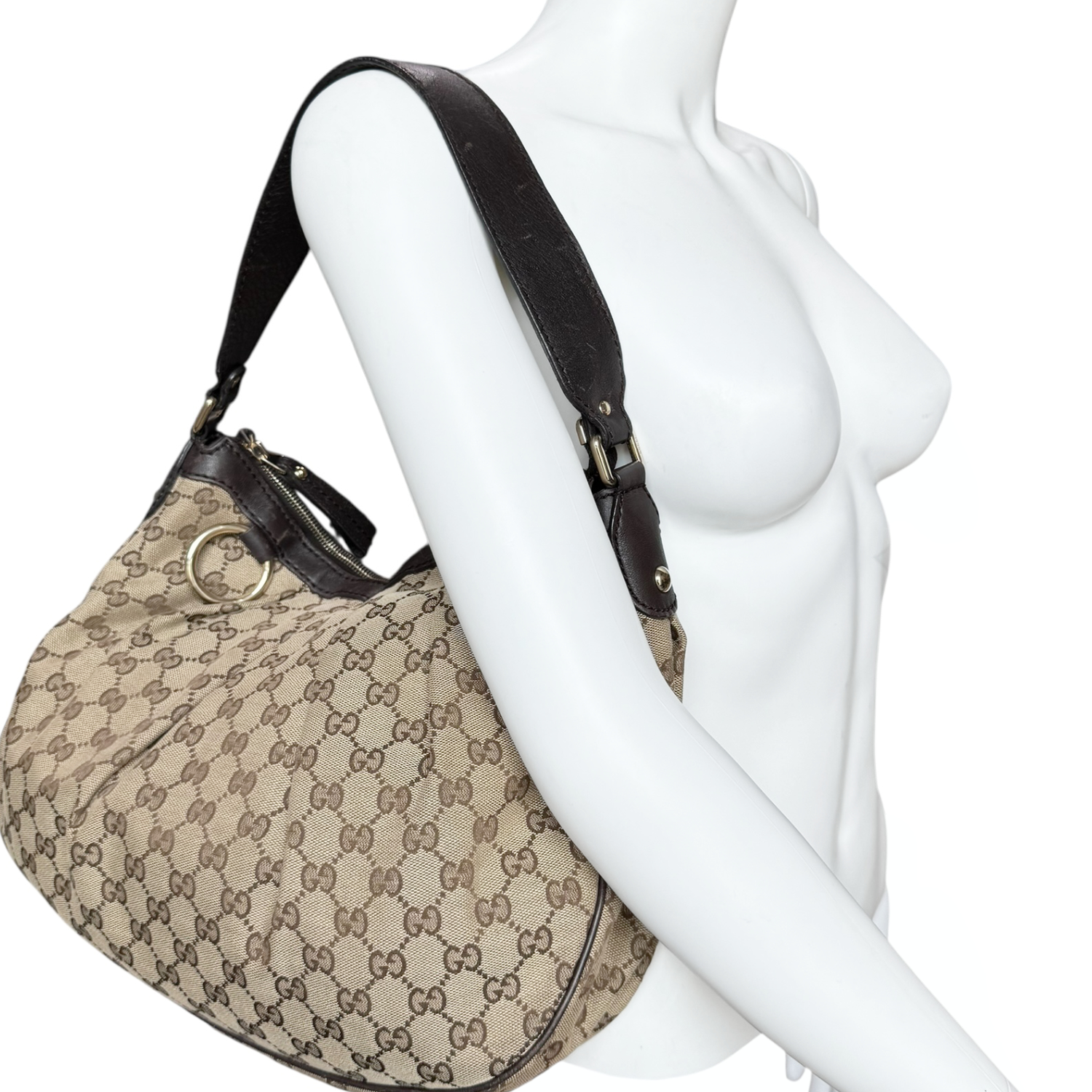 Gucci Monogram Canvas Hobo Shoulder Bag in Beige / Brown / Gold