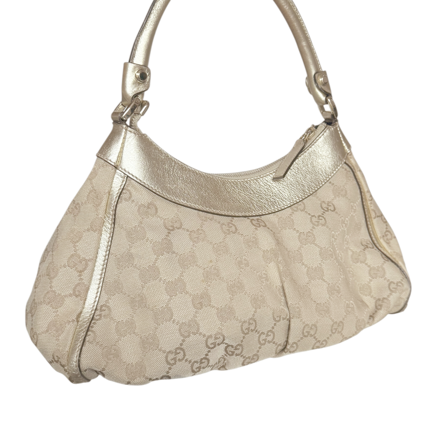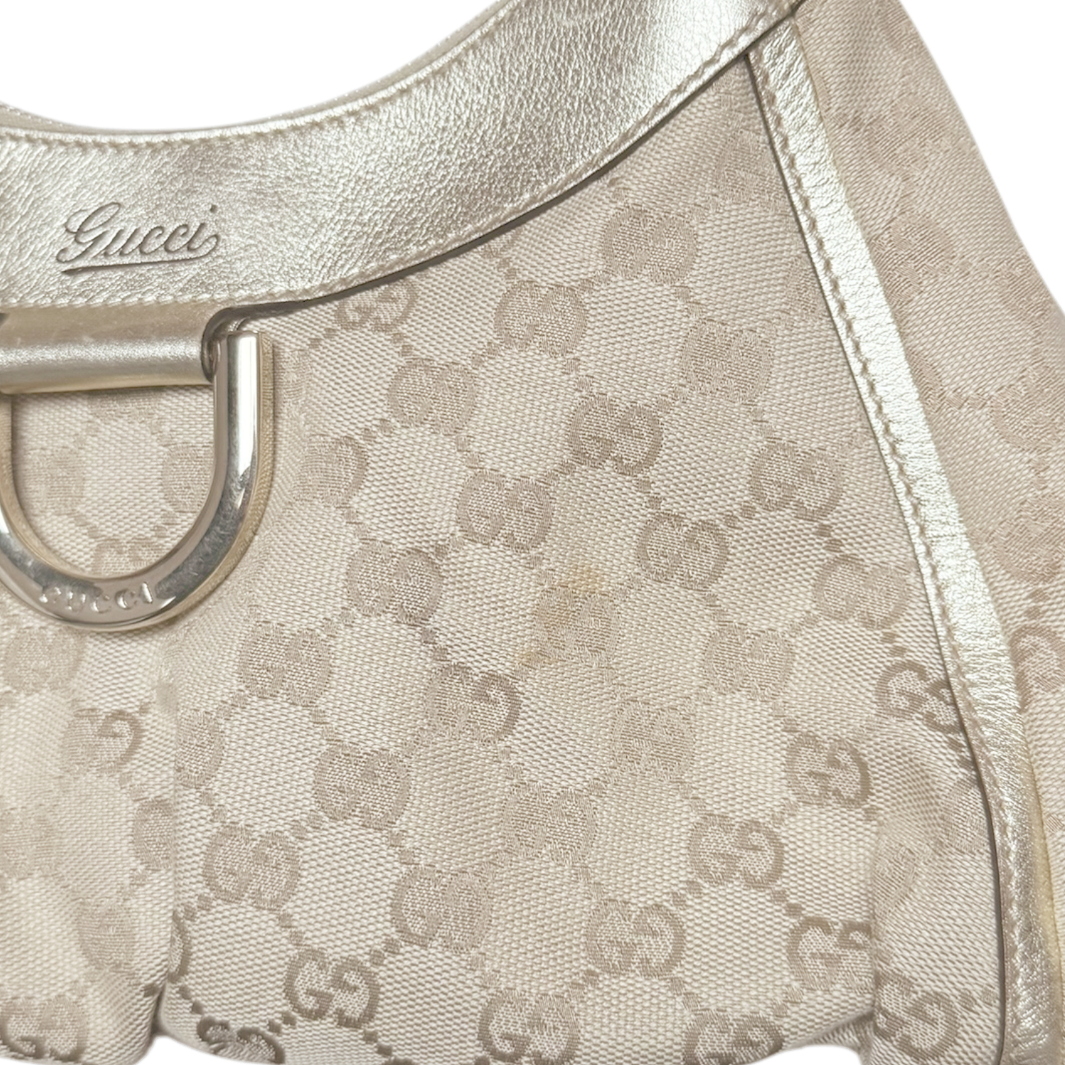 Gucci Monogram D Ring Hobo Shoulder Bag in Beige / Gold