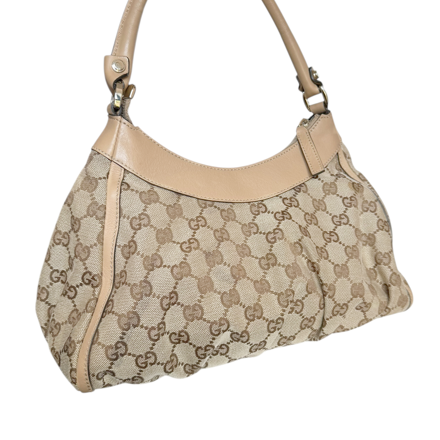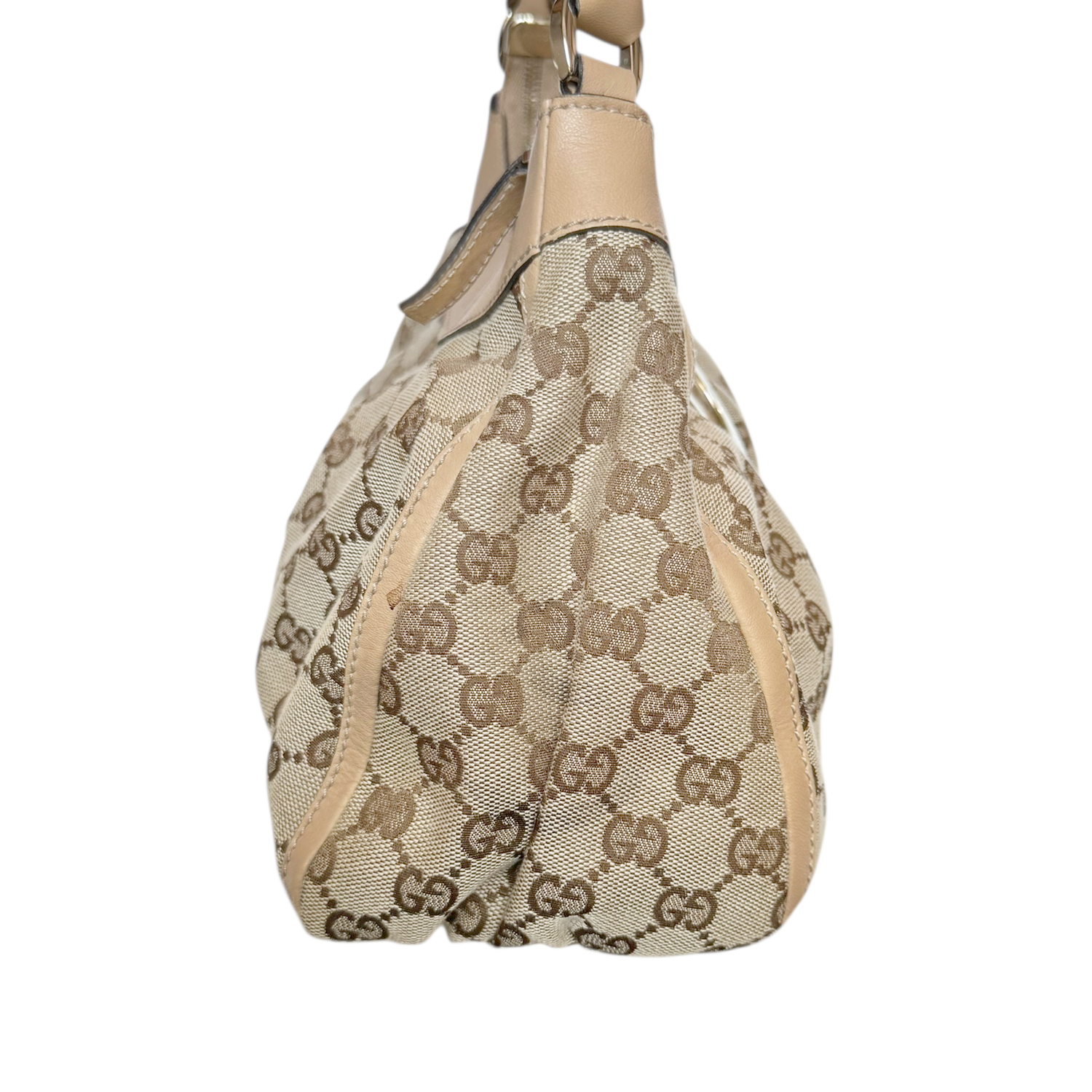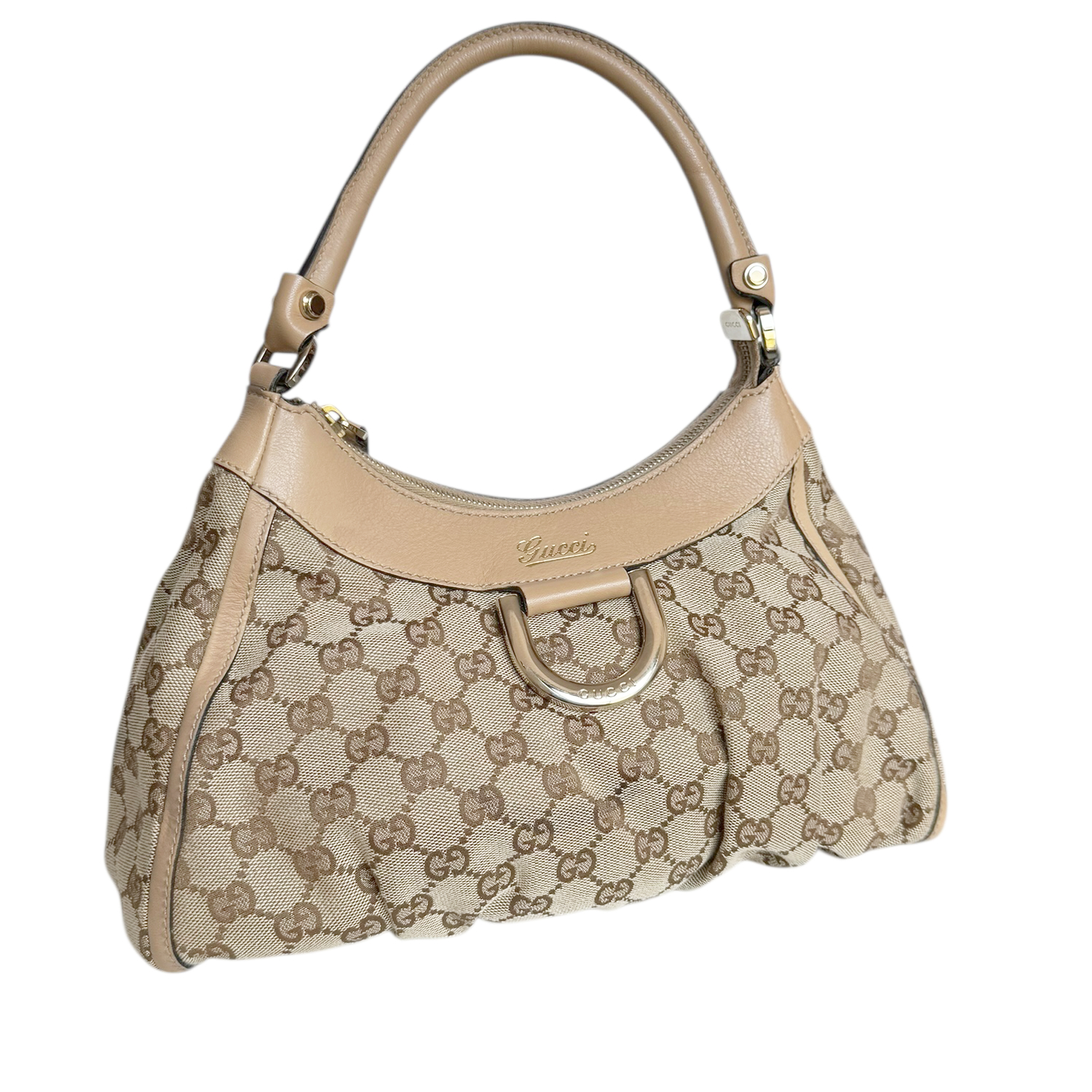 Gucci Monogram D Ring Hobo Shoulder Bag in Beige / Gold