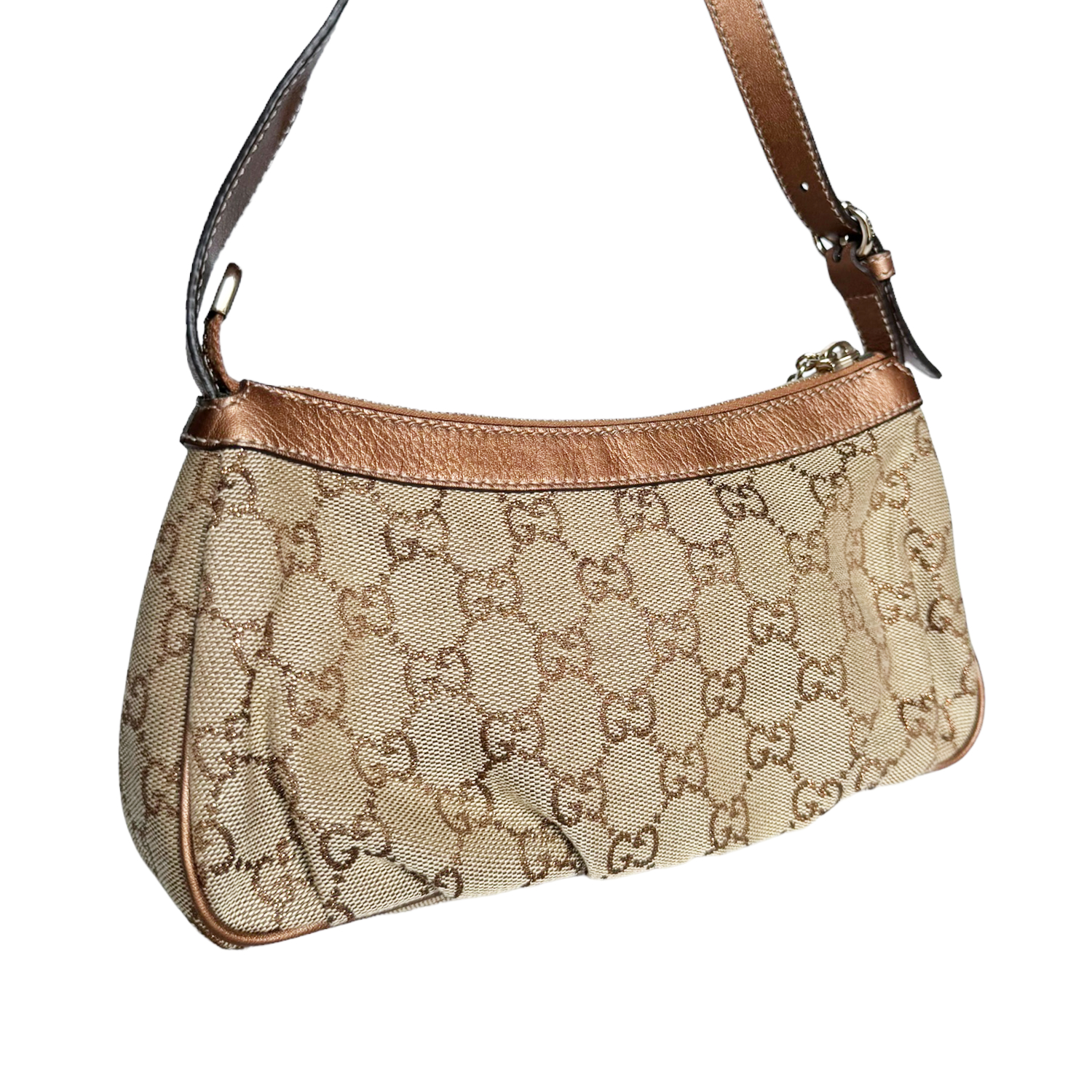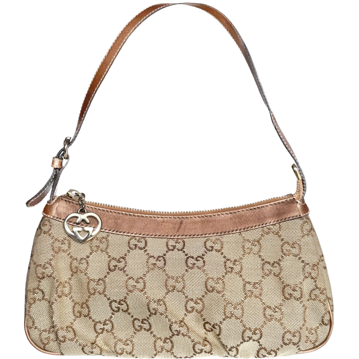 Gucci Monogram Heart Charm Mini Shoulder Bag in Beige / Metallic Bronze / Gold