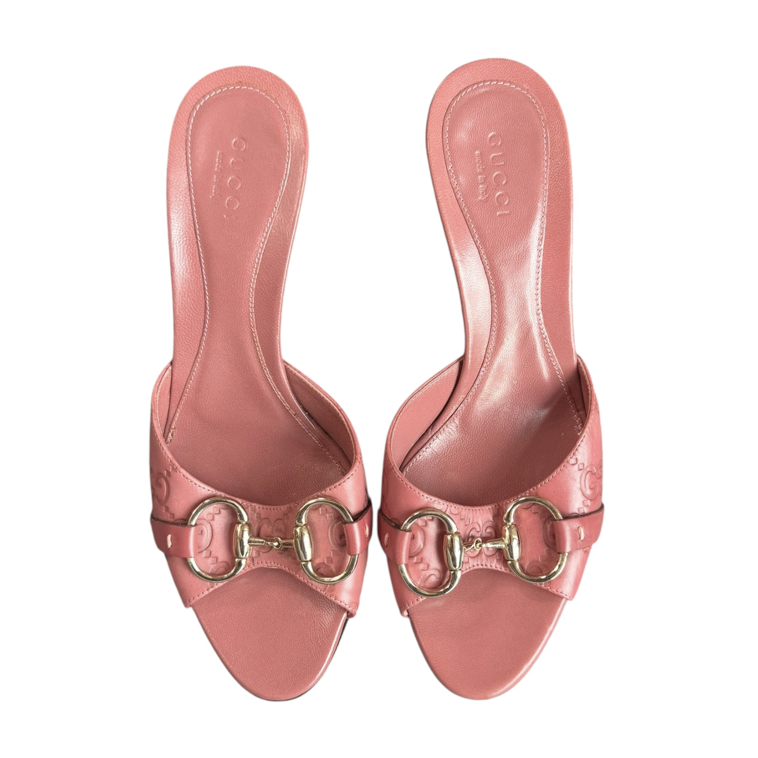 Gucci Monogram Horsebit Leather Heels in Pink / Gold UK 3