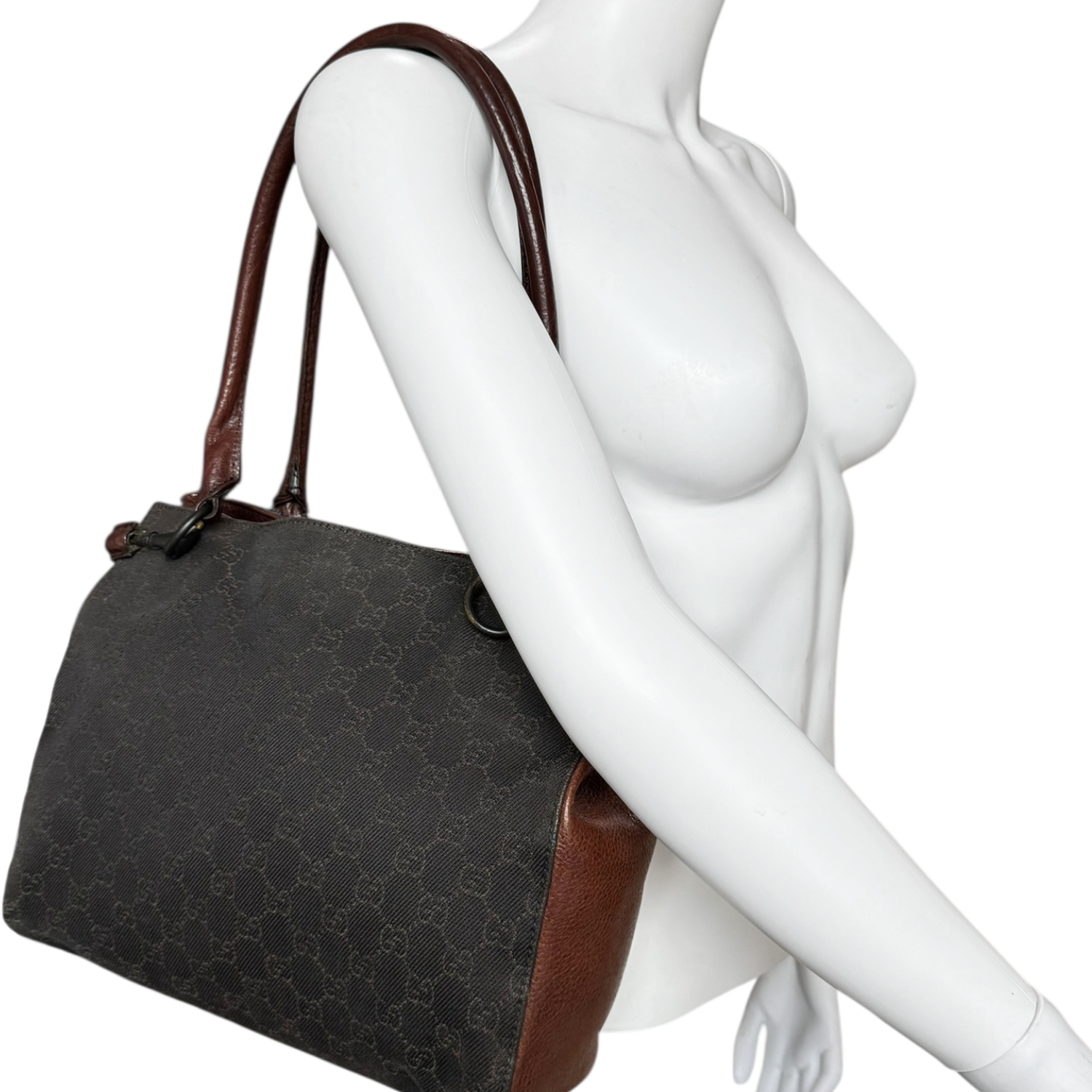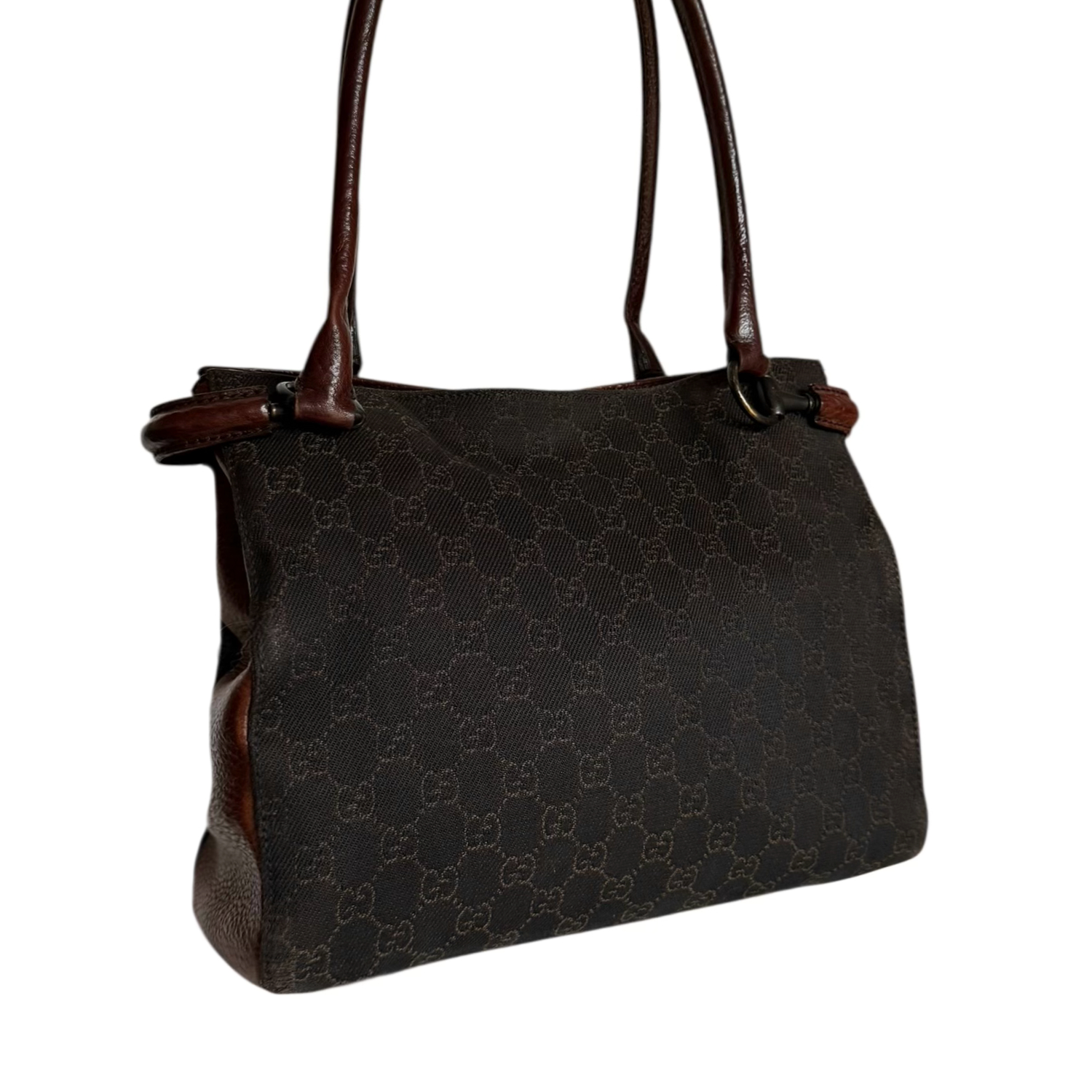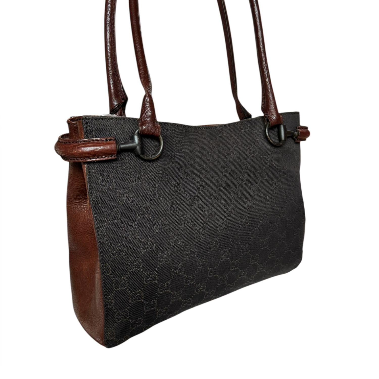 Gucci Monogram Horsebit Tote Shoulder Bag in Brown