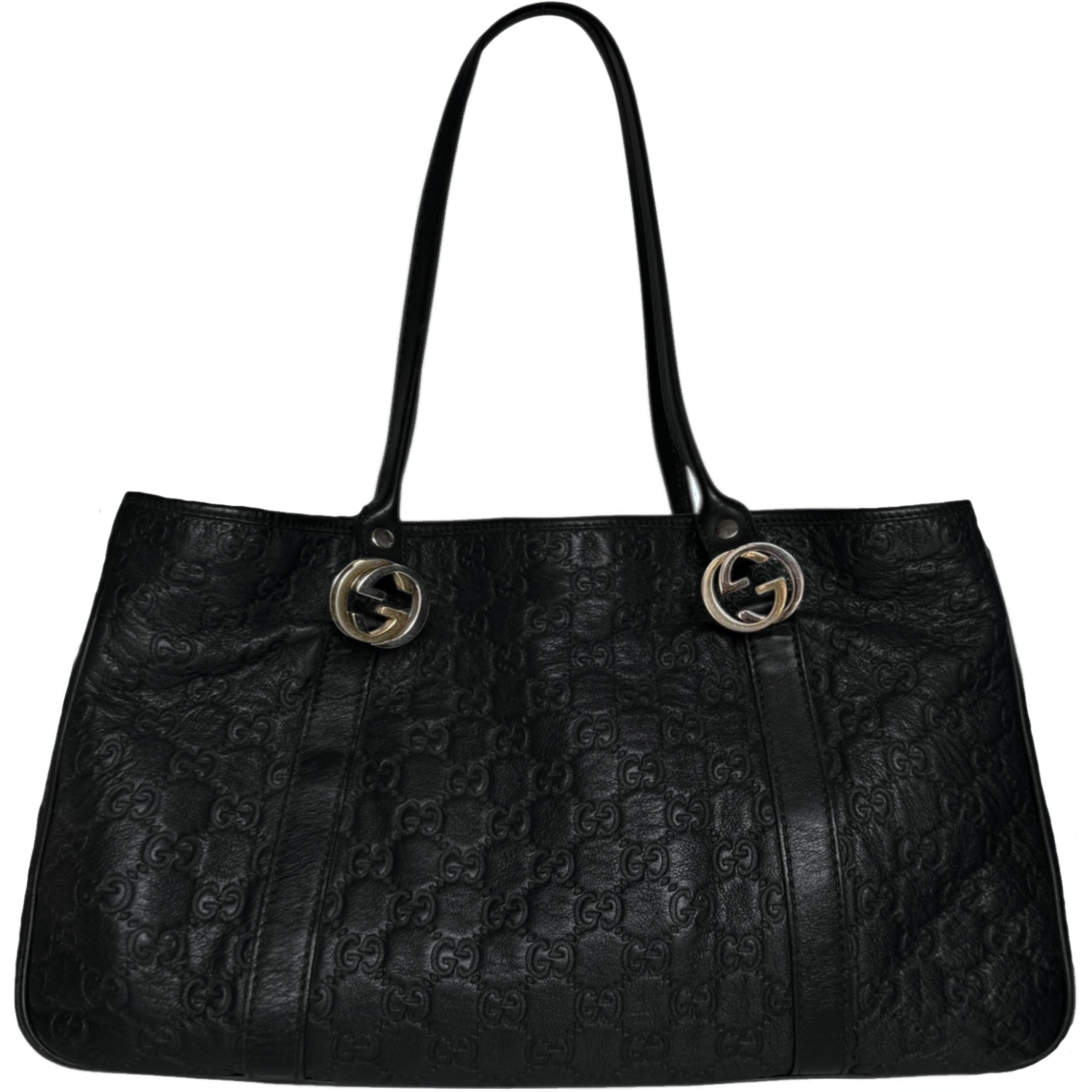 Gucci Monogram Leather Logo Shoulder Bag in Black / Silver / Gold