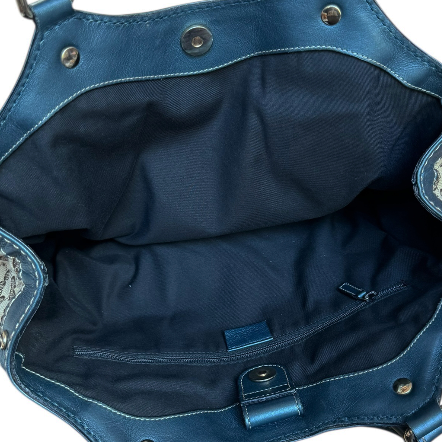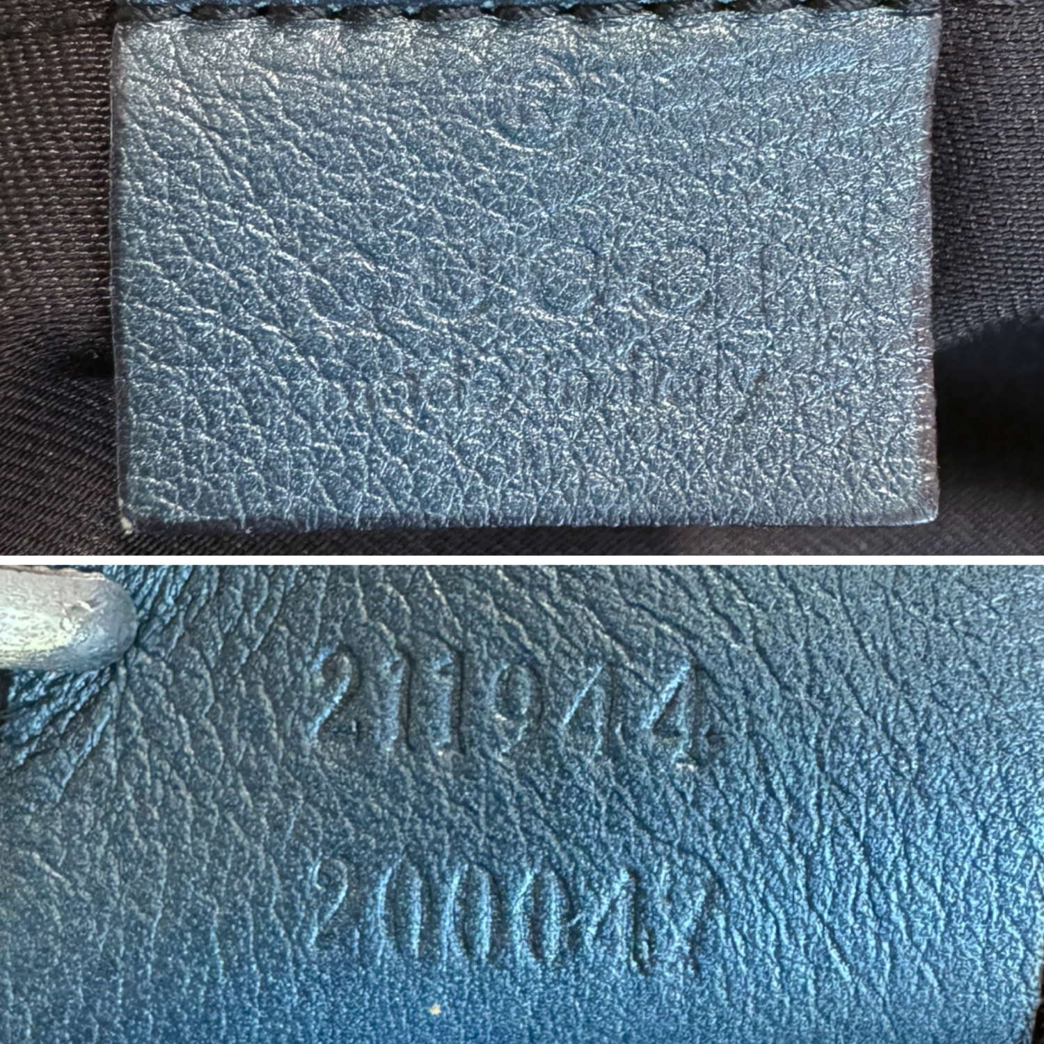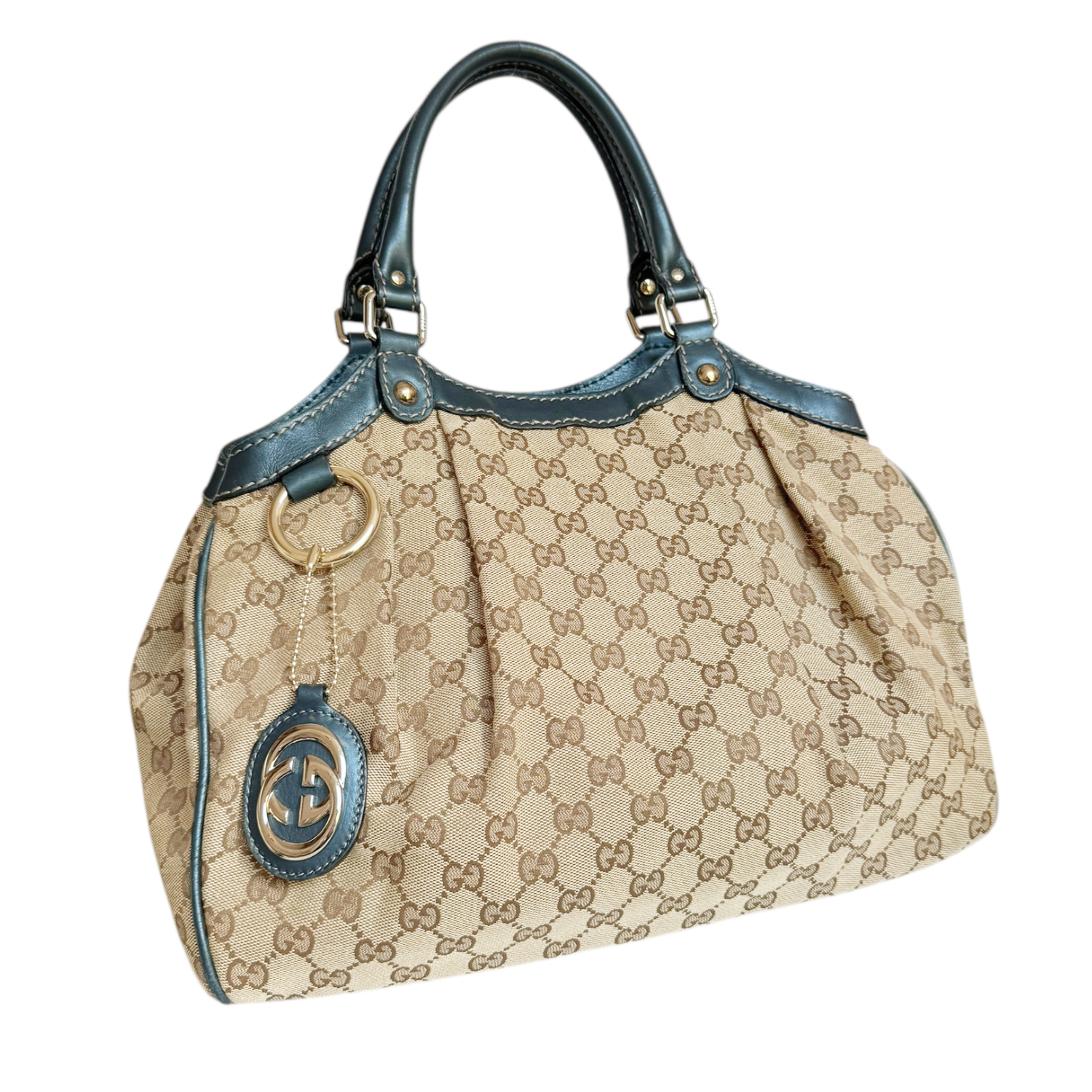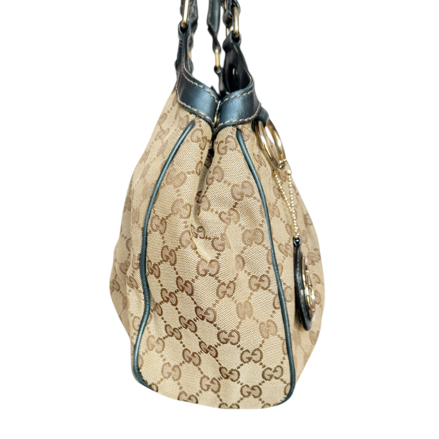Gucci Monogram Sukey Hobo Shoulder Bag in Beige / Metallic Blue / Gold
