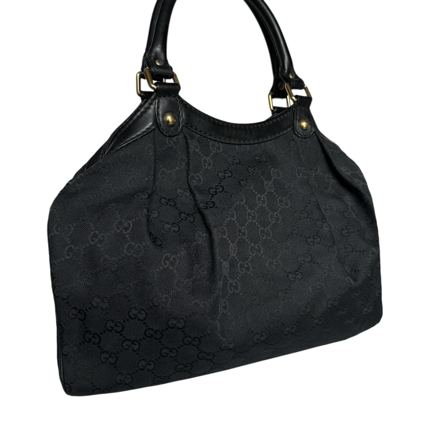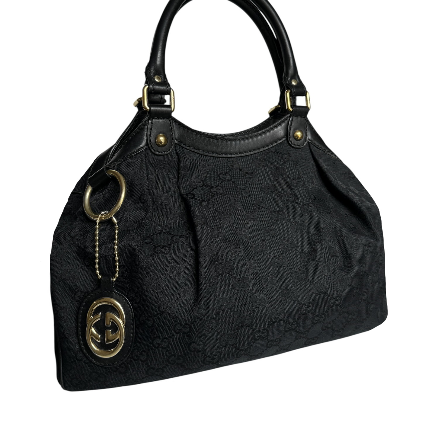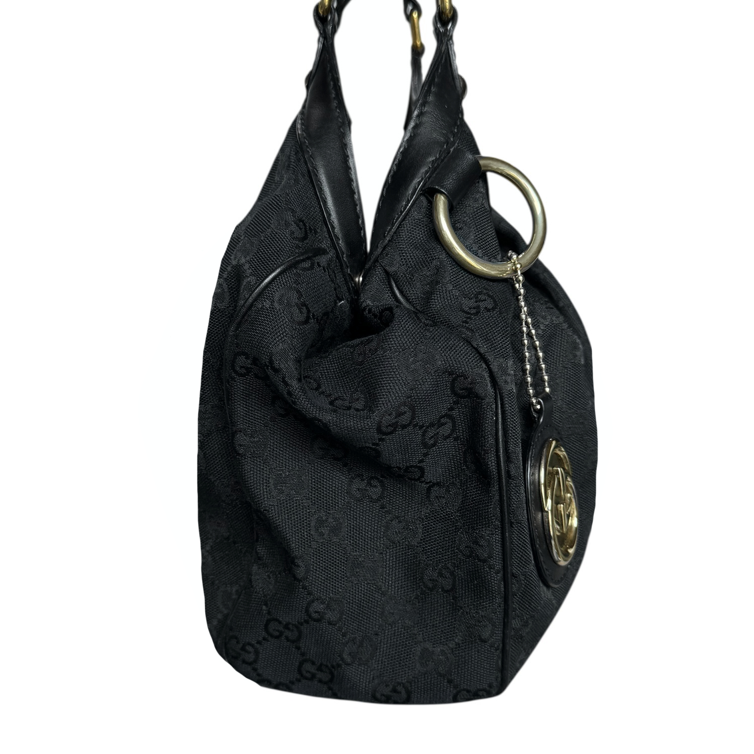 Gucci Monogram Sukey Hobo Shoulder Bag in Black / Gold