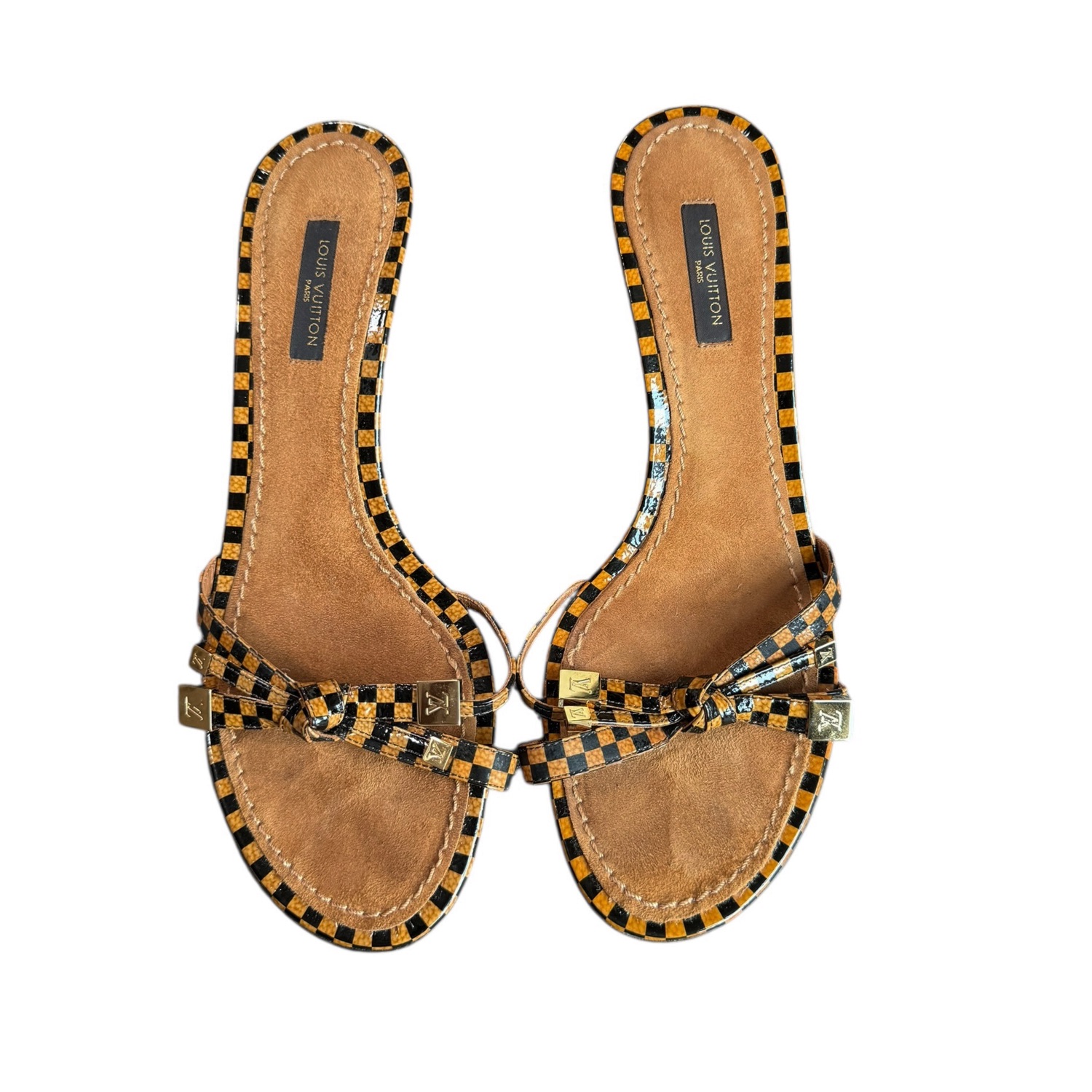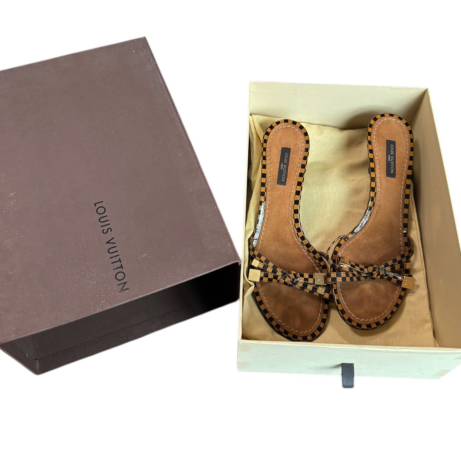 Louis Vuitton Checkered Bow Logo Heels in Brown / Gold UK 3.5