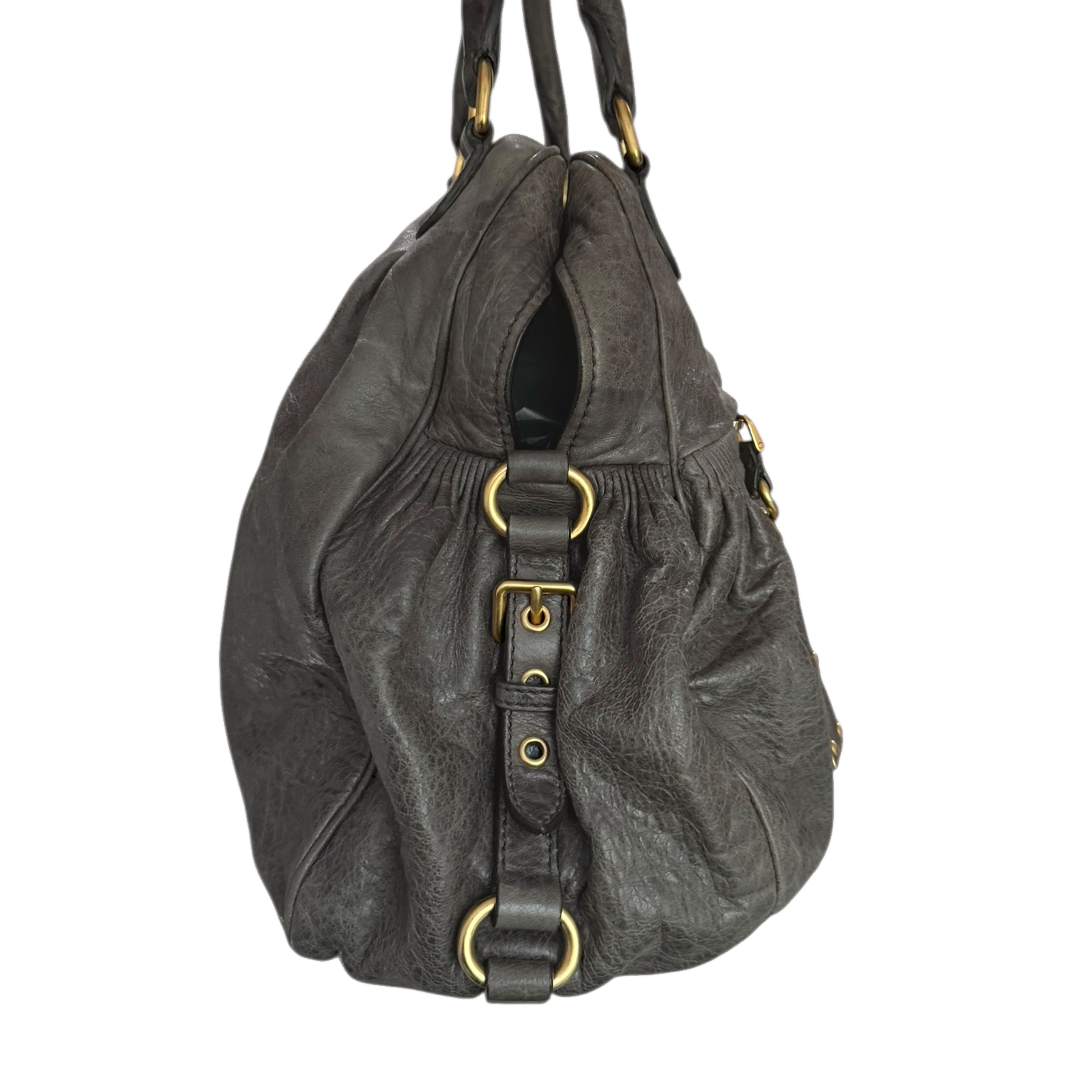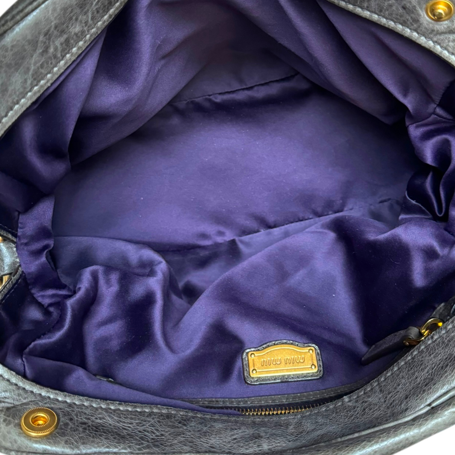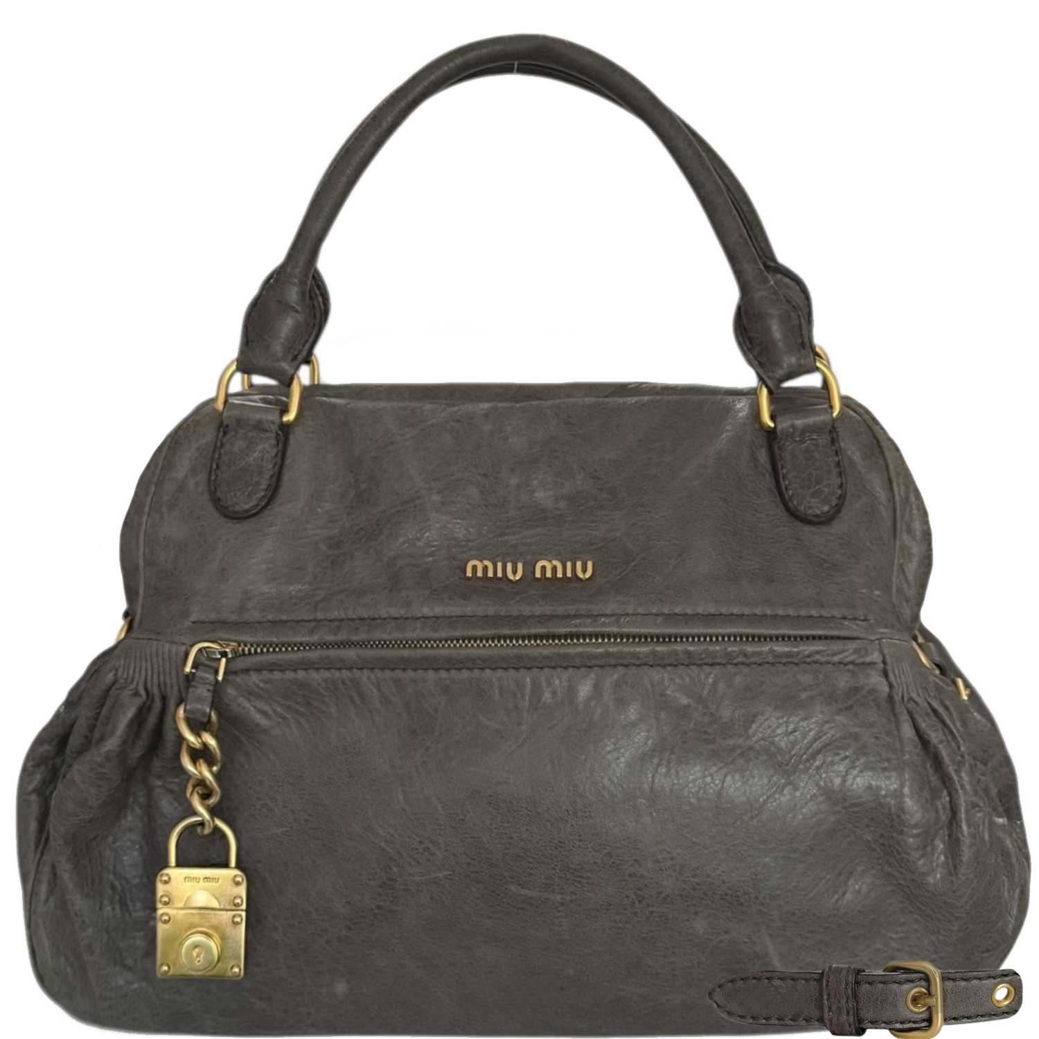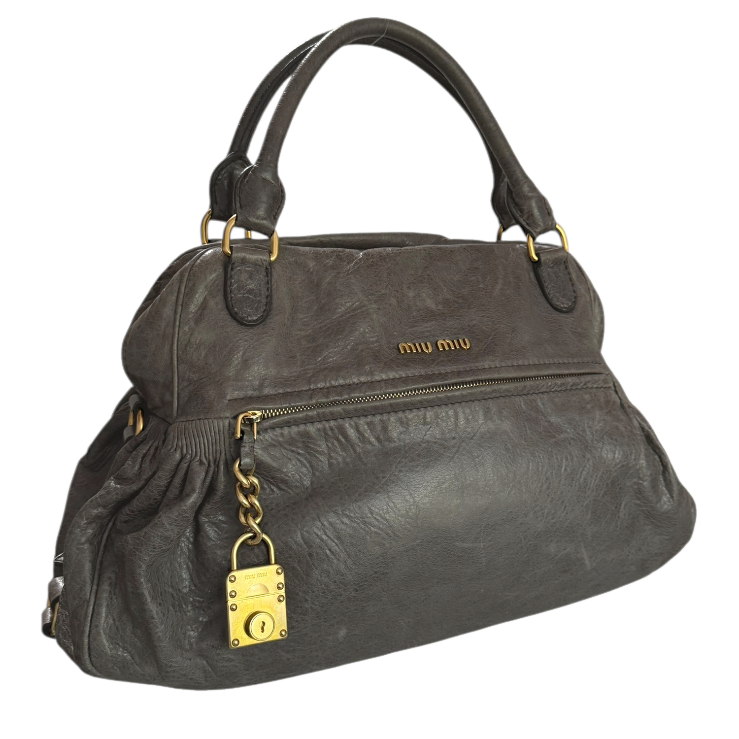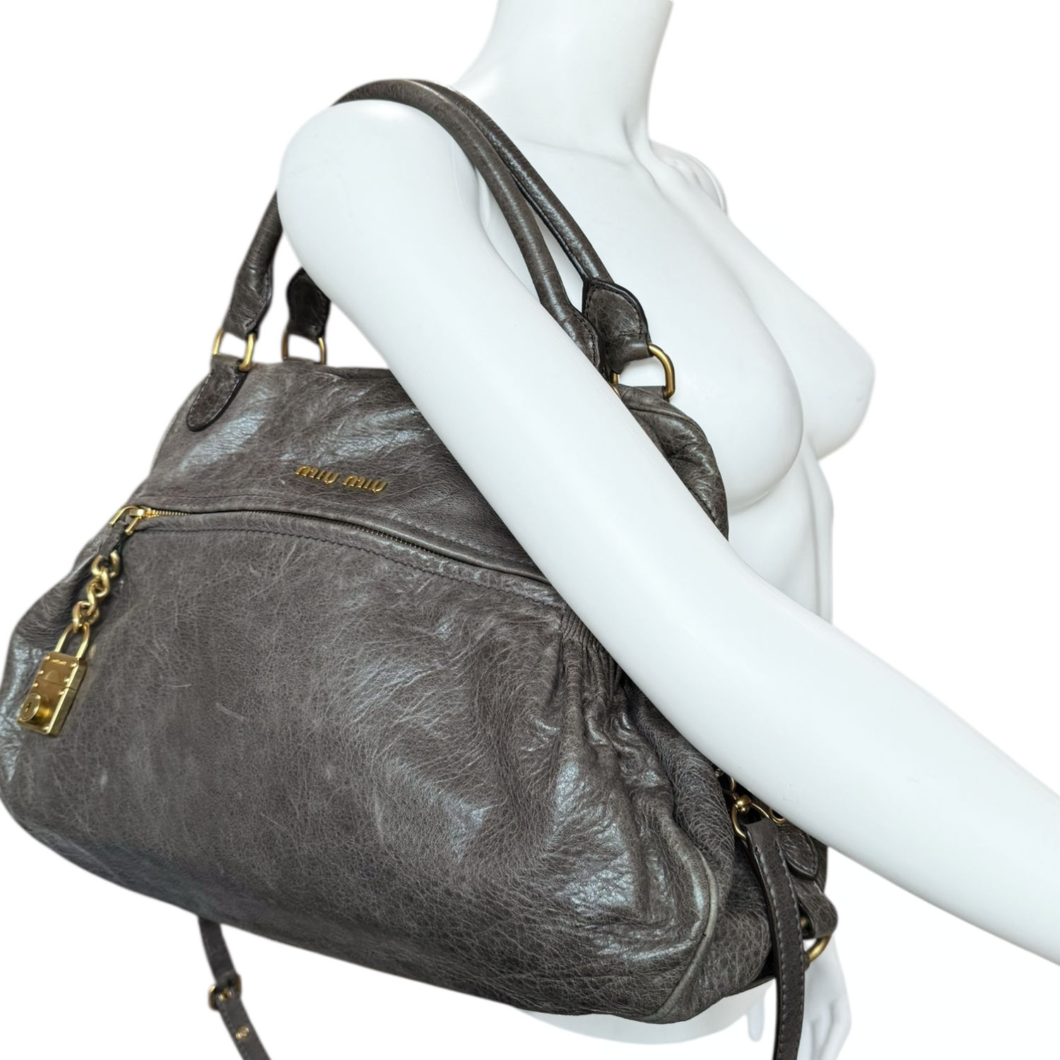 Miu Miu Charm 2 Way Hobo Shoulder Bag in Grey / Gold