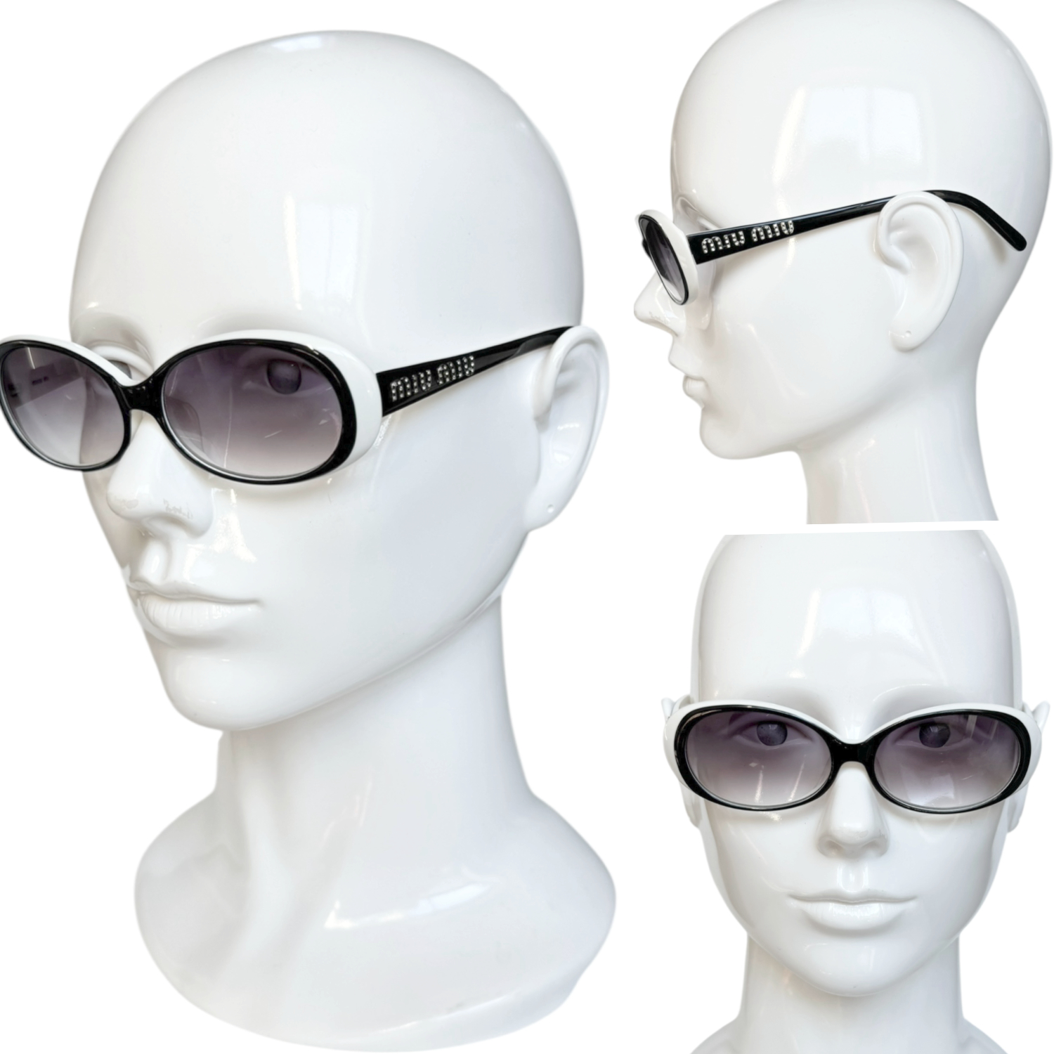 Miu Miu Diamante Logo Sunglasses in Black / White