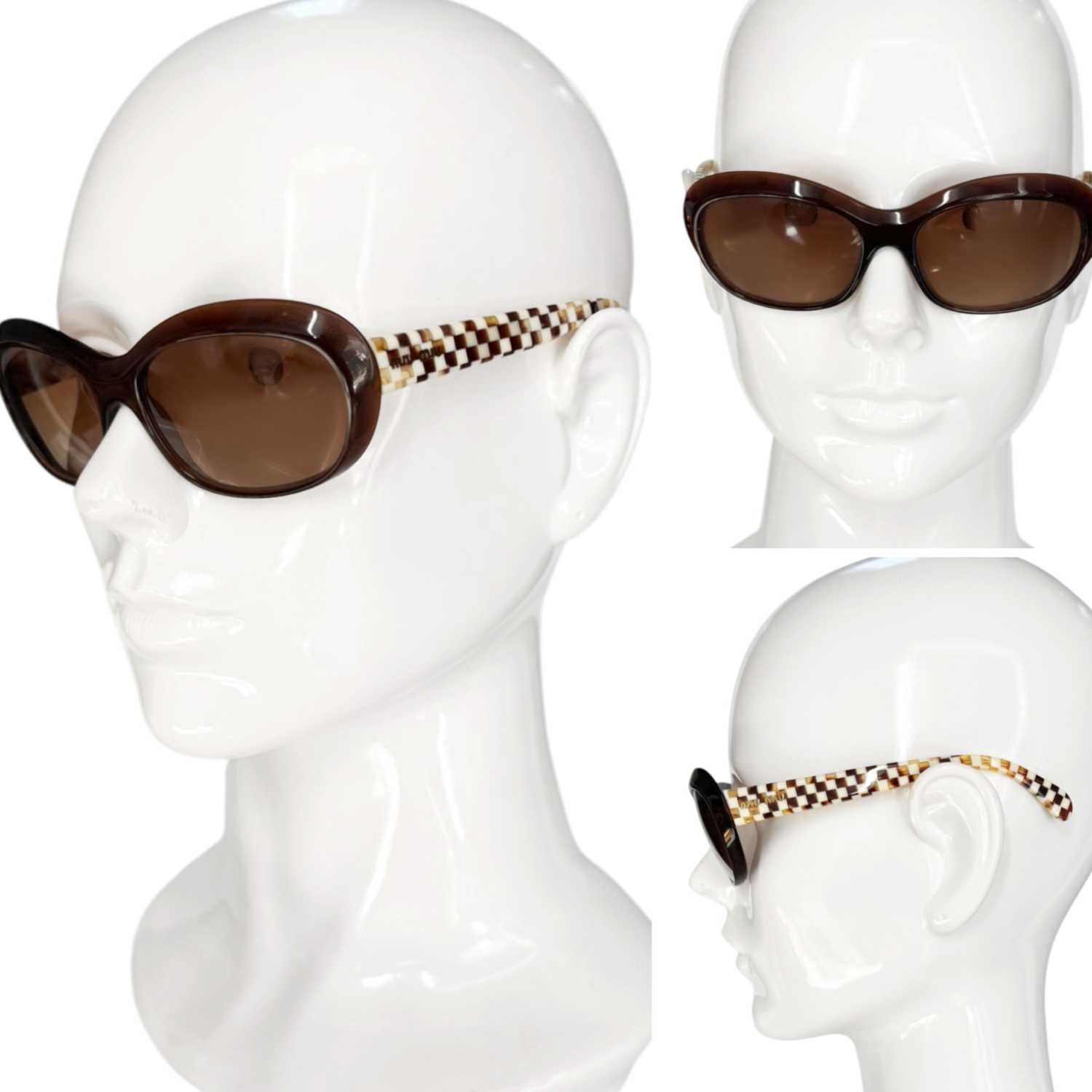 Miu Miu Logo Checkered Sunglasses in Brown / Beige / Gold