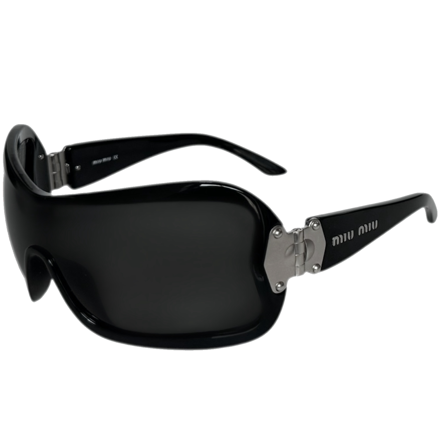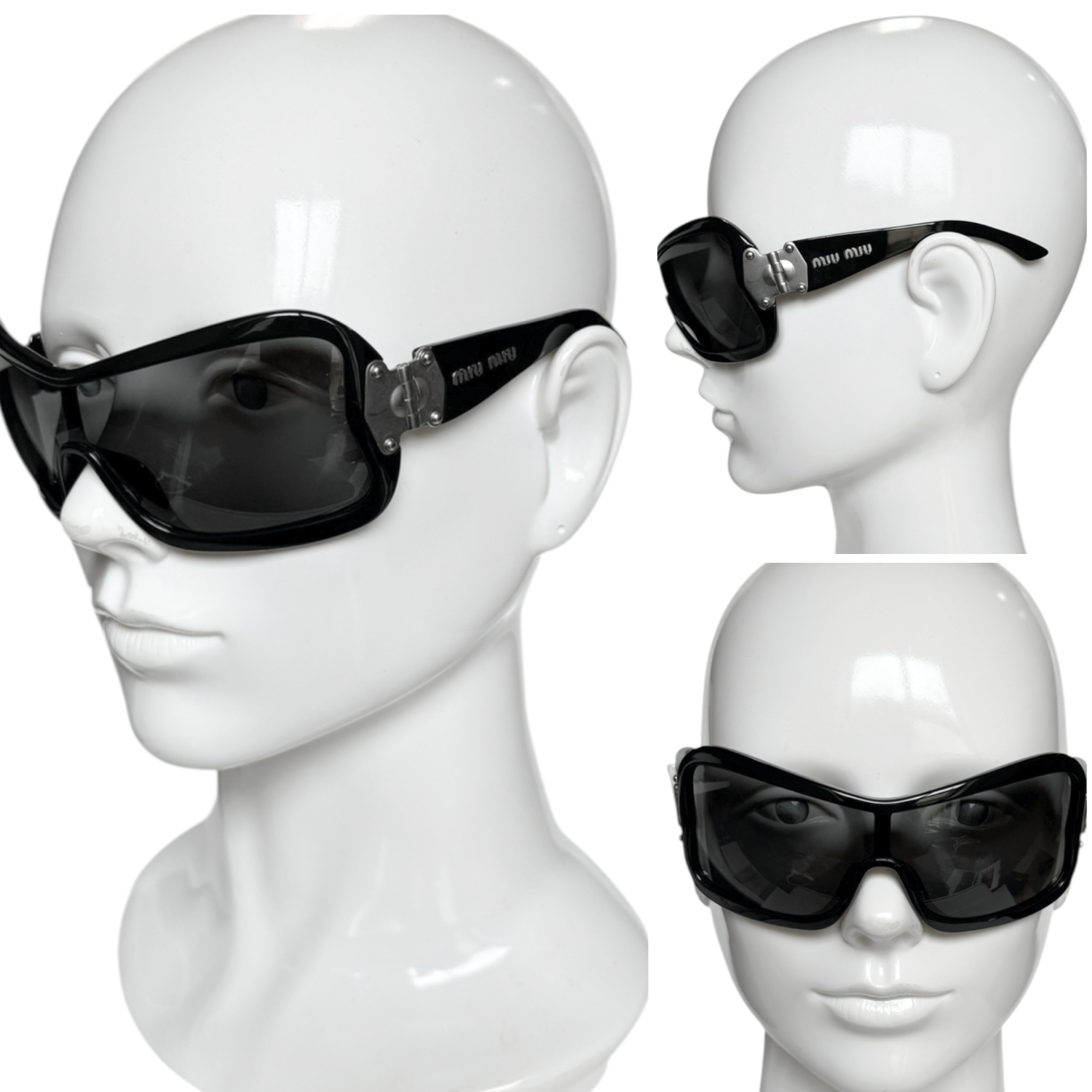 Miu Miu Logo Oversized Shield Sunglasses in Black / Silver