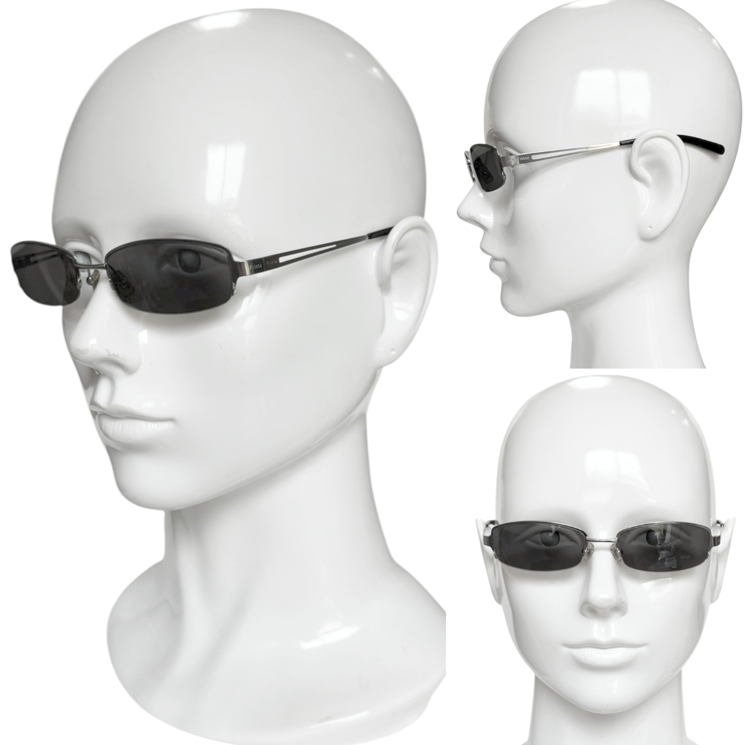 Miu Miu Logo Rimless Sunglasses in Black / Silver