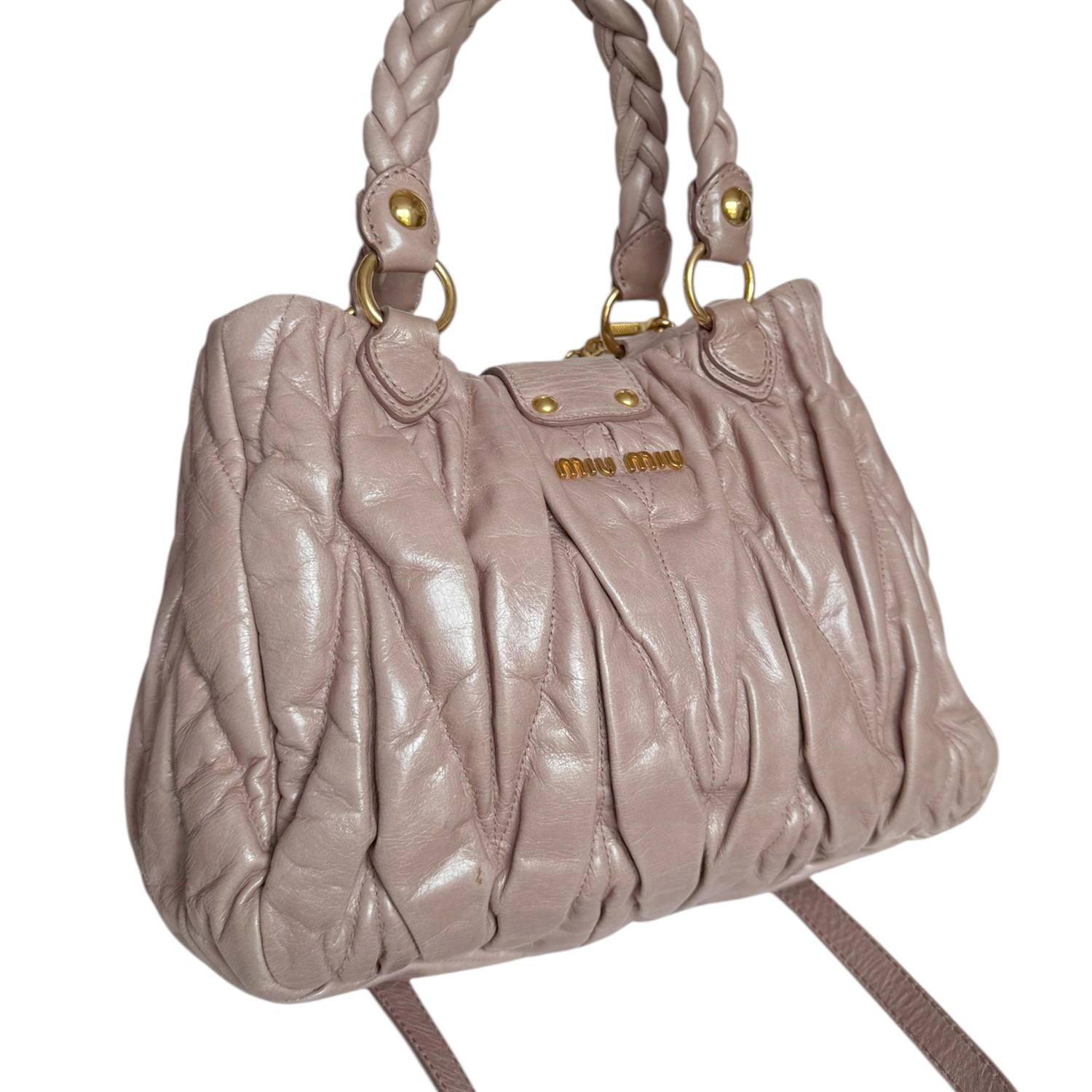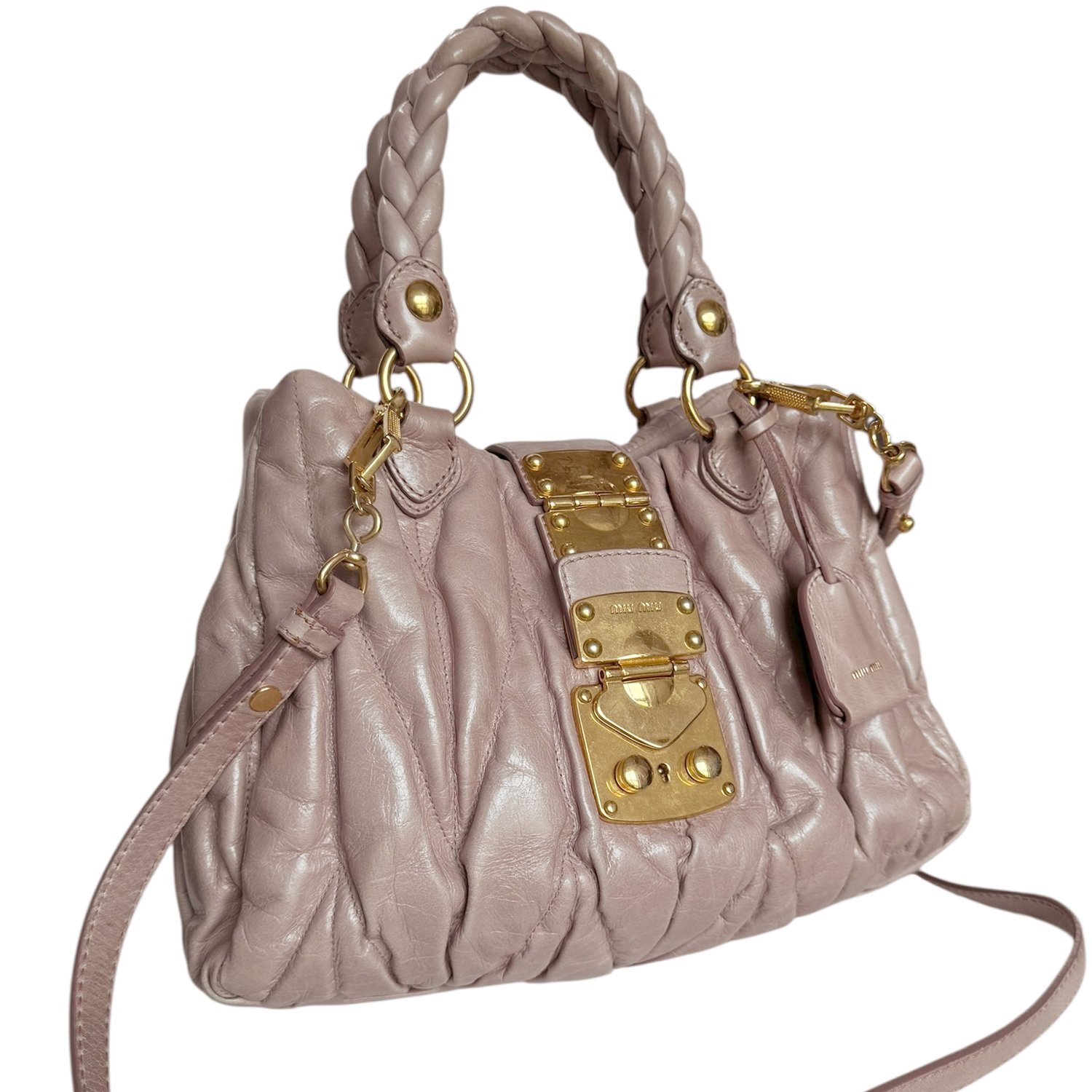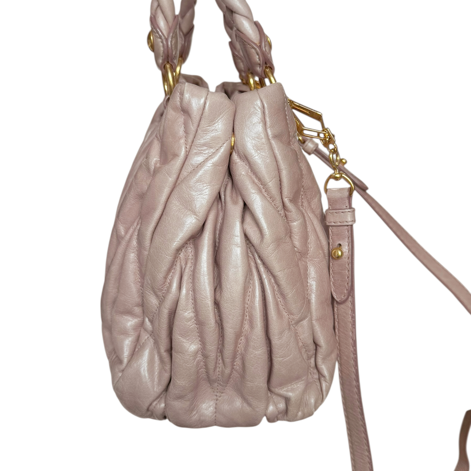 Miu Miu Matelasse 2 Way Leather Bag in Dusty Pink / Gold