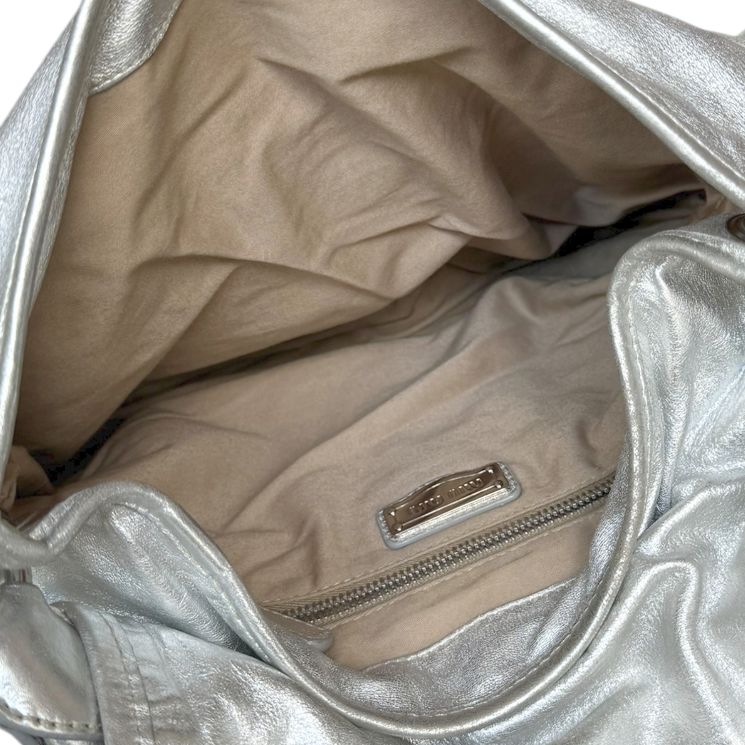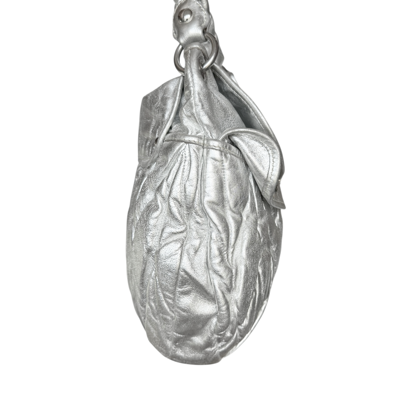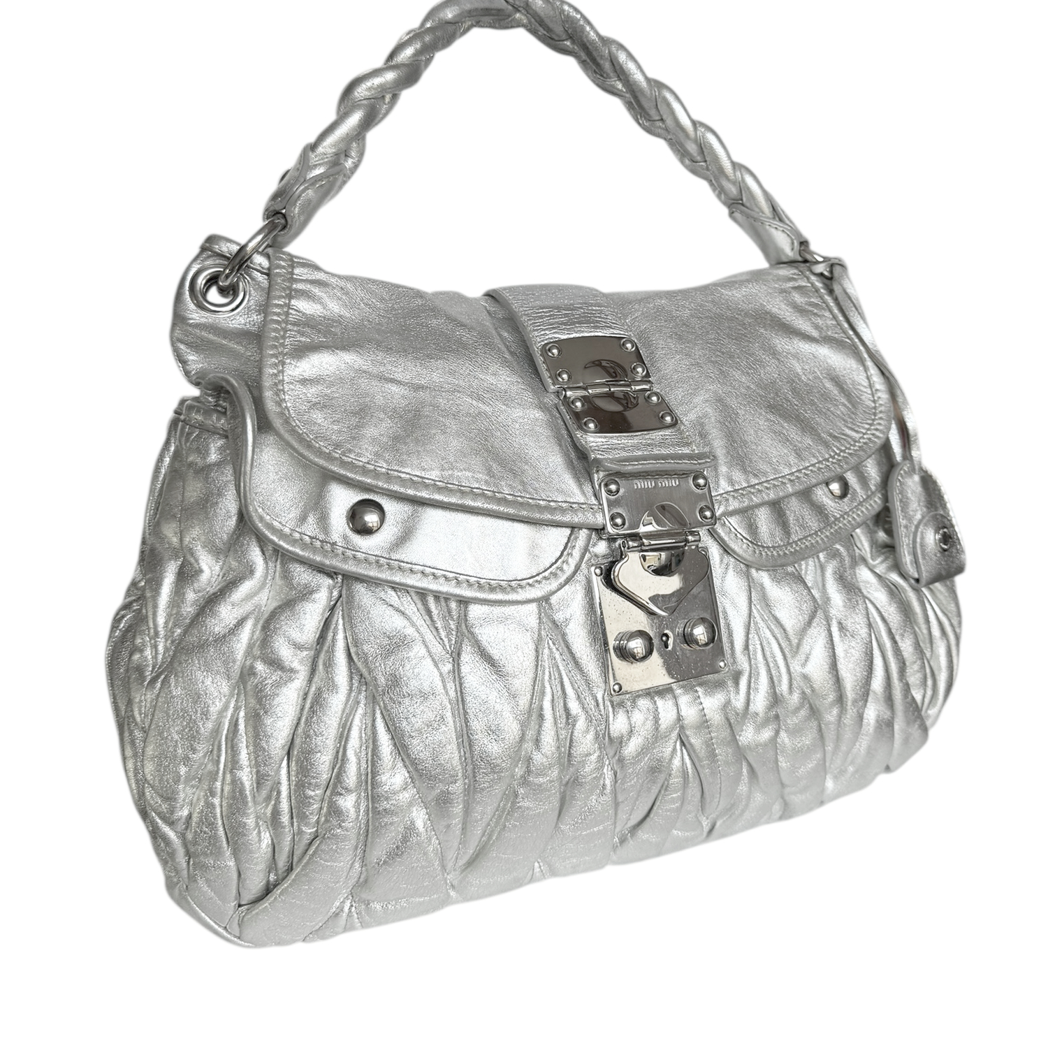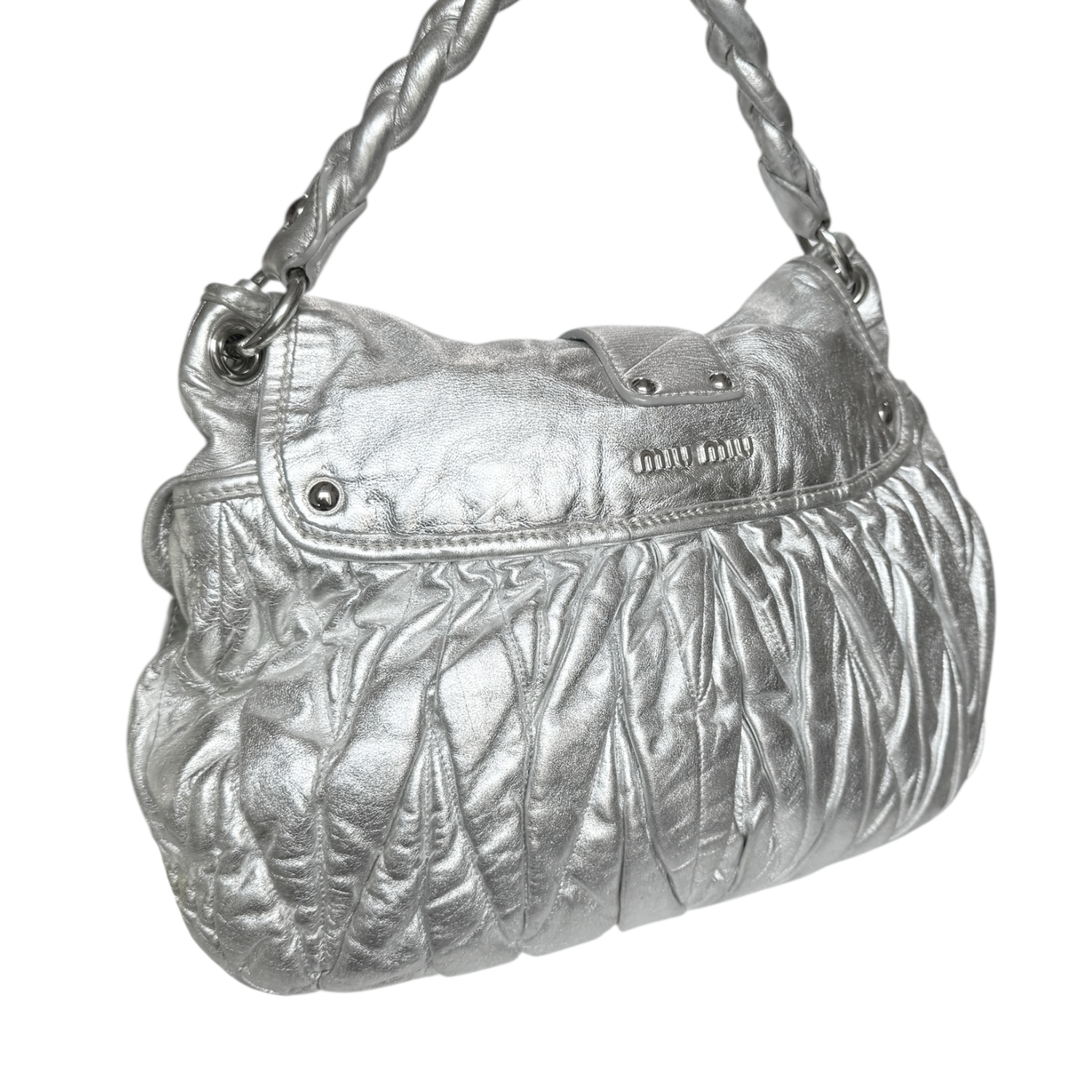 Miu Miu Matelasse Leather Large Hobo Shoulder Bag in Metallic Silver