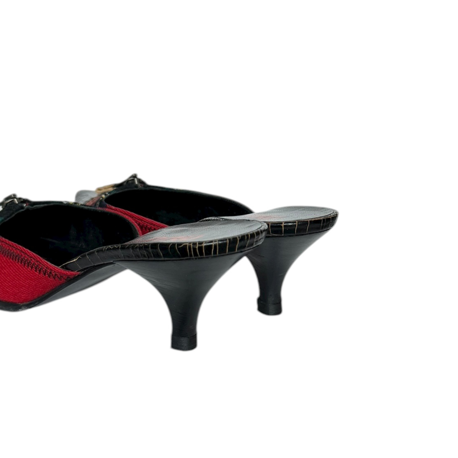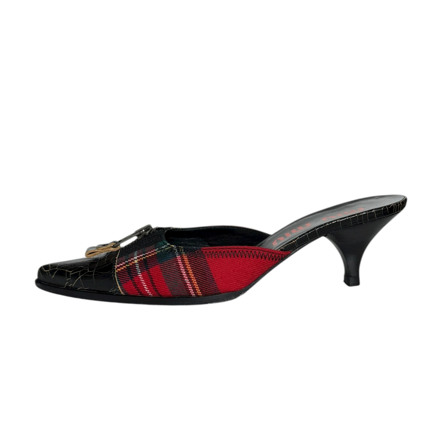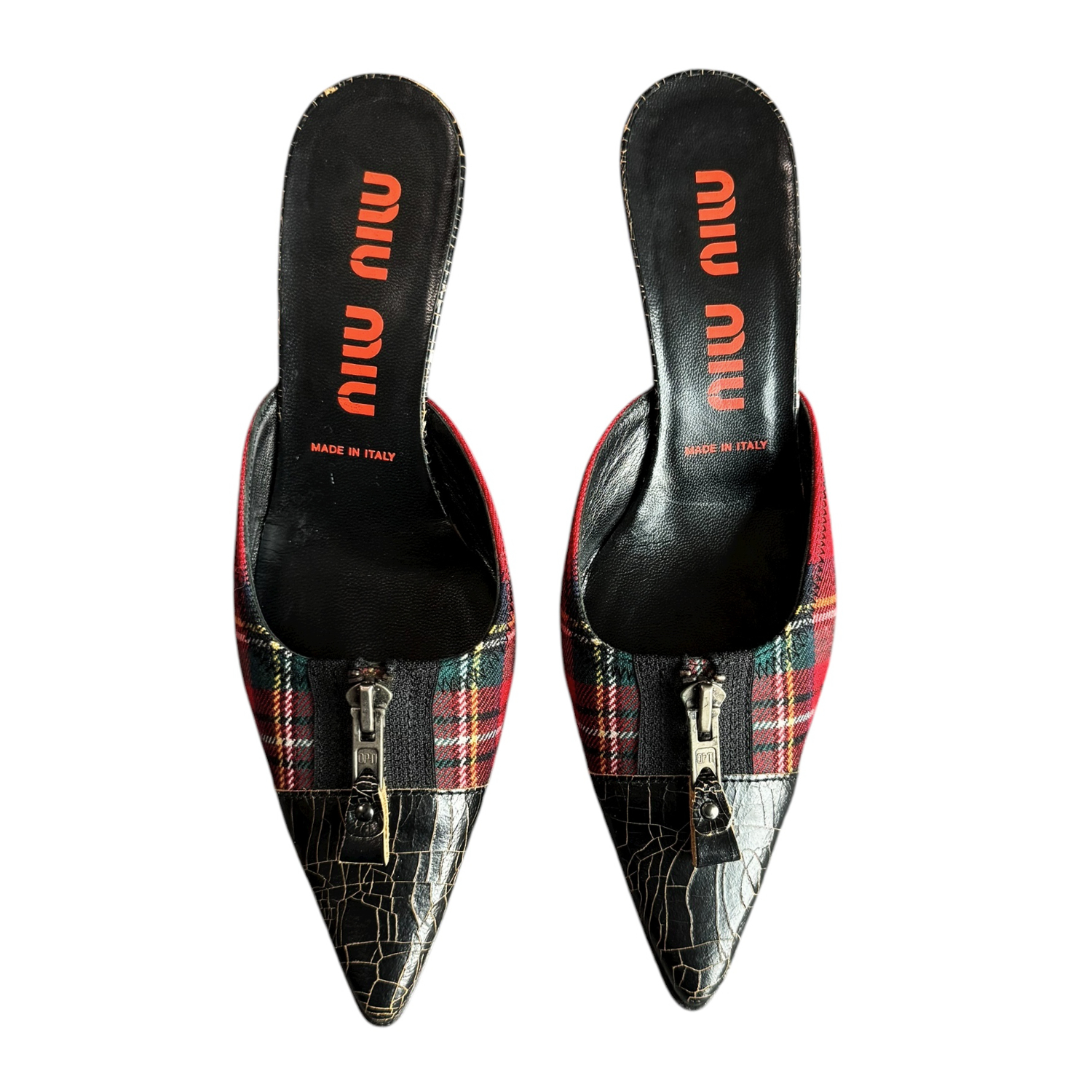 Miu Miu Zip Plaid Heels in Red / Black UK 3
