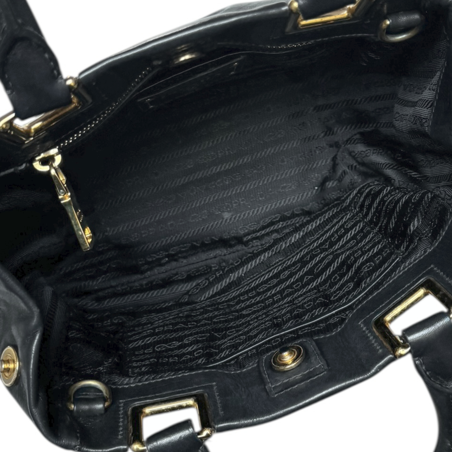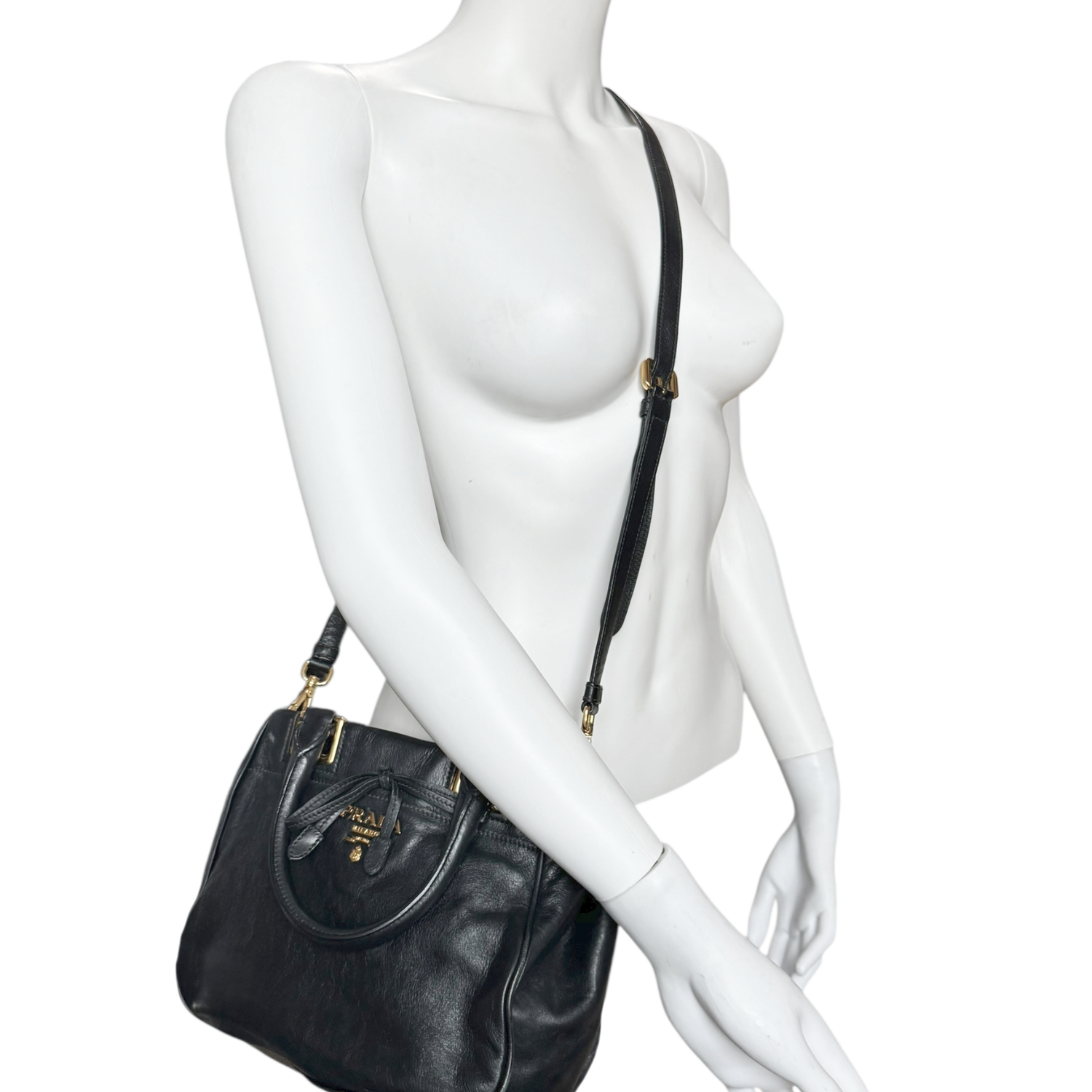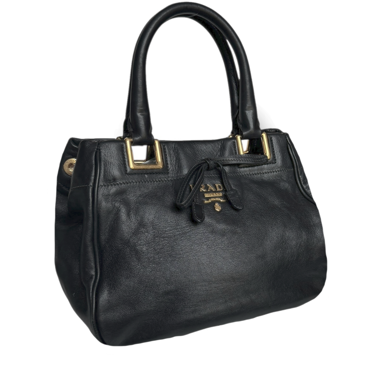 Prada Bow Logo Leather 2-Way Bag in Black / Gold
