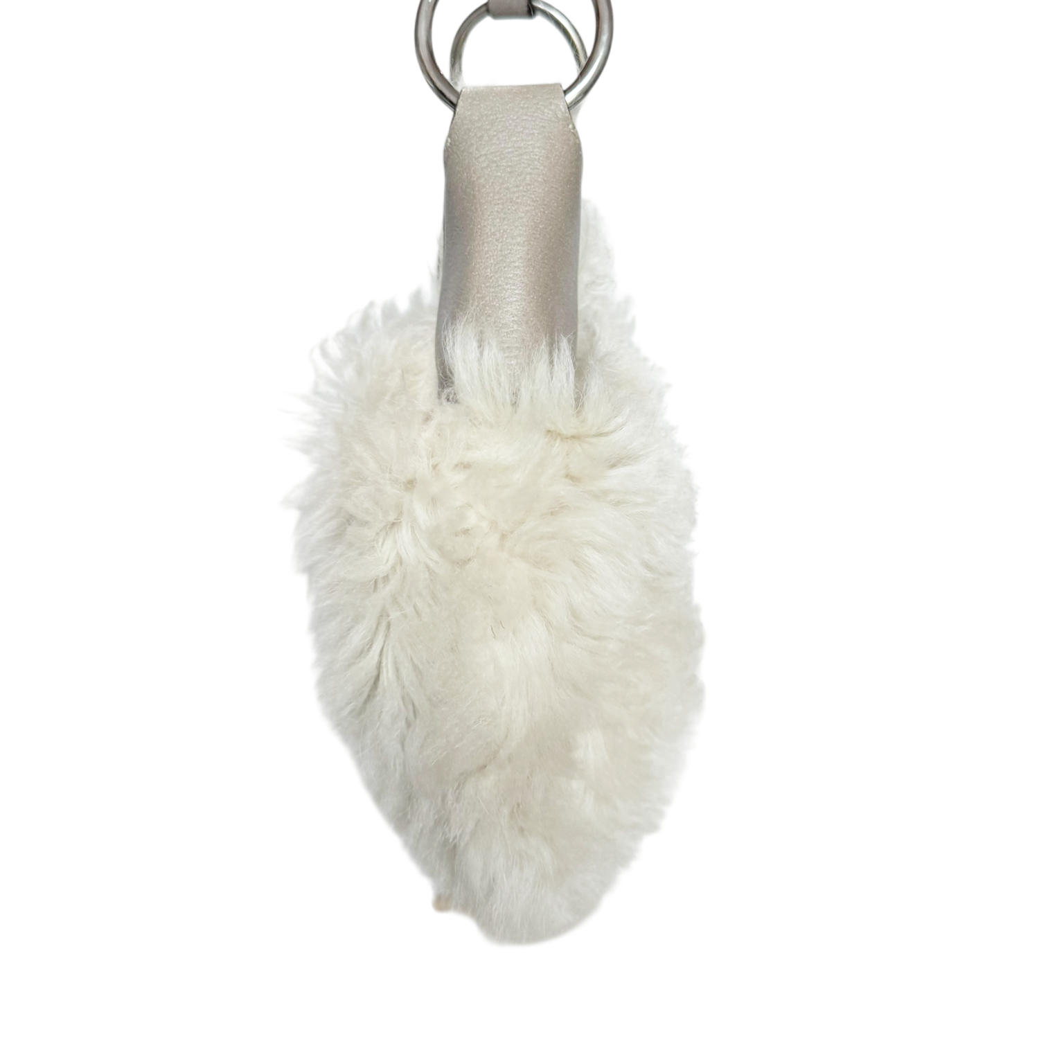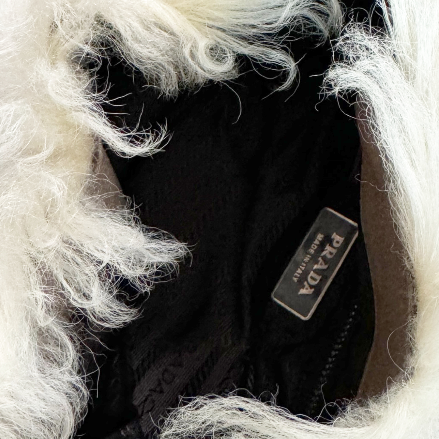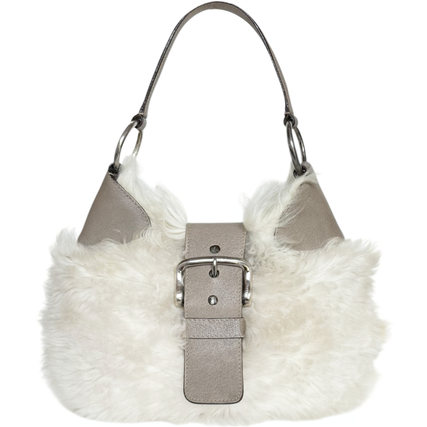 Prada Faux Fur Moon Shoulder Bag in Cream / Beige / Silver