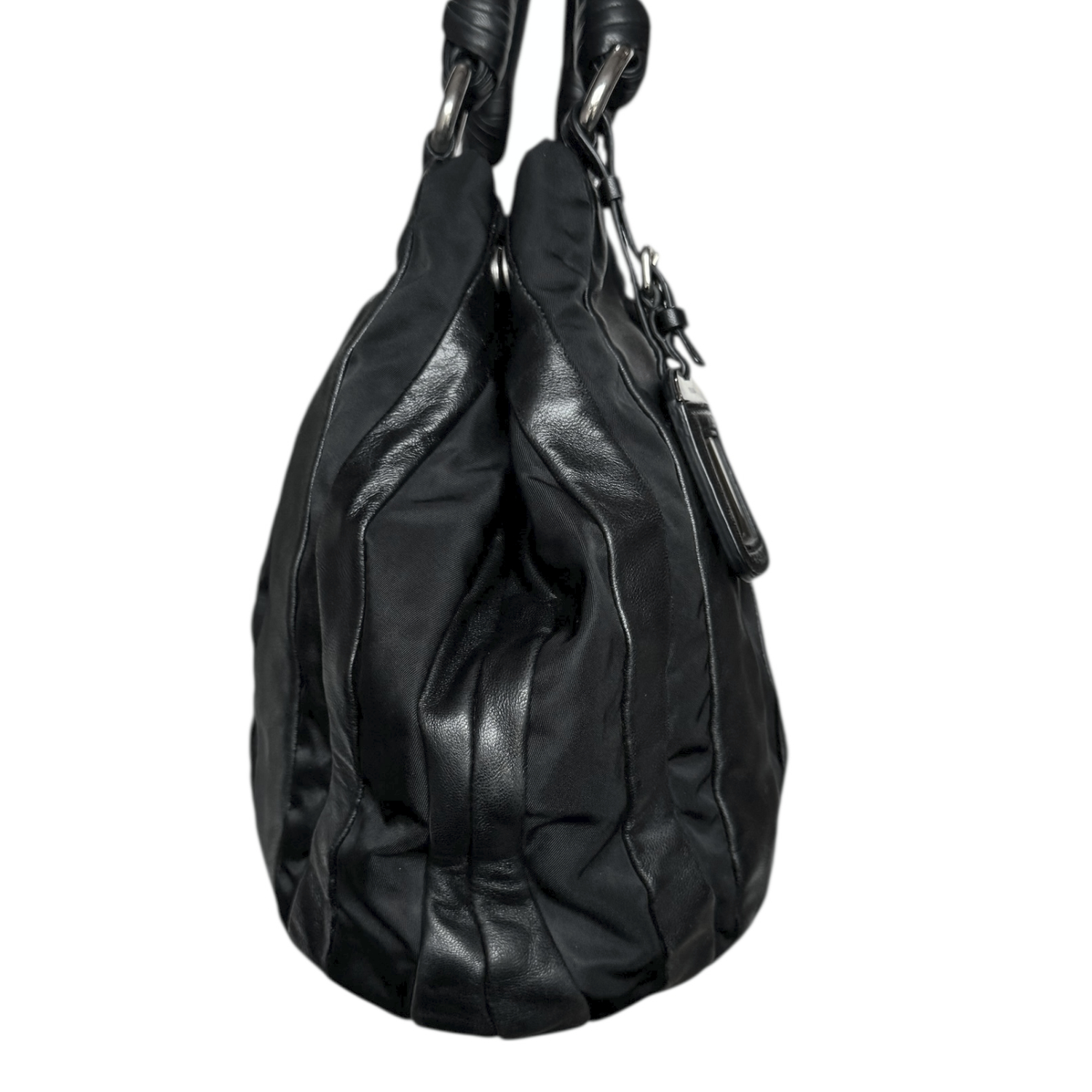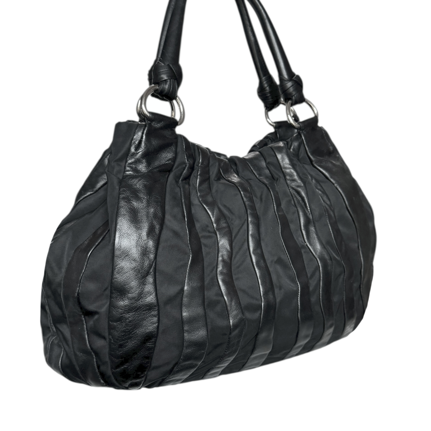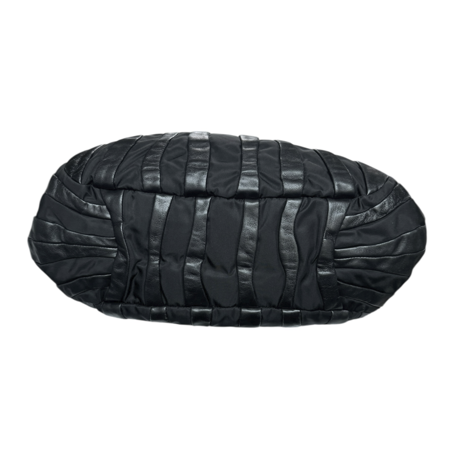 Prada Leather Nylon Striped Hobo Shoulder Bag in Black / Silver