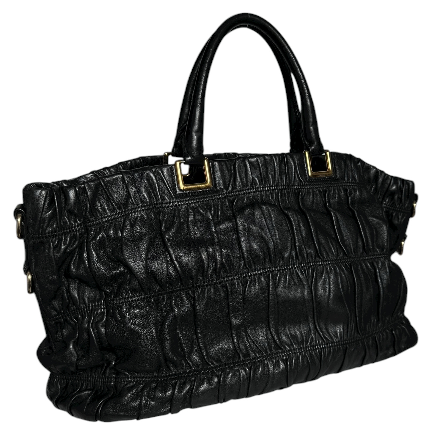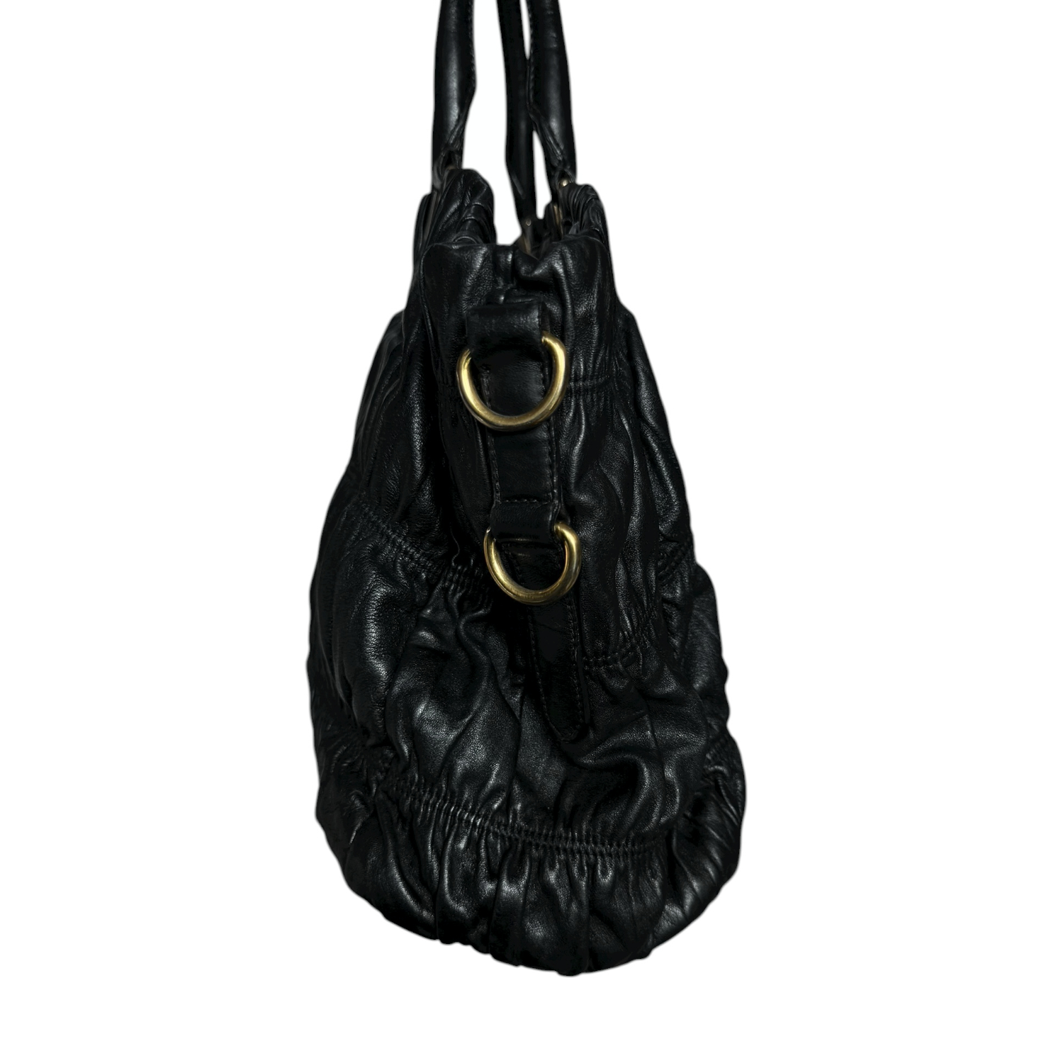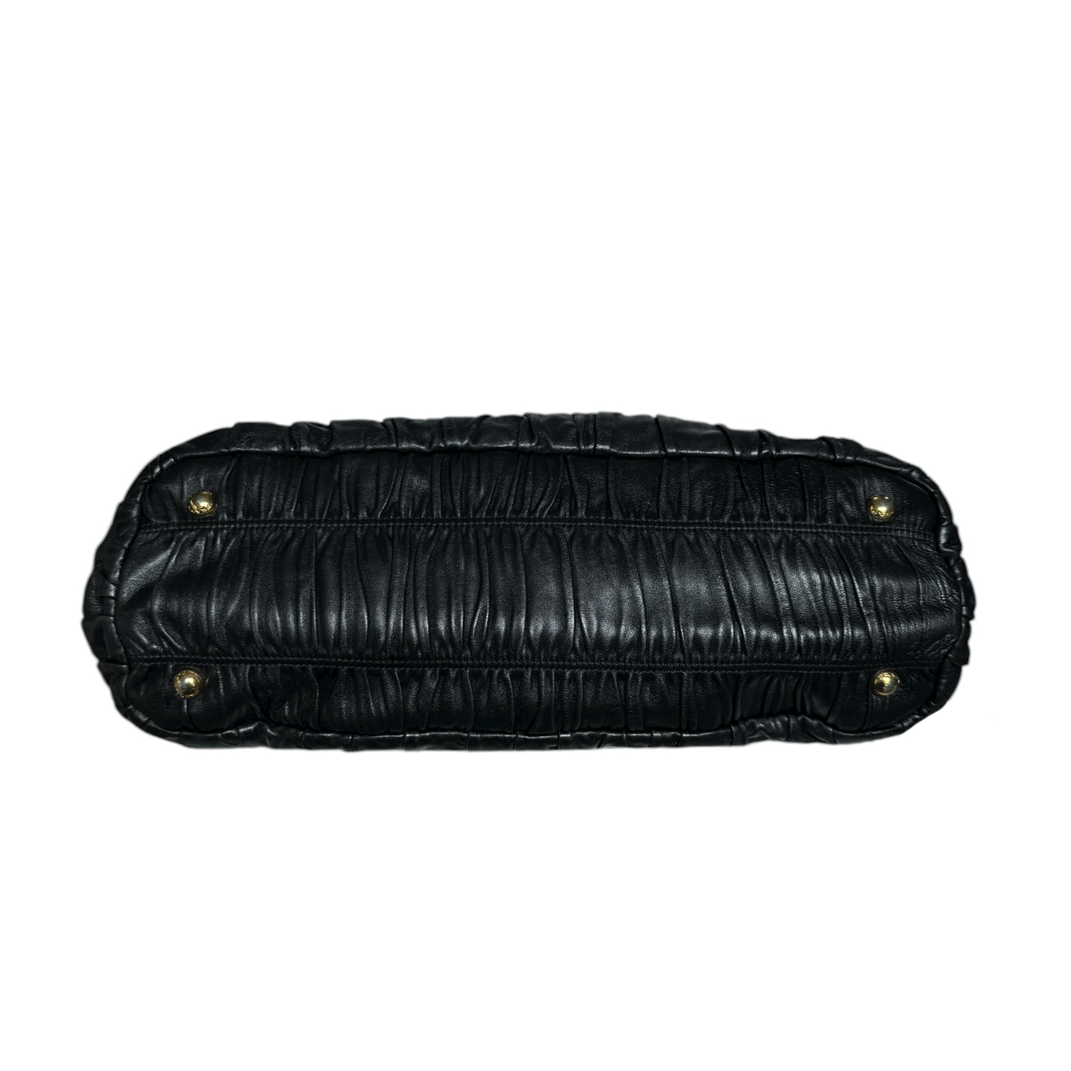 Prada Leather Ruched Slouchy Shoulder Bag in Black / Gold