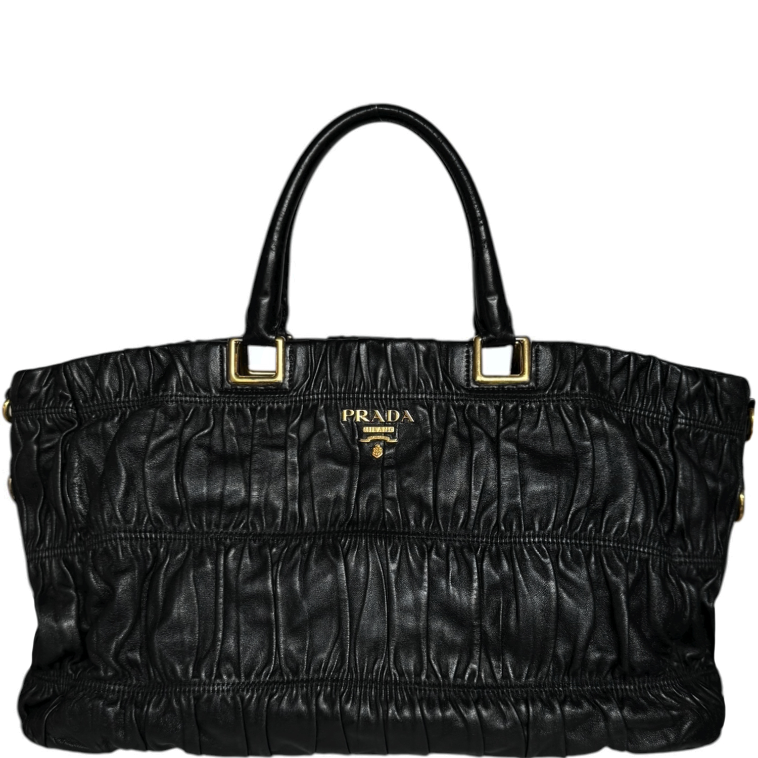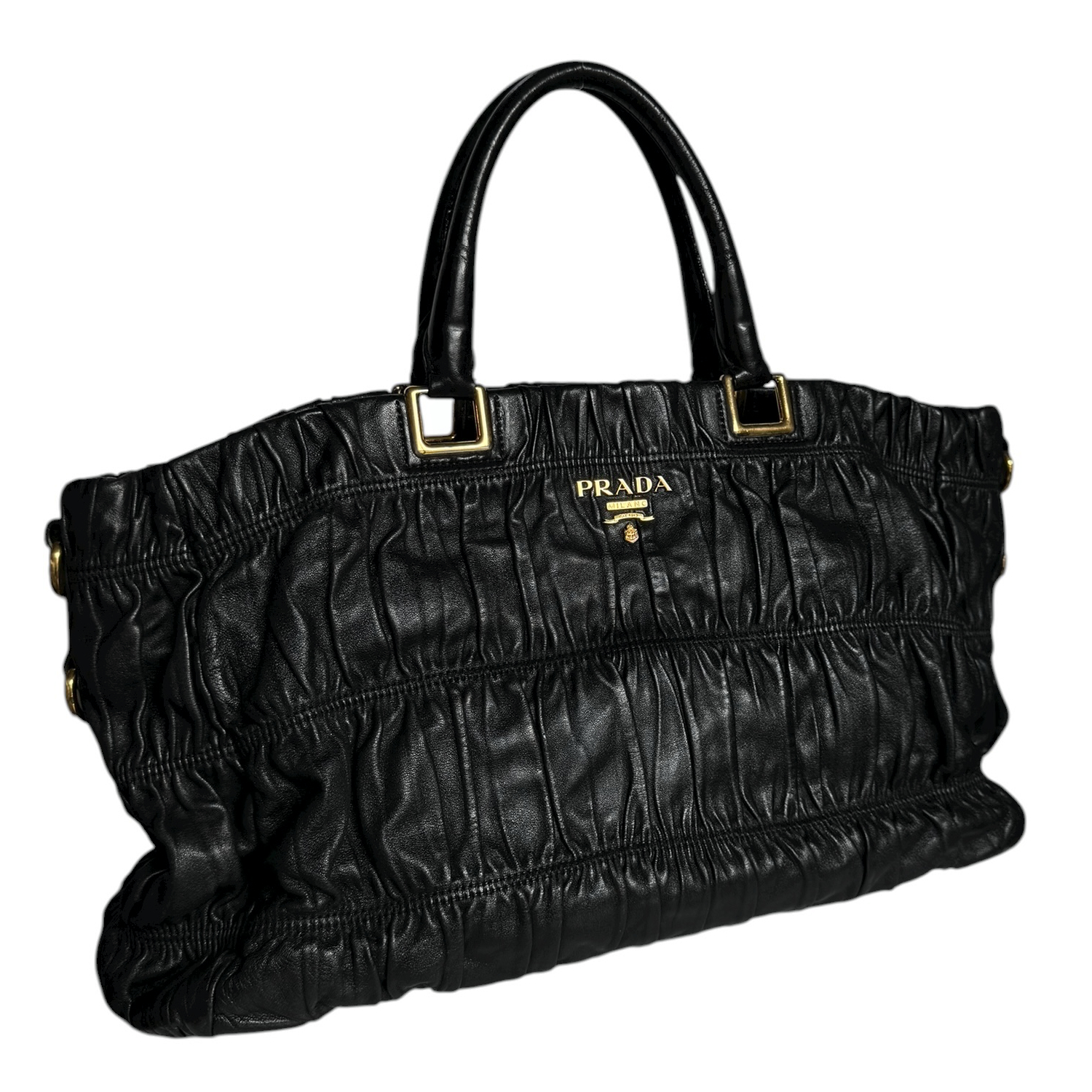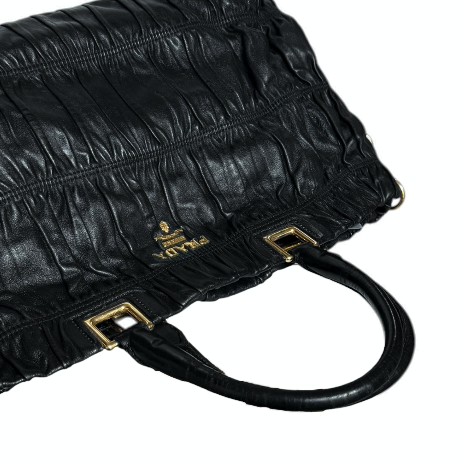 Prada Leather Ruched Slouchy Shoulder Bag in Black / Gold