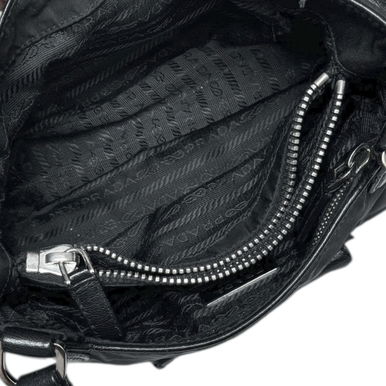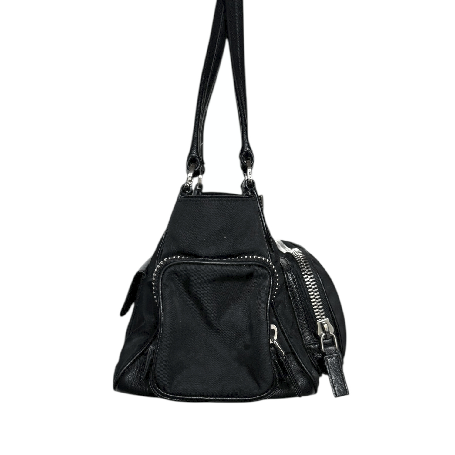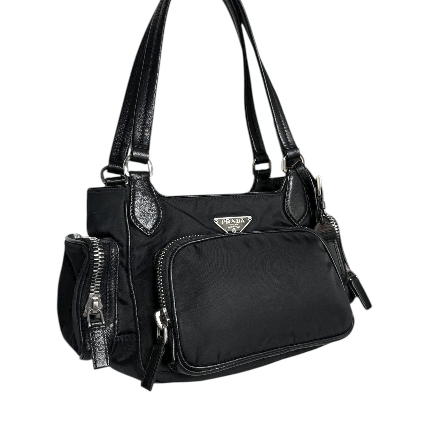 Prada Nylon Pocket Shoulder Bag in Black / Silver