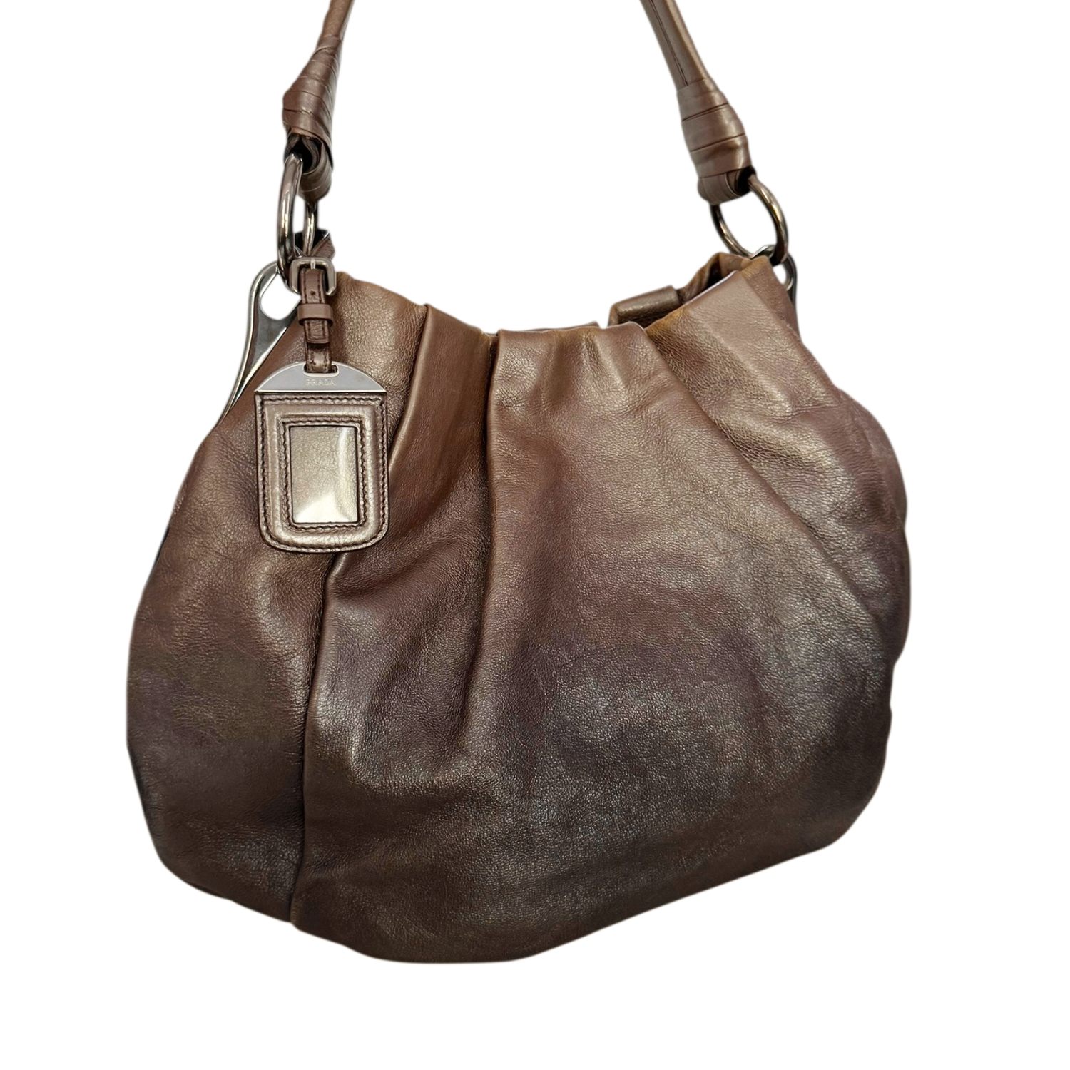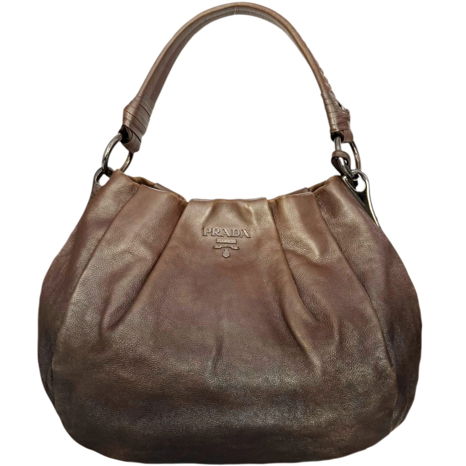 Prada Ombre Metallic Leather Hobo Shoulder Bag in Brown / Silver