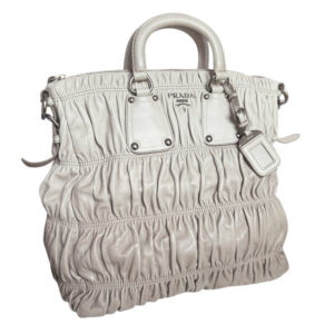 Prada Ombre Leather Ruched 2 – Way Tote Bag in White – Grey / Brown